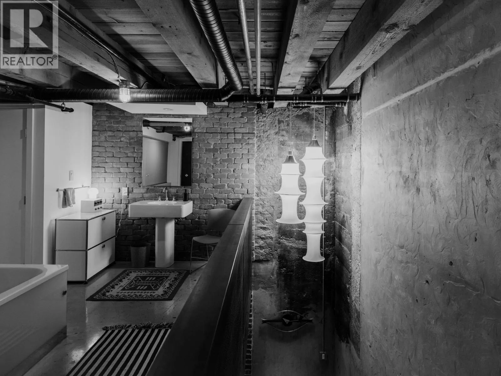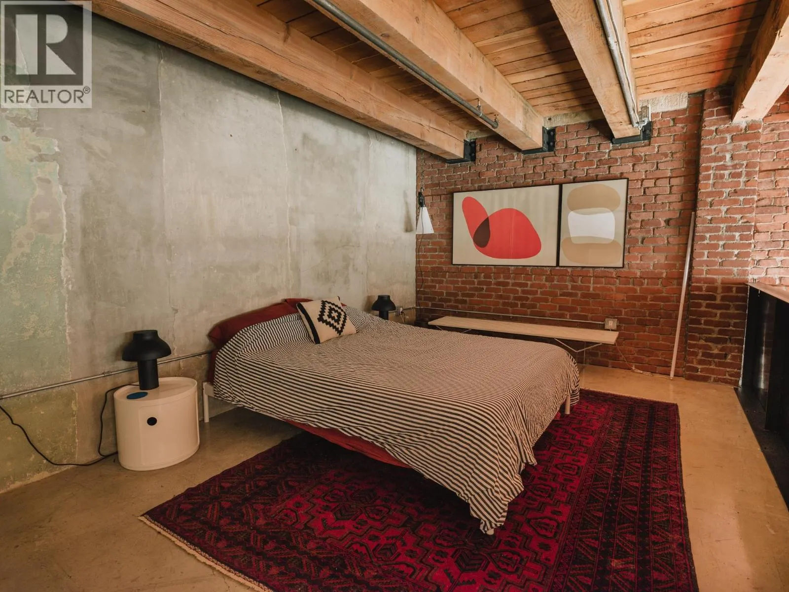 The Artist Loft - a century old warehouse where old-growth timber, masonry, and concrete richly compose an expansive 1753sf at ground level - among the largest in Koret Lofts. 2 storey south-facing storefront windows frame a dynamic live/work space, complete with original Alda Pereira kitchen/millwork and Duravit ensuite. Security and privacy are offered by custom Architectural metalwork throughout, with warm feature lighting by Herman Miller, Louis Poulsen and Danese Milano. A truly unique floorplan balances openness with privacy over two levels - at a generous scale that is rarely seen on the market. Functionality is enhanced by two entrances, ample storage, secure underground parking, short-term rental approval and commercial opportunity. The Koret is Gastown´s premier loft building. First Public Open House: Sunday, March 29, 2:00-4:00 p.m. (id:27476)