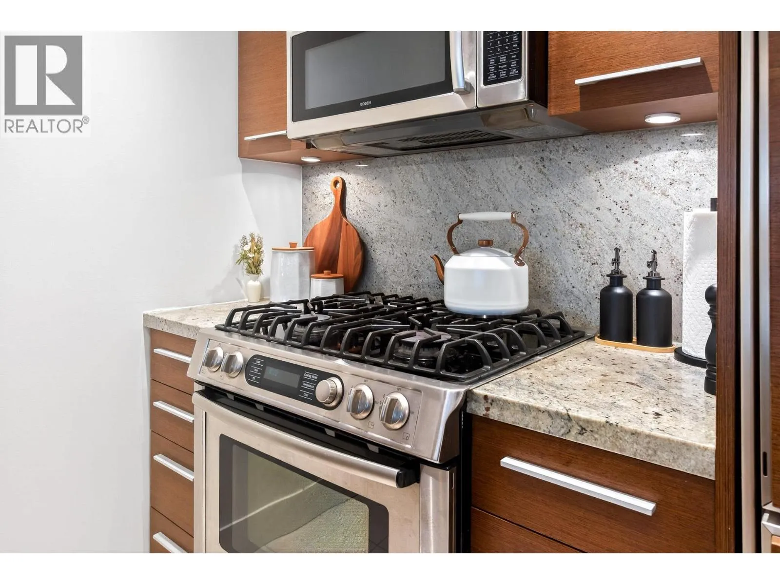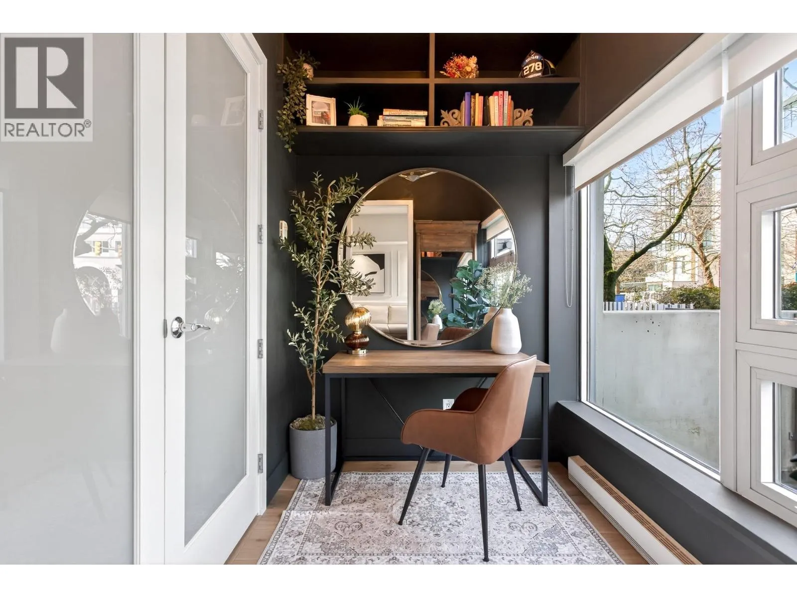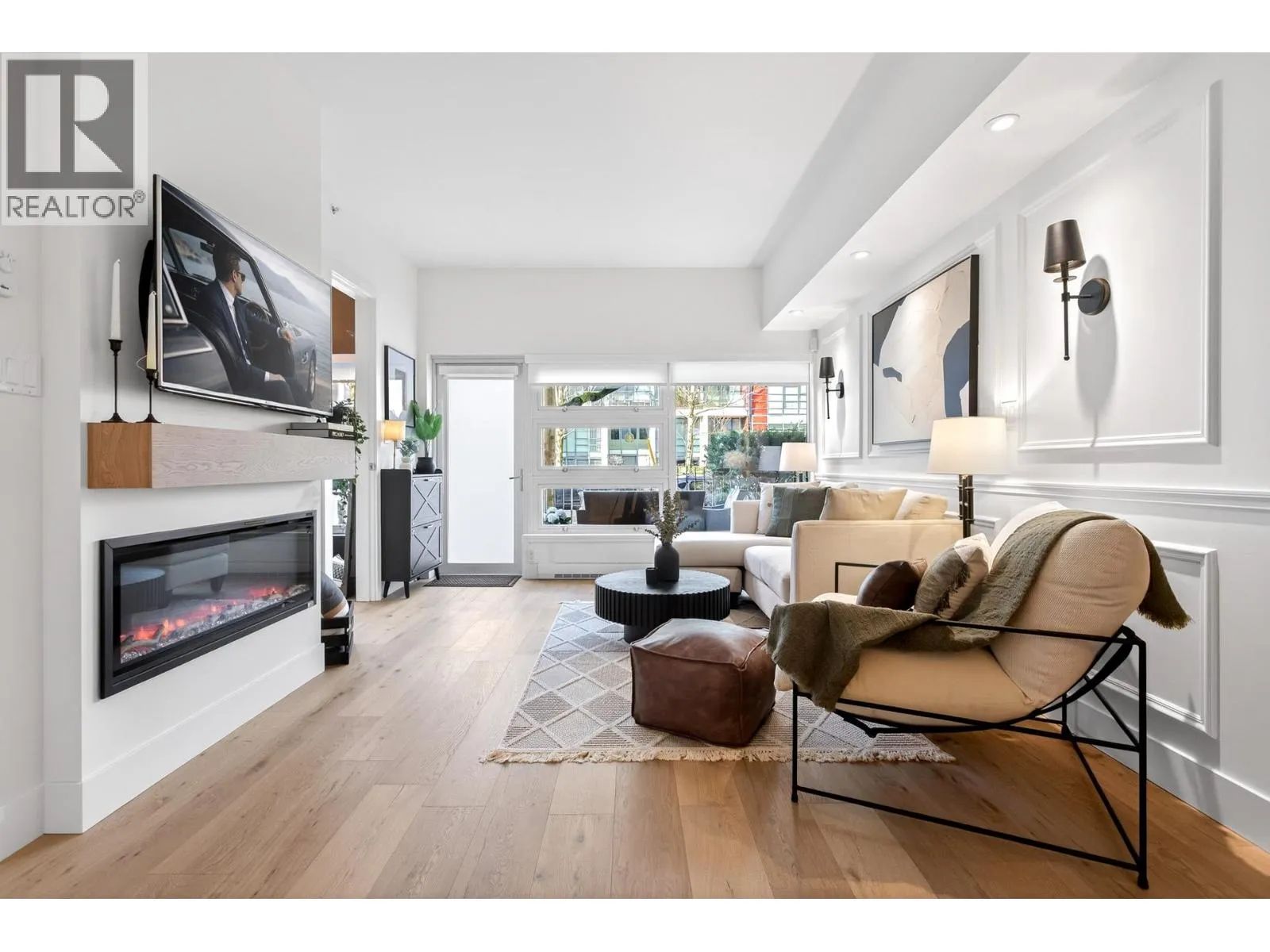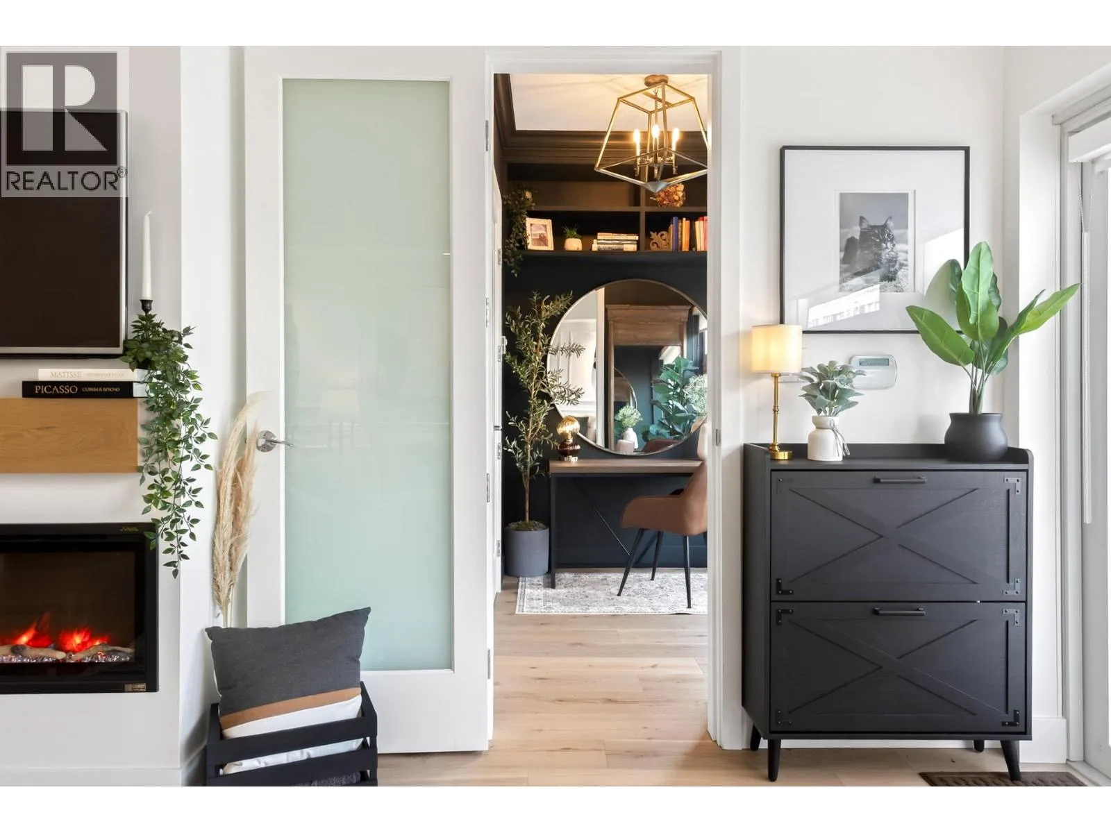 Kitsilano dream condo with private ground-floor access and an exclusive patio. Welcome to The Pulse on Maple Street. This exquisitely updated residence showcases refined décor, custom wainscoting, striking feature walls, and meticulously crafted millwork and flooring throughout. An elegant electric fireplace anchors the living area, complemented by a private office-ideal for today´s work-from-home lifestyle. Move-in ready with designer paint, curated lighting, and bespoke built-ins; simply bring your suitcase. Enjoy his-and-hers closets and a spa-inspired ensuite. Includes 1 parking, 1 storage, pet-friendly, and Amazon deliveries directly to your door. Only steps to cafés, boutiques, transit, and downtown-truly a rare offering. (id:27476)