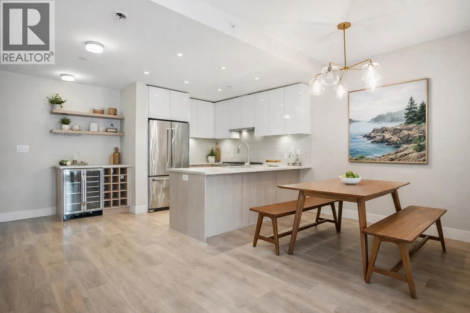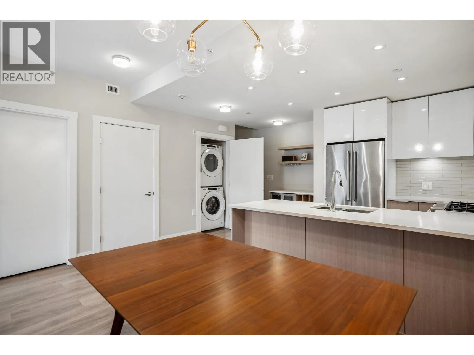 CORNER TOWNHOME at AVALON1. One of the most functional family homes... convenient ground floor entry (as well as second floor access to elevator), open concept main floor with large gourmet kitchen and bar, 3 large bedrooms upstairs including primary which accommodates a king sized bed, and 3 full bathrooms. The kitchen features full sized appliances including gas range, floor to ceiling cabinetry and stone counters, flowing on durable laminate flooring into the separated living and dining room. Appreciate upgraded window coverings, radiant in-floor heating, in-suite storage with organizers, 2 sunny patios and custom shelving. Includes 2 parking & 1 storage locker. All of this, steps to eateries, shopping, grocers, parks and riverfront. ***OPEN HOUSE: SAT, MARCH 28 & SUN, MARCH 29 2-4PM*** (id:27476)