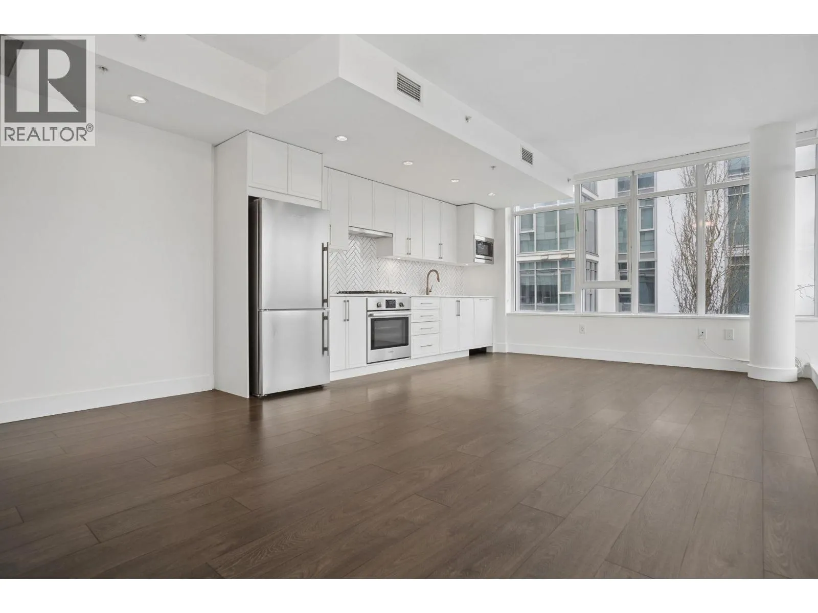 The Windsor. Rare 3 bedroom home in a concrete 6-storey building with only 14 units offering exceptional privacy. This bright corner residence is one of just four homes on the level and offers nearly 1,000 sqft of efficient interior living space featuring a spacious open-concept kitchen, dining, and living area ideal for entertaining. Enjoy mountain views and a generous 231 sqft outdoor balcony-a rare extension of living space perfect for everyday living or entertaining. The modern kitchen offers Bosch appliances, sleek cabinetry, and generous prep space. Year-round comfort with an efficient heating and cooling system. Residents enjoy amenities including a landscaped rooftop courtyard with BBQ area, fitness centre, and residents´ lounge. Steps to shops, cafés, parks, and SkyTrain. Includes 2 parking stalls and still under new home warranty. (id:27476)