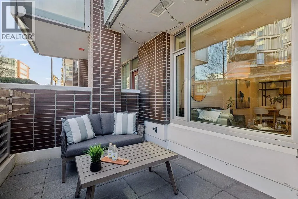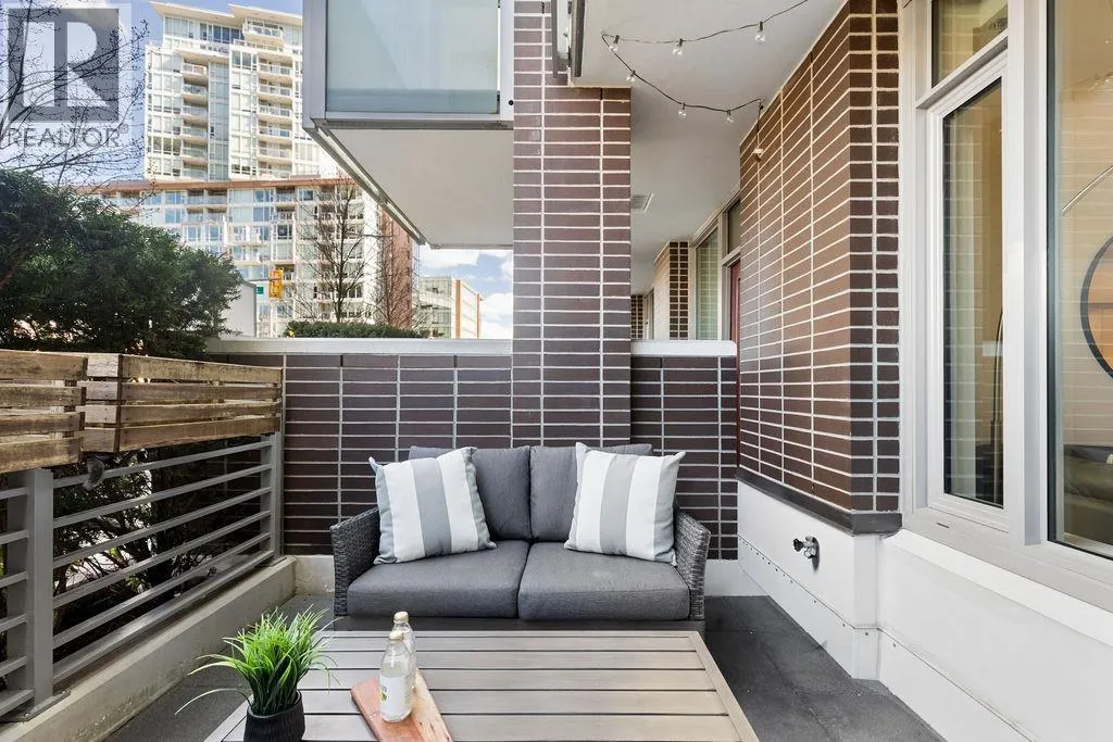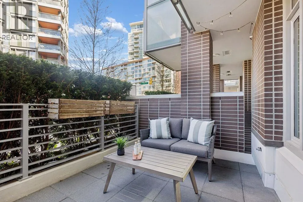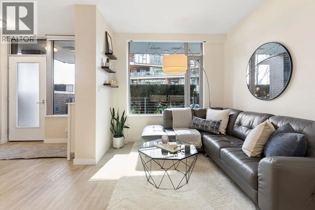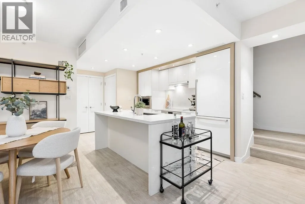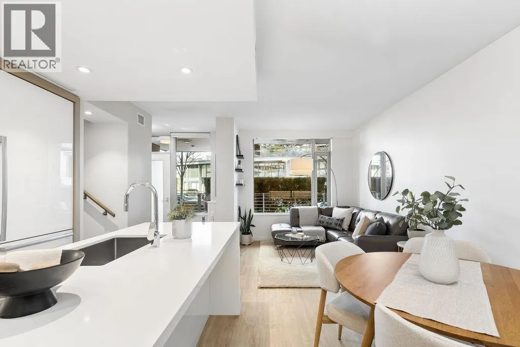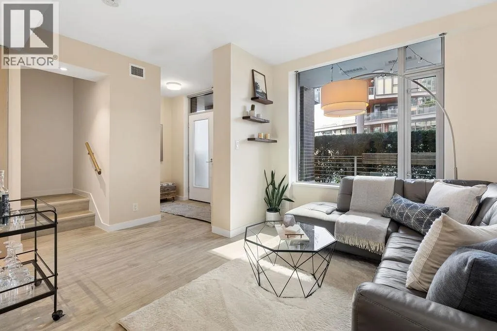 Welcome to this exceptional 2BED + DEN + FLEX TOWNHOME at VODA, a quality concrete building by CONCERT. With a PRIVATE ENTRANCE, this home spans two levels, providing separation between living and sleeping areas. Open-concept main floor features chef-inspired kitchen, OVERSIZE ISLAND with counter seating, bright living and dining areas which flow out to your PRIVATE PATIO. Unwind upstairs in your primary suite with walk-through closet & SPA-LIKE ENSUITE. The 2nd bedroom perfect for home office or guests. Soak in the sunset from your PRIVATE COVERED BALCONY. Enjoy year round comfort with AIR-CONDITIONING & premium amenities incl full-time CONCIERGE, FULLY EQUIPPED GYM, lounge, & rooftop deck with gardens. Just steps to the SEAWALL, SKYTRAIN, breweries, cafés, and restaurants. Includes 1 parking. (id:27476)
