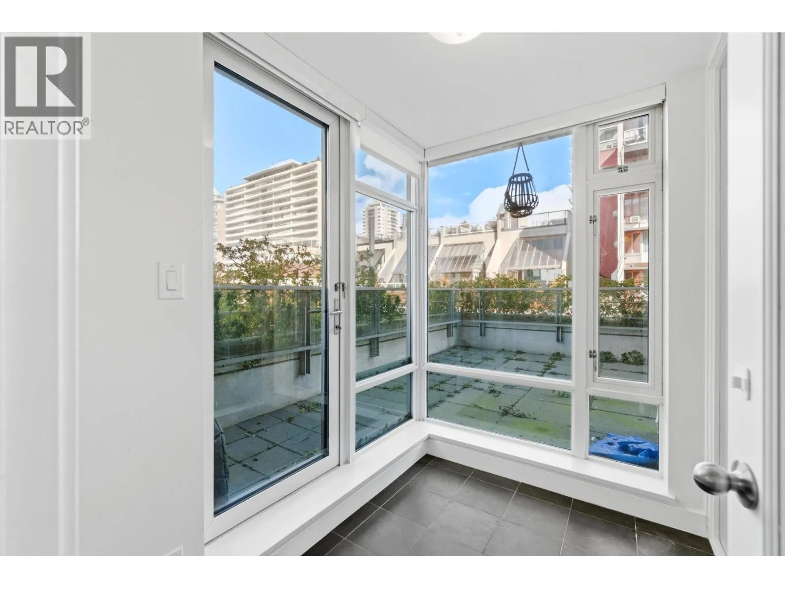 Experience exceptional West End living just steps from English Bay in the exclusive boutique building "O2." This bright and spacious corner residence offers 2 bedrooms, 2 bathrooms, plus a den and solarium, with over 1,000 square ft of thoughtfully designed space. Enjoy beautiful ocean and sunset views from the expansive wrap-around terrace and the private balcony off the primary bedroom. The home features a stylish open layout, high-end finishes, hardwood floors, a gourmet kitchen with premium appliances, and spa-inspired bathrooms. Complete with two parking stalls and a large storage locker. Residents also enjoy a stunning rooftop garden with panoramic ocean and mountain views, all just minutes from Stanley Park, the seawall, and the vibrant West End lifestyle. (id:27476)