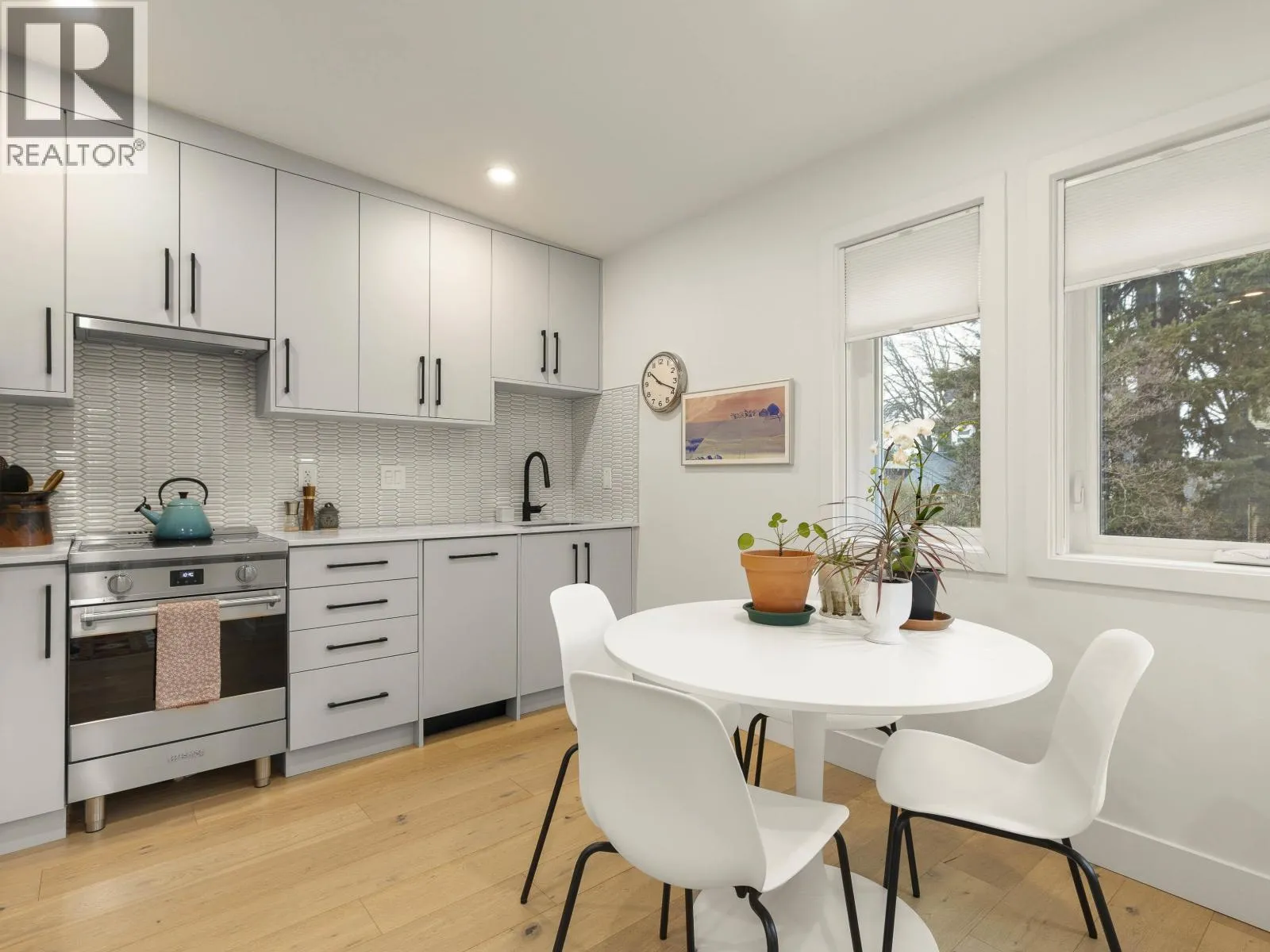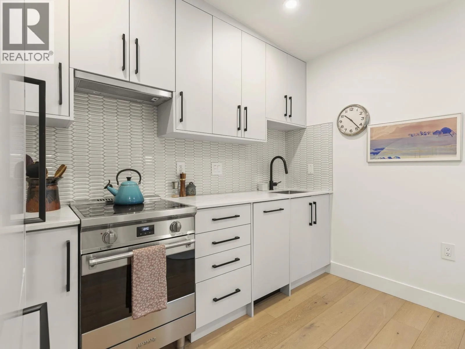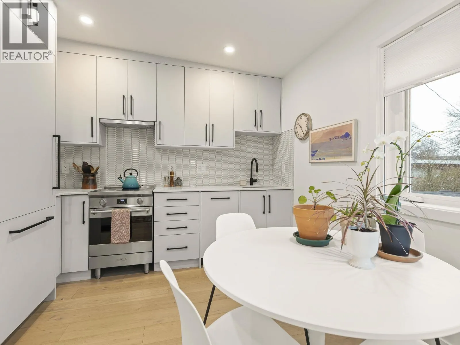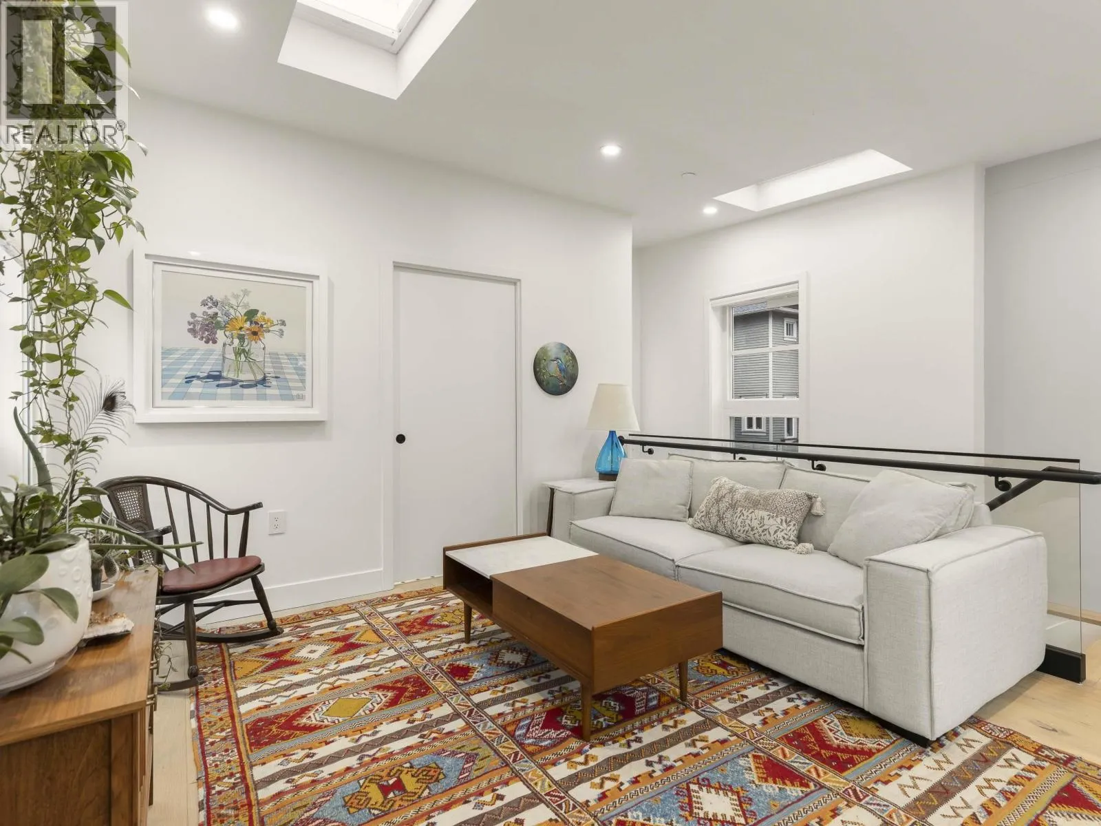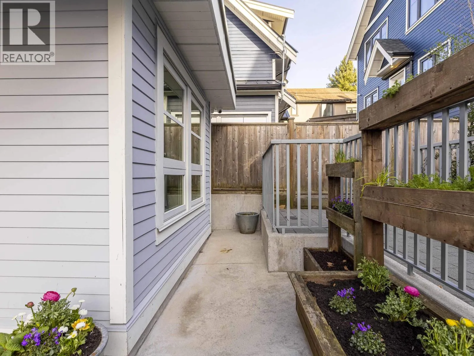 Surrounded by charming character homes in the heart of Mount Pleasant, this thoughtfully designed two-level coach home blends modern comfort with timeless appeal. The upper level feels bright and airy, with vaulted ceilings and skylights enhanced by luxurious Hunter Douglas motorized blinds for ultimate ease and comfort. The beautiful kitchen offers sleek modern cabinetry, a hexagon tile backsplash, upgraded appliances, and stone countertops-perfect for everyday living and entertaining. Enjoy a delightful garden patch, a south-facing patio, an additional balcony, and a private single-car garage. Enjoy everything Mount Pleasant has to offer, with Robson Park and a fantastic selection of restaurants, cafés, and coffee shops just steps from your doorstep. Open house Mar. 22nd 2:30pm-4pm (id:27476)