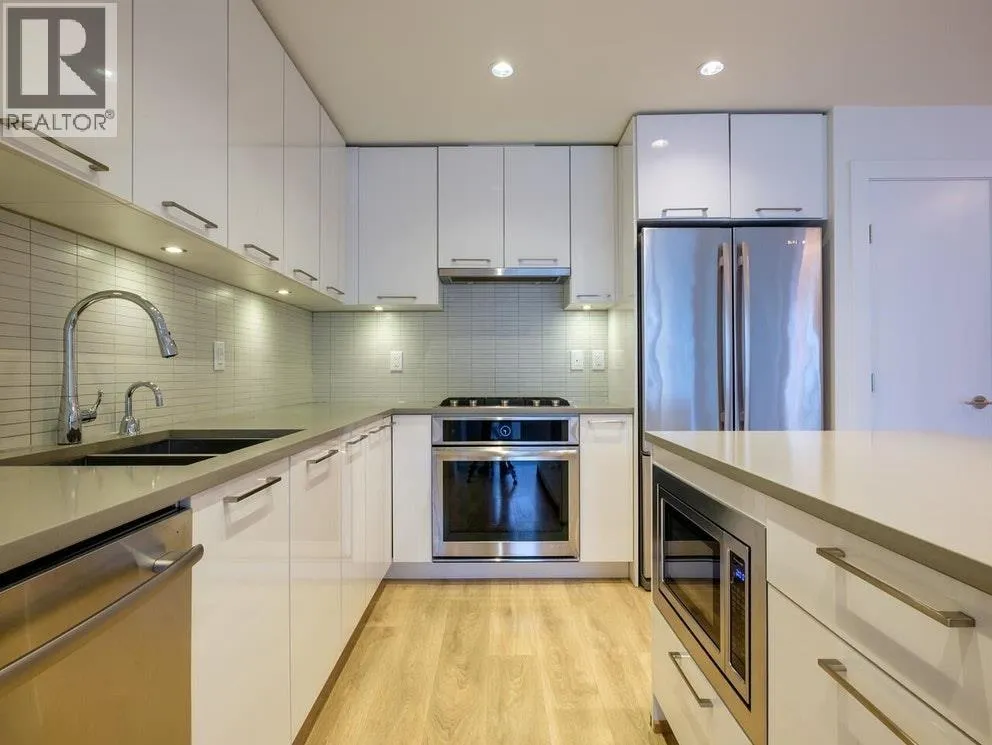 Welcome to this bright sub-penthouse in the heart of the River District! This home features 2 bedrooms, 2 bathrooms, and a flex space, with abundant natural light through floor to ceiling windows. This open concept layout features quartz countertops with a large island, stainless steel appliances including a gas range, radiant floor heating, duel walk in closets that lead to a private en-suite, and an impressive 200+ sq/ft balcony, ideal for entertaining! Residents can also enjoy the 14,000 square ft of resort style amenities at CLUB CENTRAL, featuring a fully equipped fitness centre, indoor pool, sauna and steam room, hot tub, squash courts, multi-sport room, children´s play centre/party rooms, residents´ lounges, and a rooftop garden with shared outdoor spaces. (id:27476)