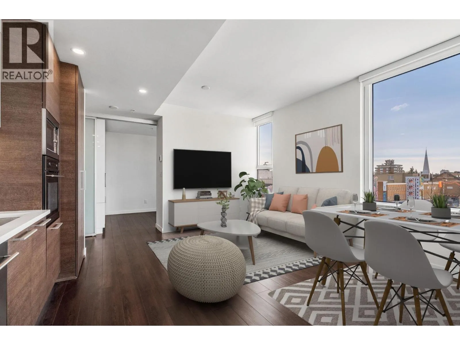 WELCOME TO THE INDEPENDENT - this immaculately maintained 2 bedroom + den + flex residence at The Independent on Main. This air-conditioned 808 square ft residence offers stunning mountain + city views w/partial water outlooks. The thoughtfully designed kitchen features: Italian cabinetry, Quartz countertops, and SS appliances, including a Porter & Charles induction cooktop. Enjoy indoor-outdoor living from your private 80 square ft patio overlooking the vibrant Main Street streetscape. Excellent building amenities include a fully equipped gym, party room with bbq area, workshop, guest suite ($120/night) & more. Extremely convenient/walkable location shopping, transit, dining, and restaurants & upcoming Main/Broadway SKYTRAIN STN. | Complete with 1 Parking | OPEN: Saturday April 4, 2-4pm (id:27476)