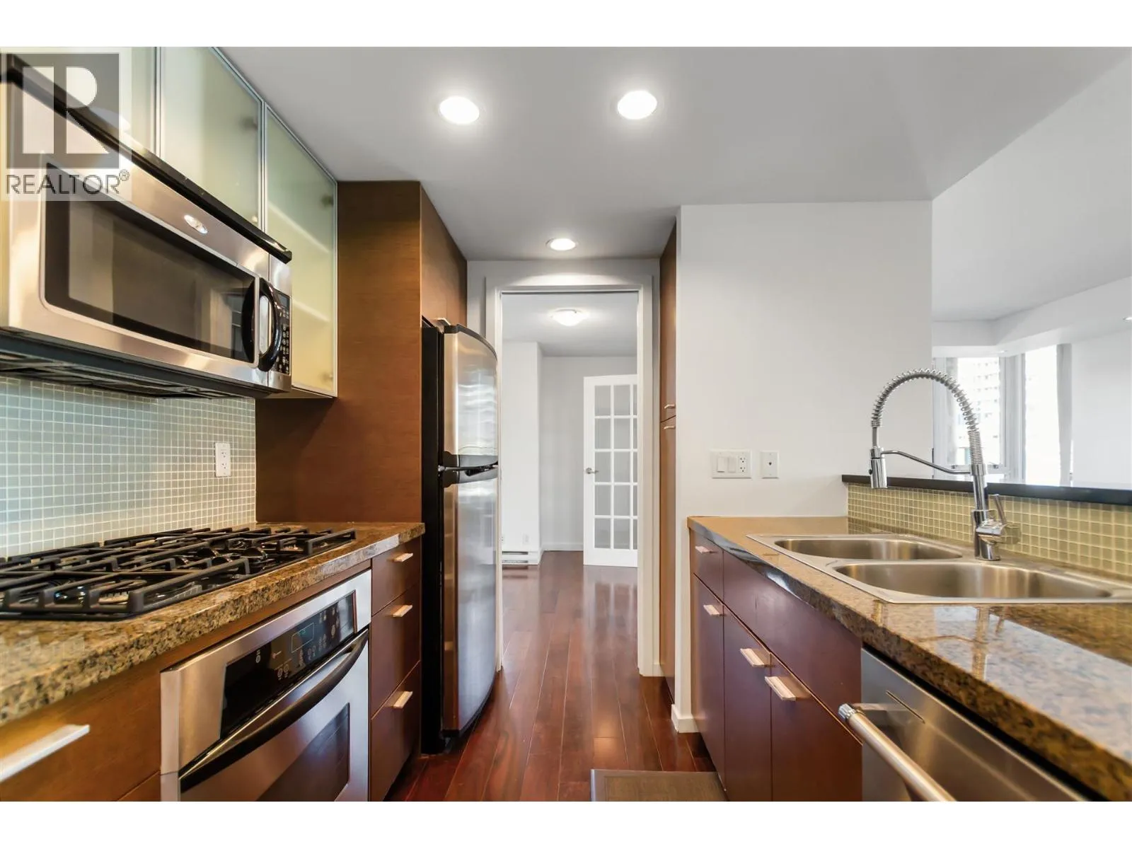 CORNER suite in the Heart of Yaletown! 2 bedroom condo + large den and storage at Coopers Pointe, Vancouver's waterfront neighborhood. Featuring functional European designer open floor plan including stainless steel appliances, granite counter tops, gas stove, beautiful hardwood floors throughout, bright floor to ceiling windows, & 1 parking. 24 hour concierge, exclusive world-class amenities including theater, boating, yoga, indoor pool, sauna, steam room, hot tub, bowling alley, 2 gyms, 2 party rooms. Steps to BC Place Stadium, the seawall, and Vancouver's new entertainment district, this is the ultimate location to live. (id:27476)