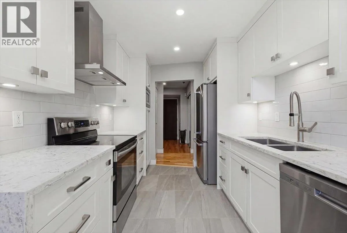 Tired of cookie-cutter condos? This one stands out from the crowd. The sunken living and dining area features a cozy brick hearth, an electric fireplace, and opens onto a spacious patio-perfect for relaxing or entertaining. Just a few steps up, you´ll find a beautiful custom kitchen with quartz countertops, sleek cabinetry, and a bright eating nook wrapped in windows. The generous primary bedroom includes a custom closet and its own private patio, plus access to a semi-ensuite bath with heated floors. The second bedroom is smartly designed with a built-in Murphy bed for added flexibility. This home is move-in ready throughout include a smoothed ceiling, LED pot lights, custom blinds, and in-suite laundry. Comes complete with a storage locker, secure parking, and an incredible rooftop deck. All in a prime location just steps to SkyTrain, the seawall, dog park, Granville Island, and more! **OPEN HOUSE Saturday, March 28, 2 pm - 4pm** (id:27476)
