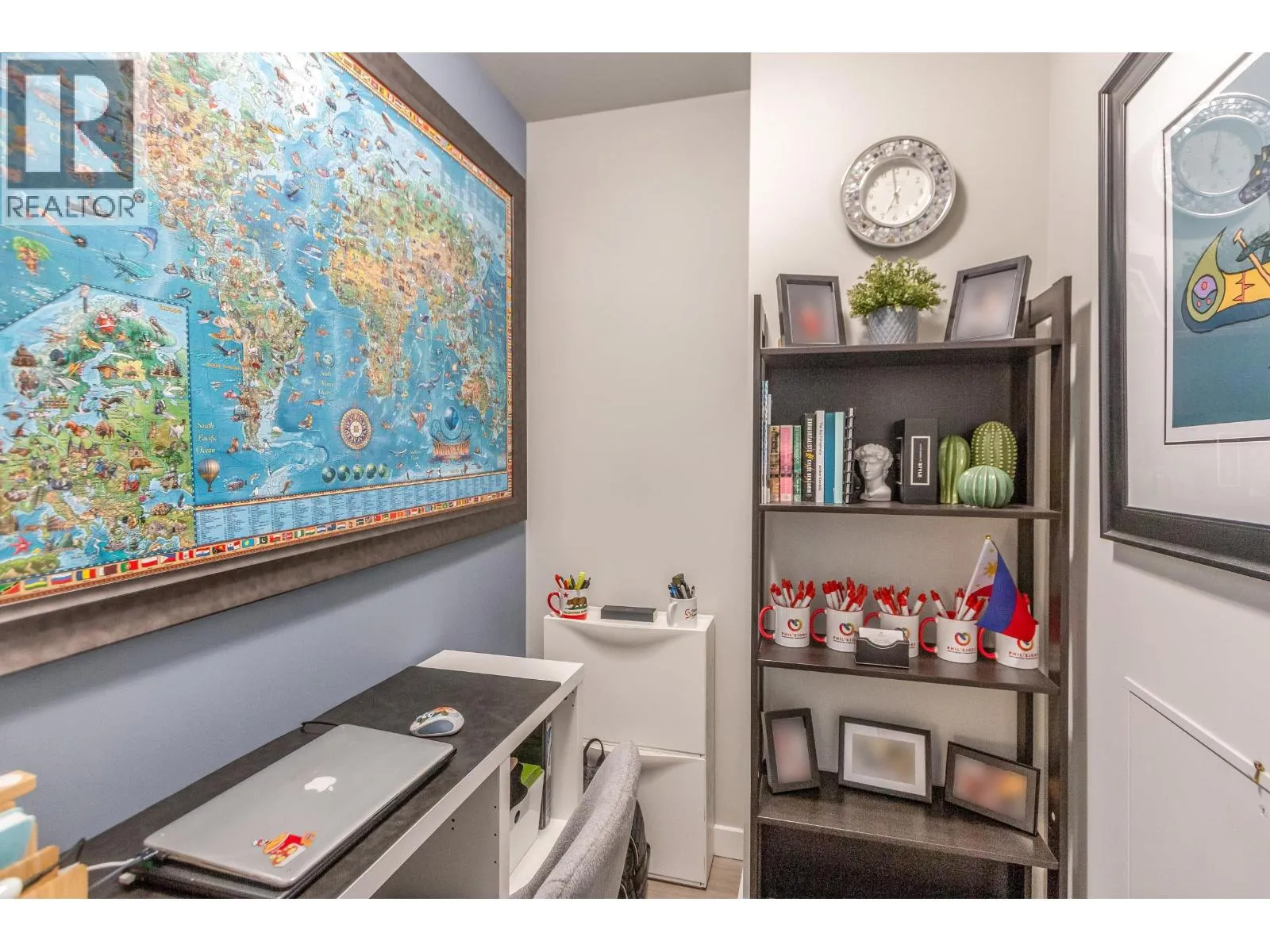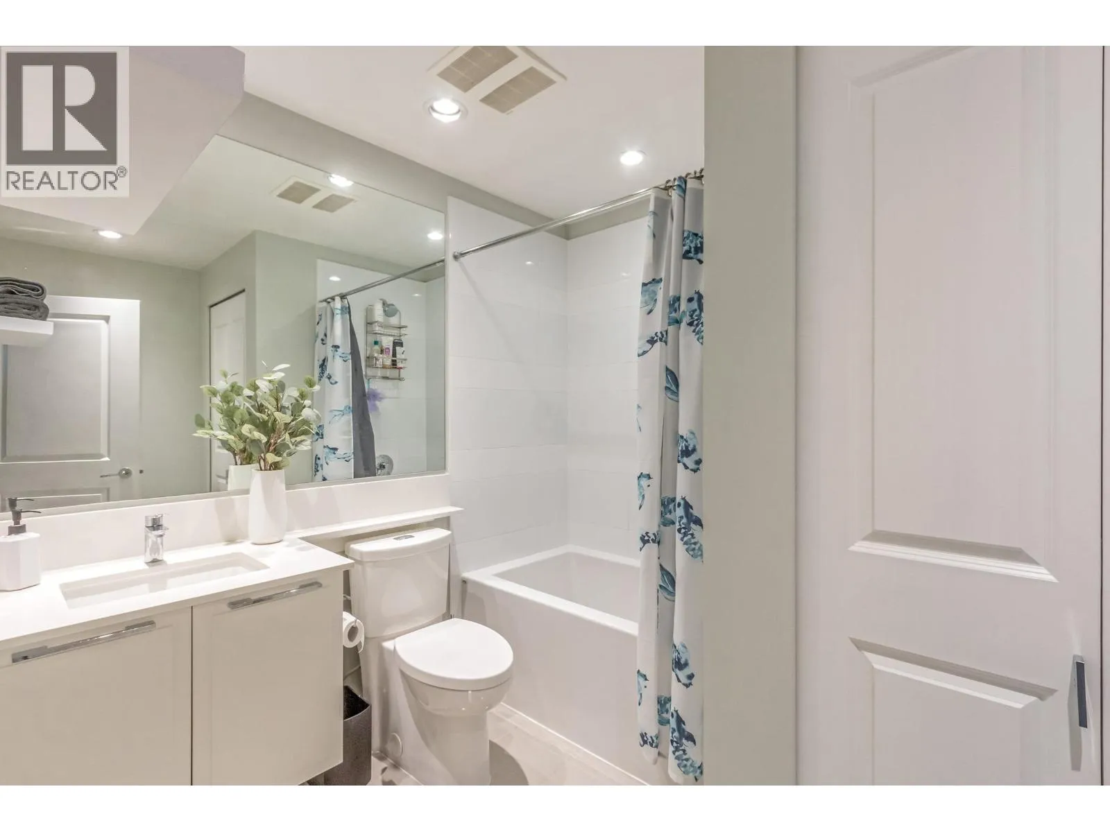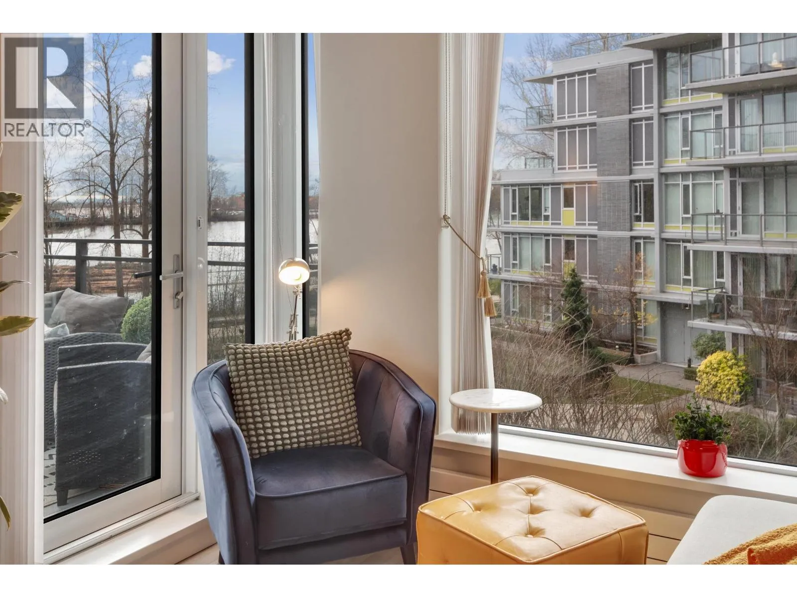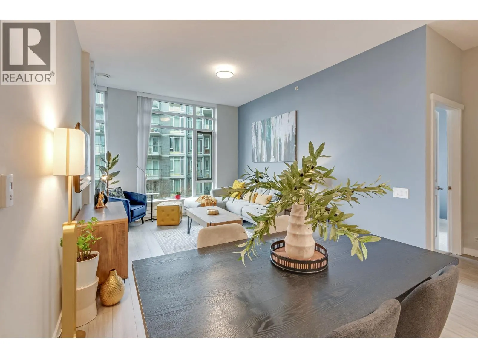 Currents at Water´s Edge by award-winning Polygon Homes showcases serene WATER VIEWS as the centerpiece of this bright concrete residence.Thoughtfully designed open-concept layout featuring 2 bdrms, 2 baths, & over-height 9´ ceilings. Expansive windows frame the water & flood the home with natural light. The gourmet kitchen offers a large island, high-end stainless steel appliances, a versatile storage room perfect for a pantry or home office. This home blends privacy with picturesque views overlooking the courtyard & water beyond. Premium amenities include a fitness center, club room & rooftop patio. Centrally located in the RiverDistrict, minutes from shops, restaurants,& daily conveniences. Includes 1 EV parking stall. A rare water view opportunity not to miss. (id:27476)