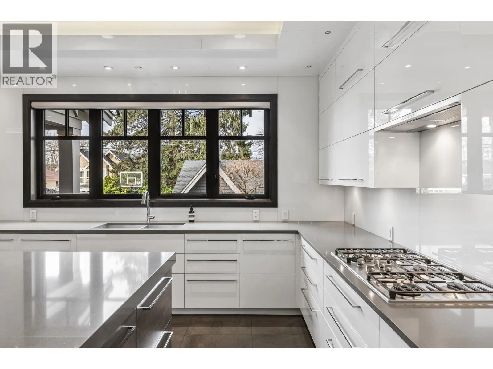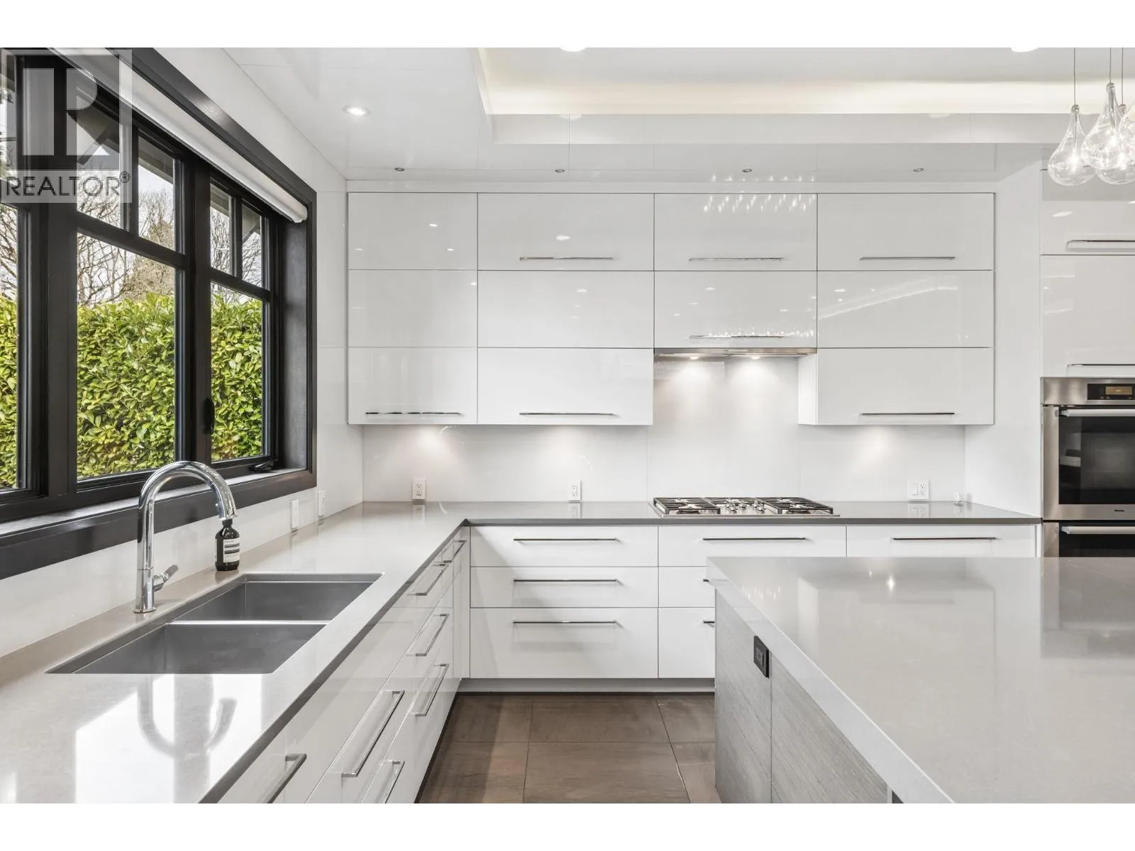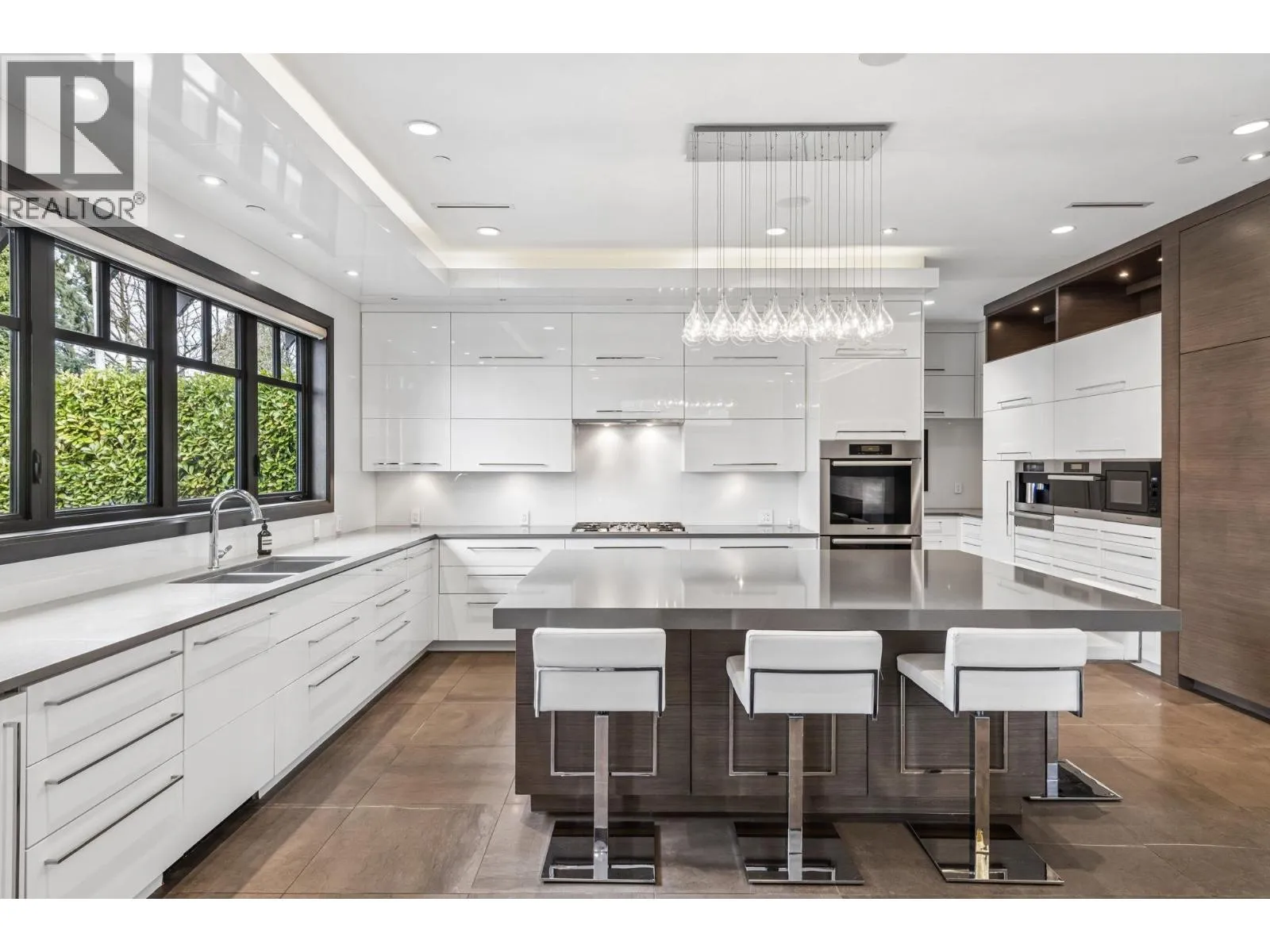 Modern - Masterpiece in South Granville. Nestled on prestigious Angus Drive, this 5,000 sq. ft. custom residence (built 2013) offers a rare blend of traditional Craftsman charm & ultra-modern luxury. 60 x 138.57 lot size (8,314.2 sq ft) The main floor features soaring 9´9" ceilings and a world-class chef´s kitchen with a massive waterfall island, high-gloss cabinetry, and premium Miele appliances. Experience seamless indoor-outdoor living with dramatic bi-fold doors leading to a heated, covered patio with a built-in stone BBQ kitchen. 3 spacious bedrooms up, including a primary retreat with 12'6" vaulted ceilings and a private balcony. Lower level is an entertainer´s dream with a sprawling rec room, wet bar, & 9' ceilings. AC, HRV, detached 2-car garage. (id:27476)