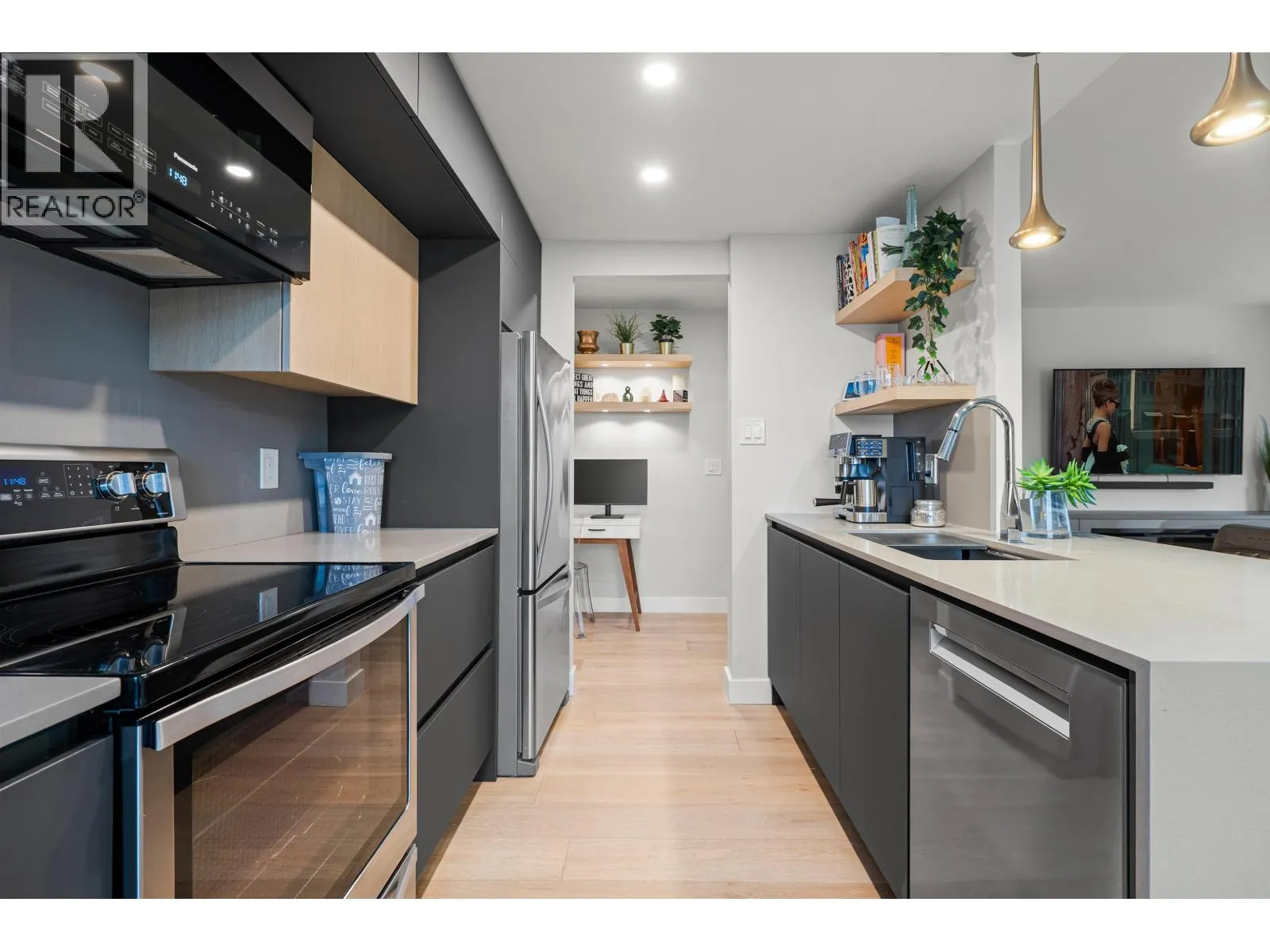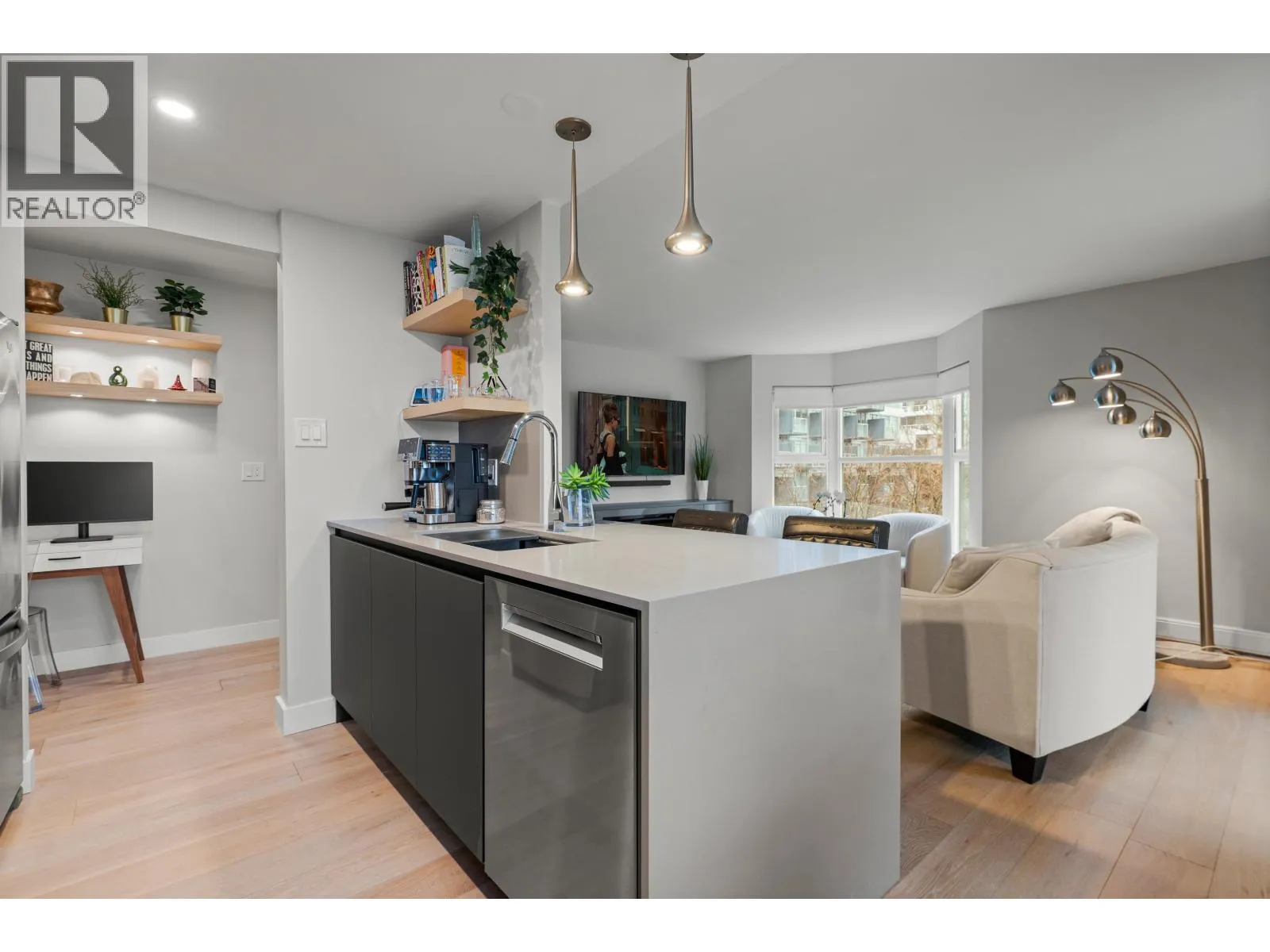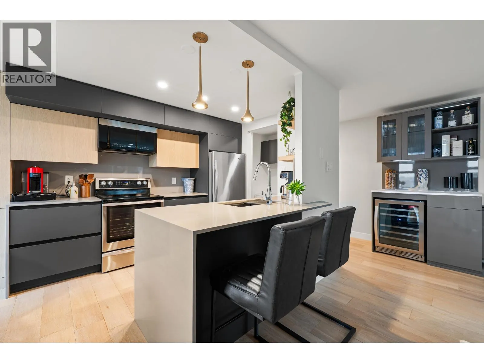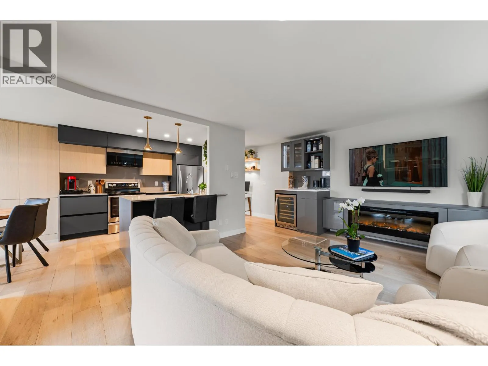 Welcome to this beautifully renovated nearly 1,000 square ft residence in the heart of Yaletown. Thoughtfully designed with an exceptional layout, this bright home offers expansive living spaces and large bedrooms. Featuring designer finishes, custom millwork, California Closet storage, a sleek electric fireplace, and a built in bar with wine fridge, it is perfect for entertaining. The second bedroom includes a smart Murphy bed extra flex space included (9'6 x 6'6). Enjoy a spacious laundry and storage room and peaceful water and courtyard views on the quiet side of the building. Meticulously maintained with updated exterior, elevator, and common areas. Amenities include gym and party room. 2 Pets welcome, 1 parking, 1 locker. Open House Friday March 27th 10am-12pm, March 28th+ 29th 2-4pm. (id:27476)