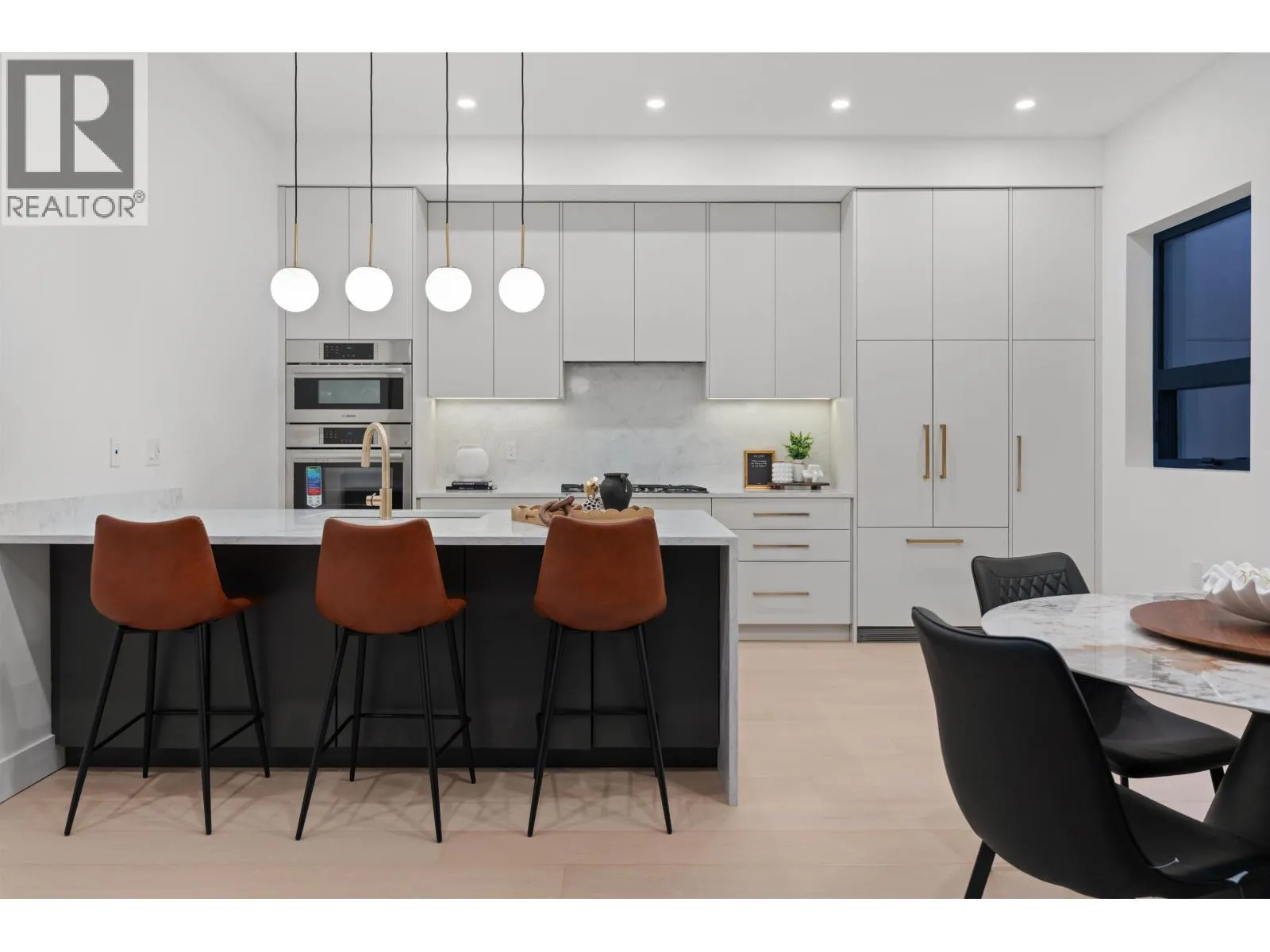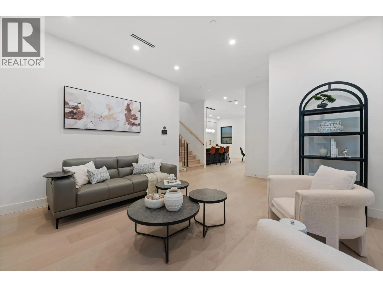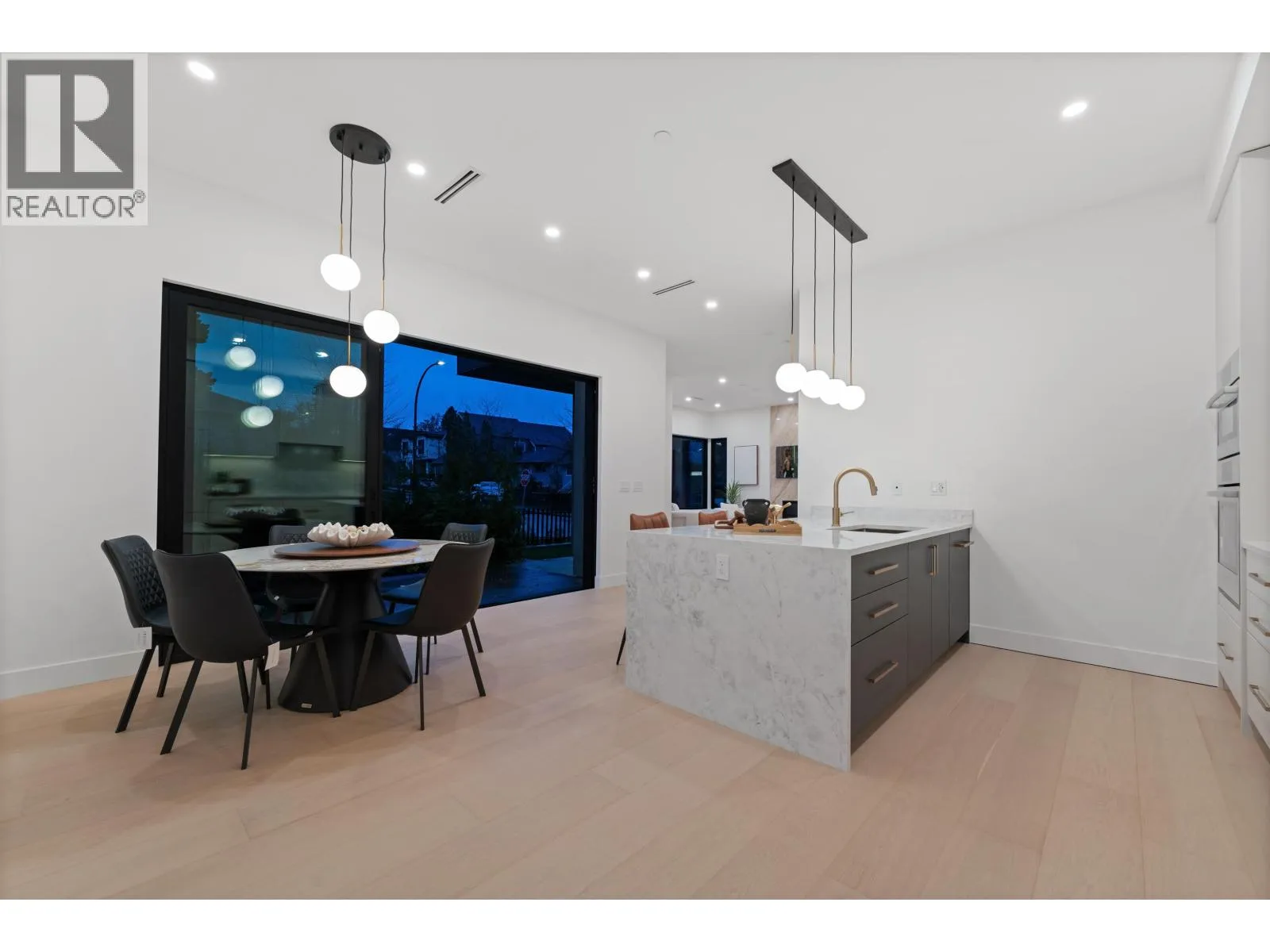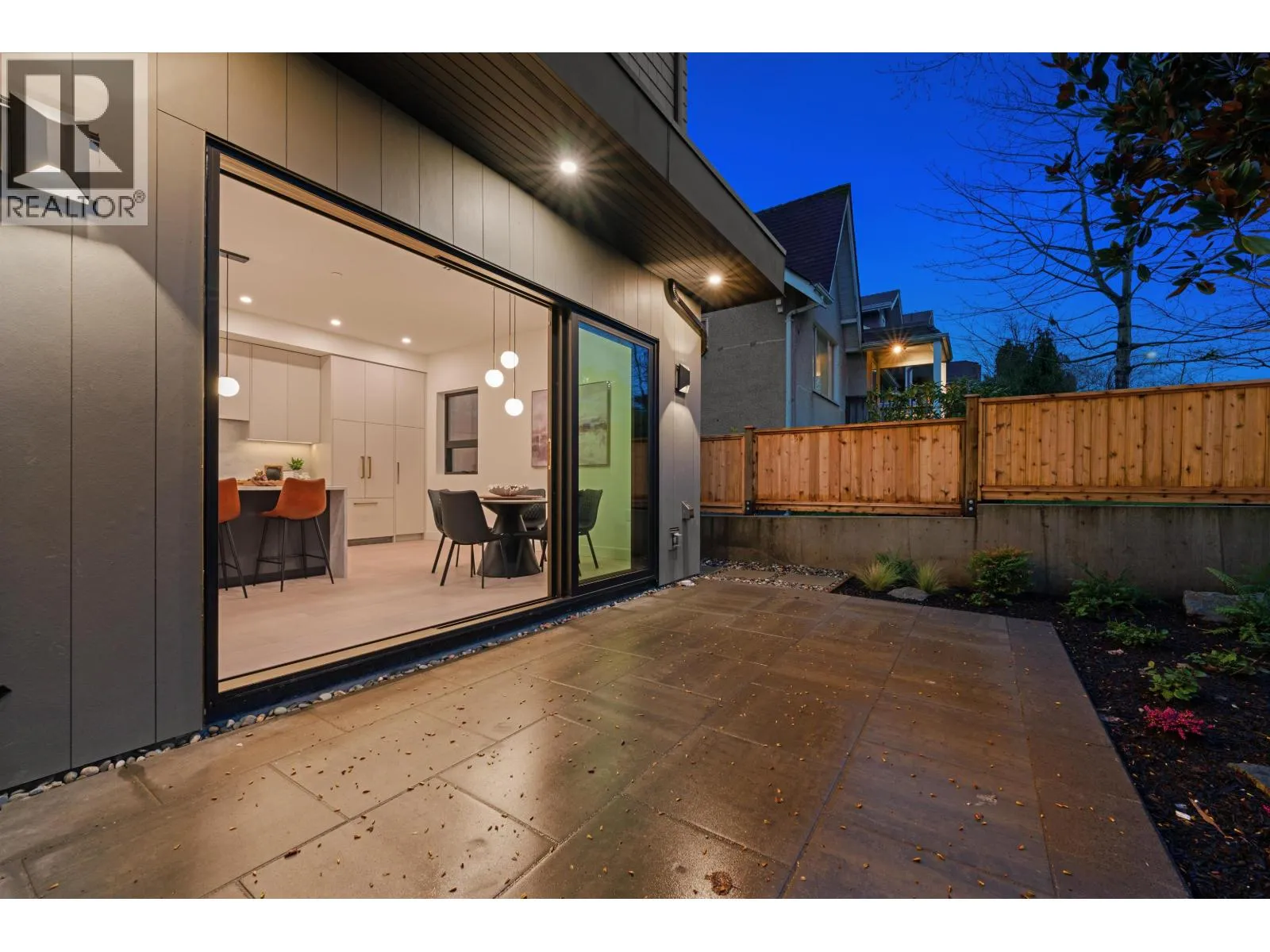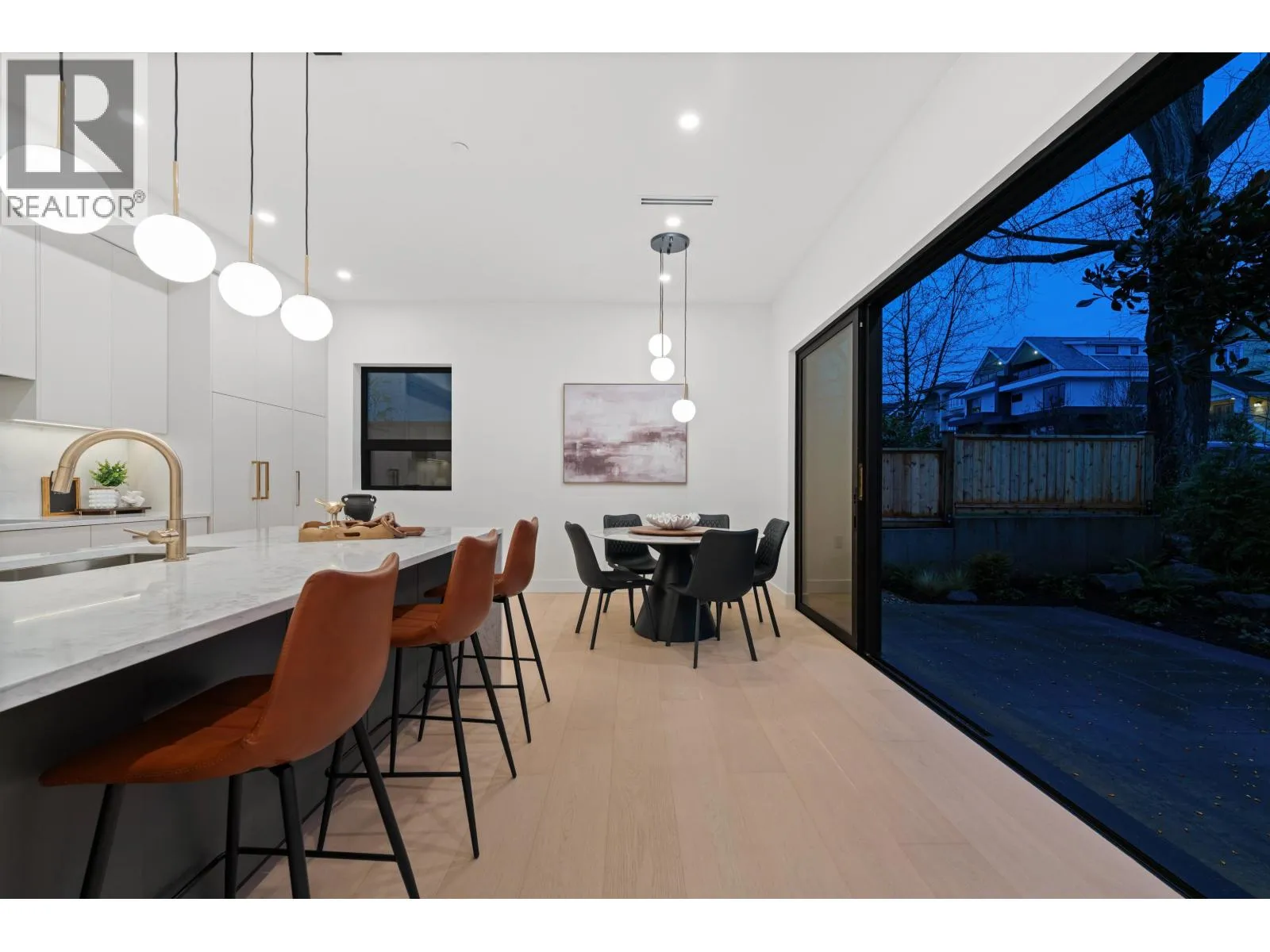 Striking Scandinavian-inspired architecture meets modern West Coast living at 1605 E 21st Avenue-an exceptional offering in Cedar Cottage. This fully detached, stratified home features 4 bedrooms, 3 bathrooms, and a private patio and garden for seamless indoor-outdoor living. The oversized open-concept main level connects the kitchen and dining area to multi slide patio, a rare main-floor bedroom adds flexibility for a guest room or office space. Upstairs offers 3 bedrooms, including a spacious primary with a walk-in closet and ensuite. Interior highlights include oak hardwood floors with radiant floor heat, custom millwork, integrated Bosch appliances, quartz waterfall countertops, and a sleek linear gas natural marble fireplace. Open House: Saturday, April 4, from 2 - 4 PM. (id:27476)