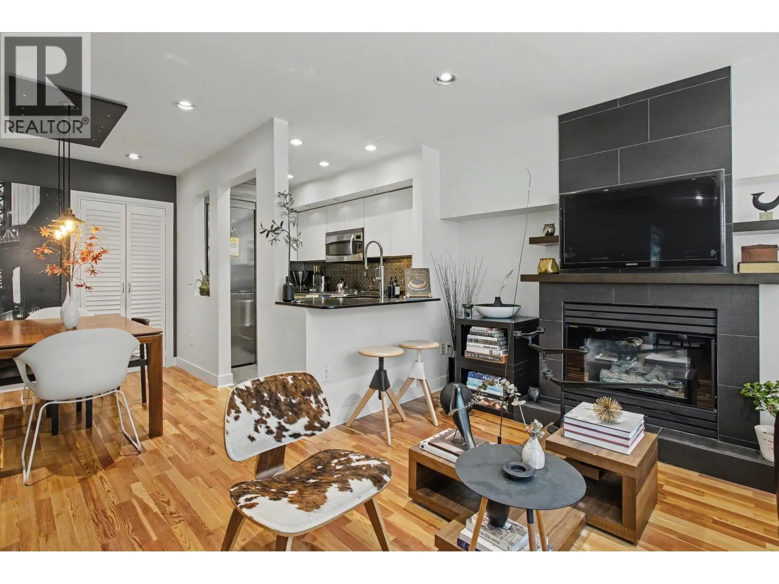 Welcome to The IVY'S in highly sought-after Fairview Slopes! This charming townhouse-style complex is known for its beautifully landscaped courtyard entrance, creating a warm & inviting first impression. Step into this beautifully updated 1 bedroom home, complete with a private patio right at your doorstep. The open layout features a spacious living room, gas fireplace, dedicated dining area & a modern, refreshed kitchen. The primary bedroom includes a generous W/I closet plus smart built-in storage surrounding the bed for maximum functionality. You'll also love the large, sleek & contemporary bathroom-a standout feature of the home. Location truly is everything here: just steps to Cambie & Broadway shops, transit, Canada Line, seawall at False Creek. Pet friendly building-2 dogs/cats. (id:27476)