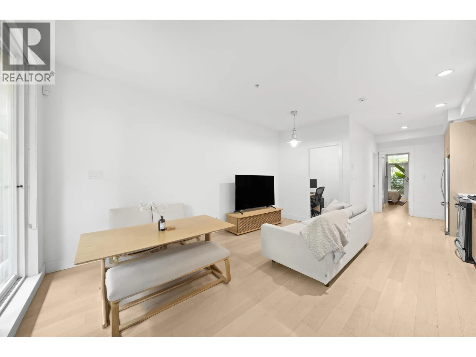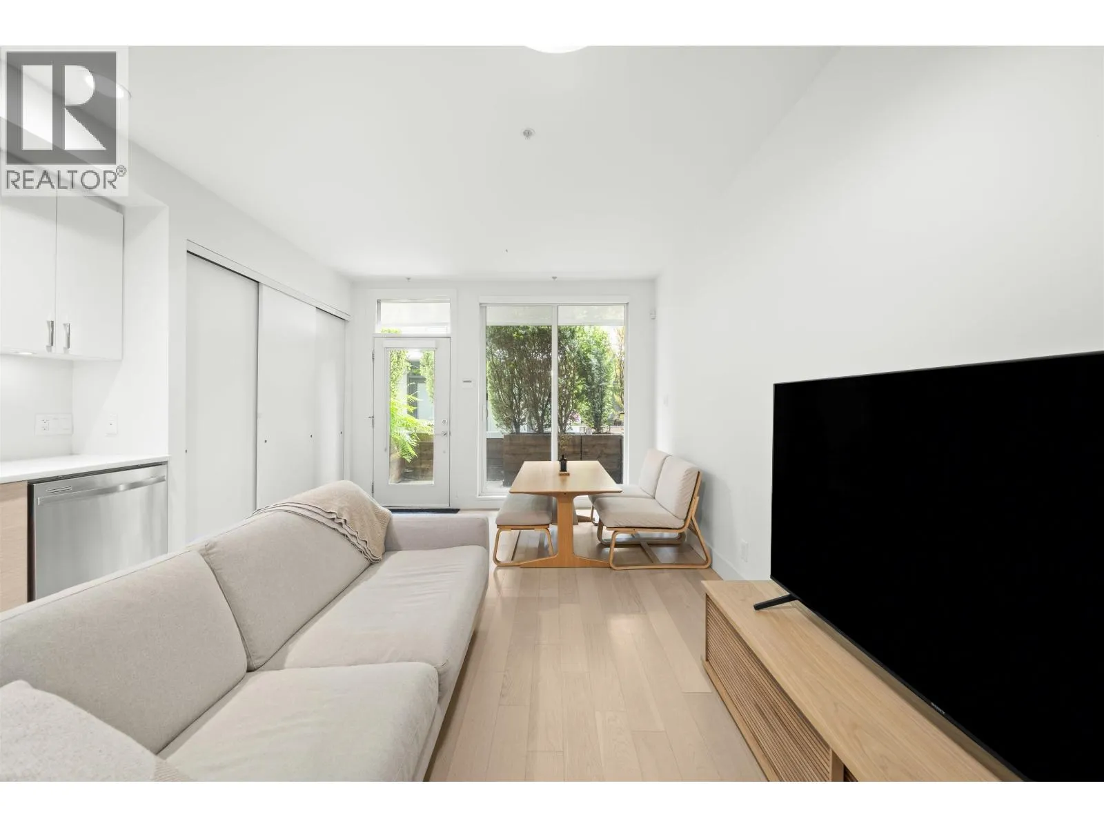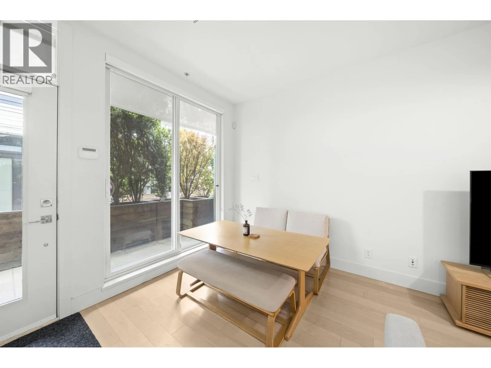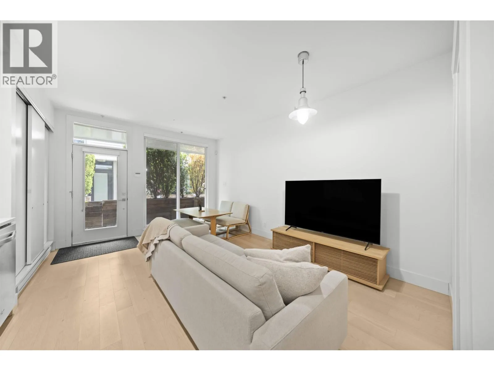Welcome to Grandview Cascades - West Coast modern living in the heart of the vibrant Commercial Drive area. This well-designed 1 Bed + Den + Flex home offers an open layout with hardwood floors, stainless steel appliances, and two garden patios with natural gas hookups for your BBQ. Enjoy plenty of in-suite storage and flexible spaces ideal for a home office or guest room. Located in a well-managed building with low strata fees, just minutes from downtown Vancouver with easy access to SkyTrain, shops, cafes, and restaurants. A perfect blend of comfort, location, and value in one of the city´s most eclectic neighbourhoods. Don´t miss this opportunity! Showings by appointment. (id:27476)