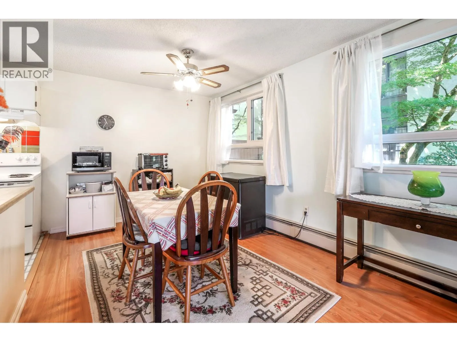 Original owner! Well laid-out 2 BR NW corner unit with a bright open plan Kitchen. This allows lots of natural light into the Kitchen from the Dining Room windows. Re-painted cabinets, newer light fixture & vinyl flooring in the Kitchen. Laminate flooring in the Living Room, Dining Room and Hall. Newer carpets in BRs. Primary BR features a walk-thru closet to a 2-piece Ensuite. 2 parking stalls! Common area rooftop deck. Building upgrades include balcony renewal, epoxy application to plumbing service lines, electrical work & updated Depreciation Report. Walking distance to future Great Northern Way-Emily Carr ALRT Station on the Millenium Line. More transit options on Broadway. Vancouver Community College nearby. (id:27476)