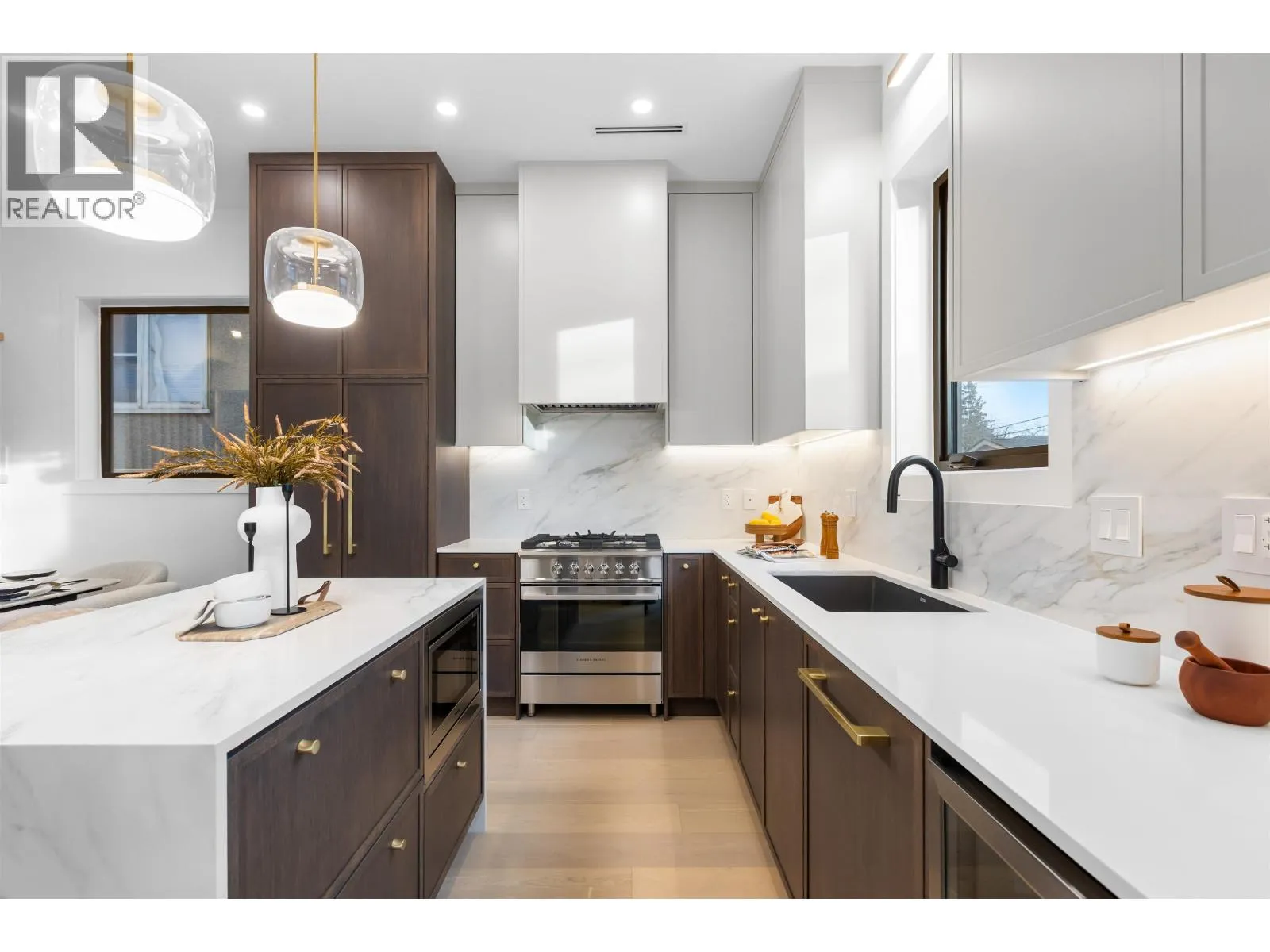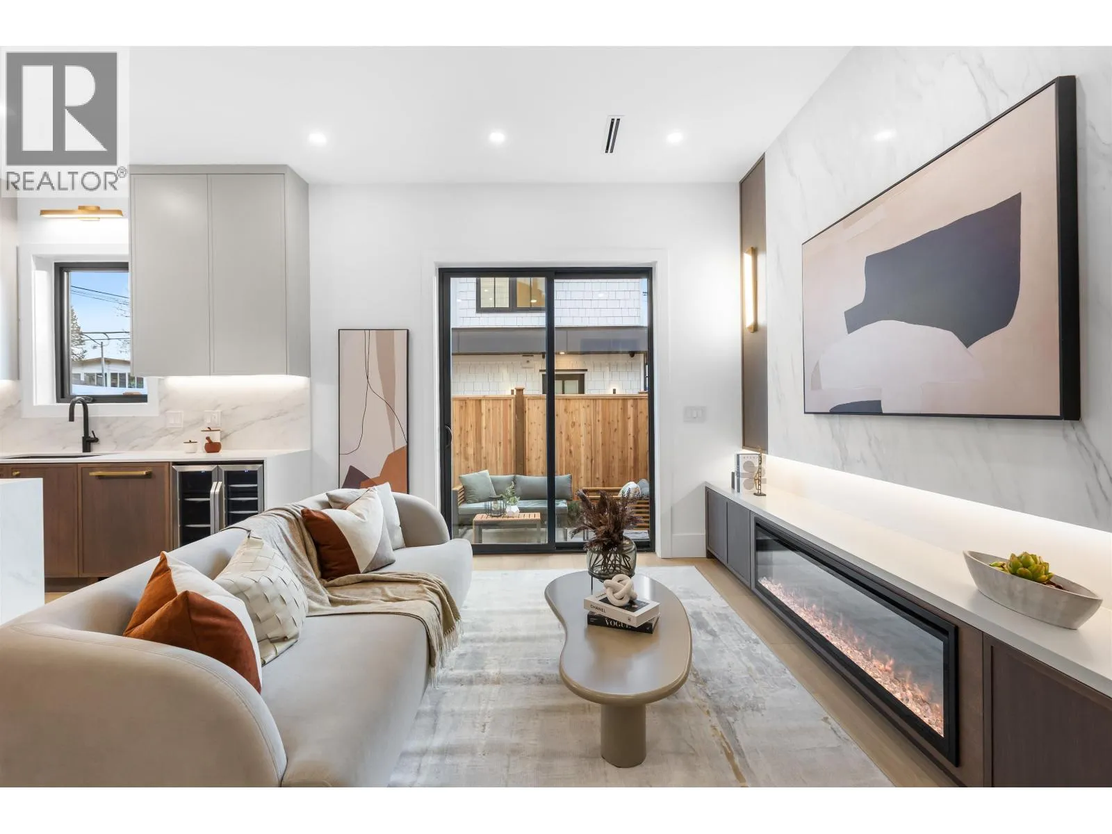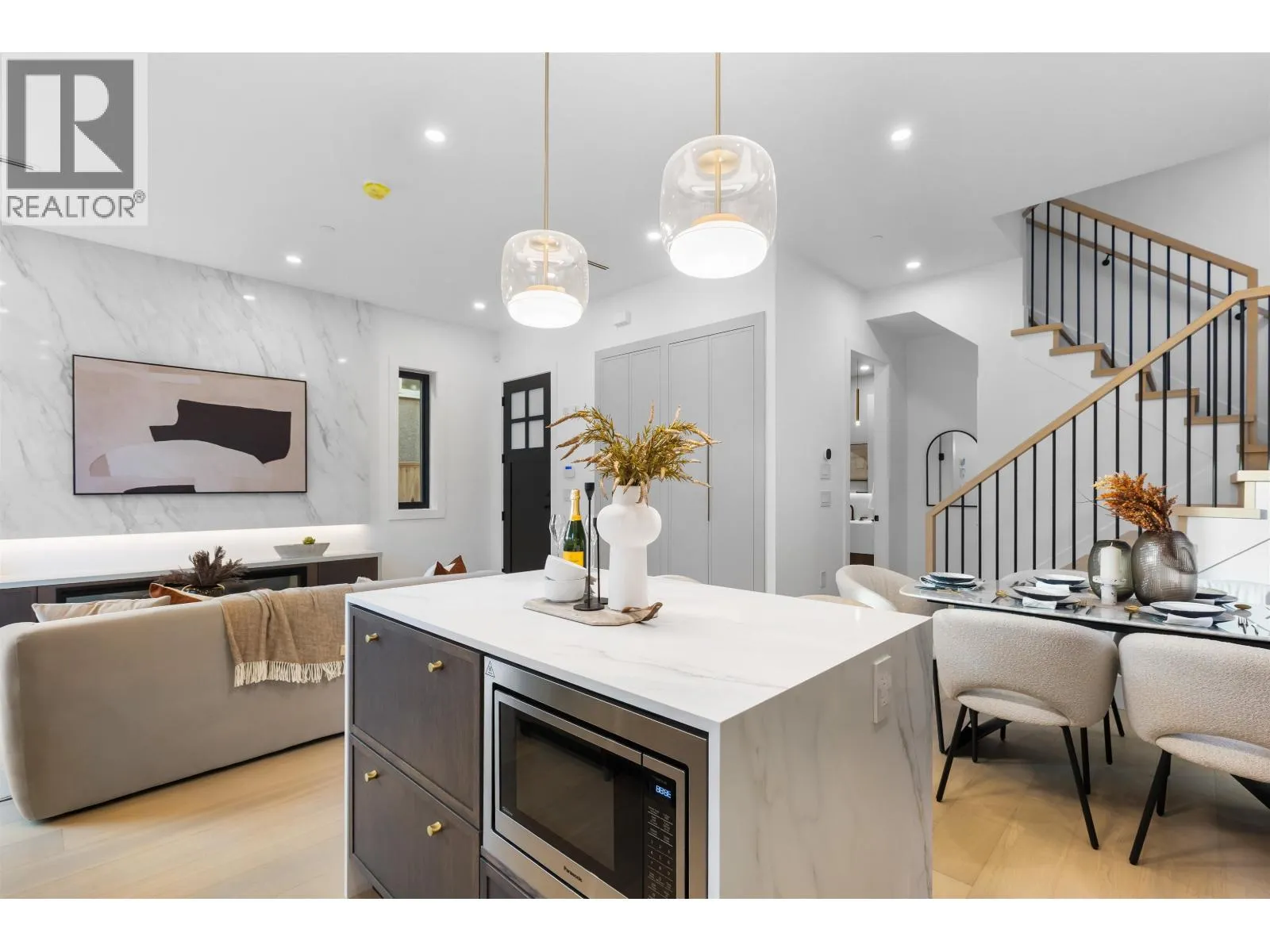Discover this designer crafted 3-storey duplex home in Vancouver´s Sunset neighbourhood. Built by Brastin Builders Group and designed by Kenzi Design House, the home offers 3 spacious bedrooms, 4 bathrooms + 1 designated EV-ready carport. Inside the home you'll find enhanced features such as custom cabinetry, LED lighting to add to the ambiance, radiant floor heating, AC heat pump, engineered hardwood, Fisher Paykel appliance package, spa-like bathrooms and option for 2 primary bedrooms. The main floor opens up to 10ft grand ceiling heights that create an expansive sense of space, while the high-efficiency construction with modern amenities delivers premium living. This family-friendly address is surrounded by parks, shopping + transit and designed for families and urban professionals. (id:27476)