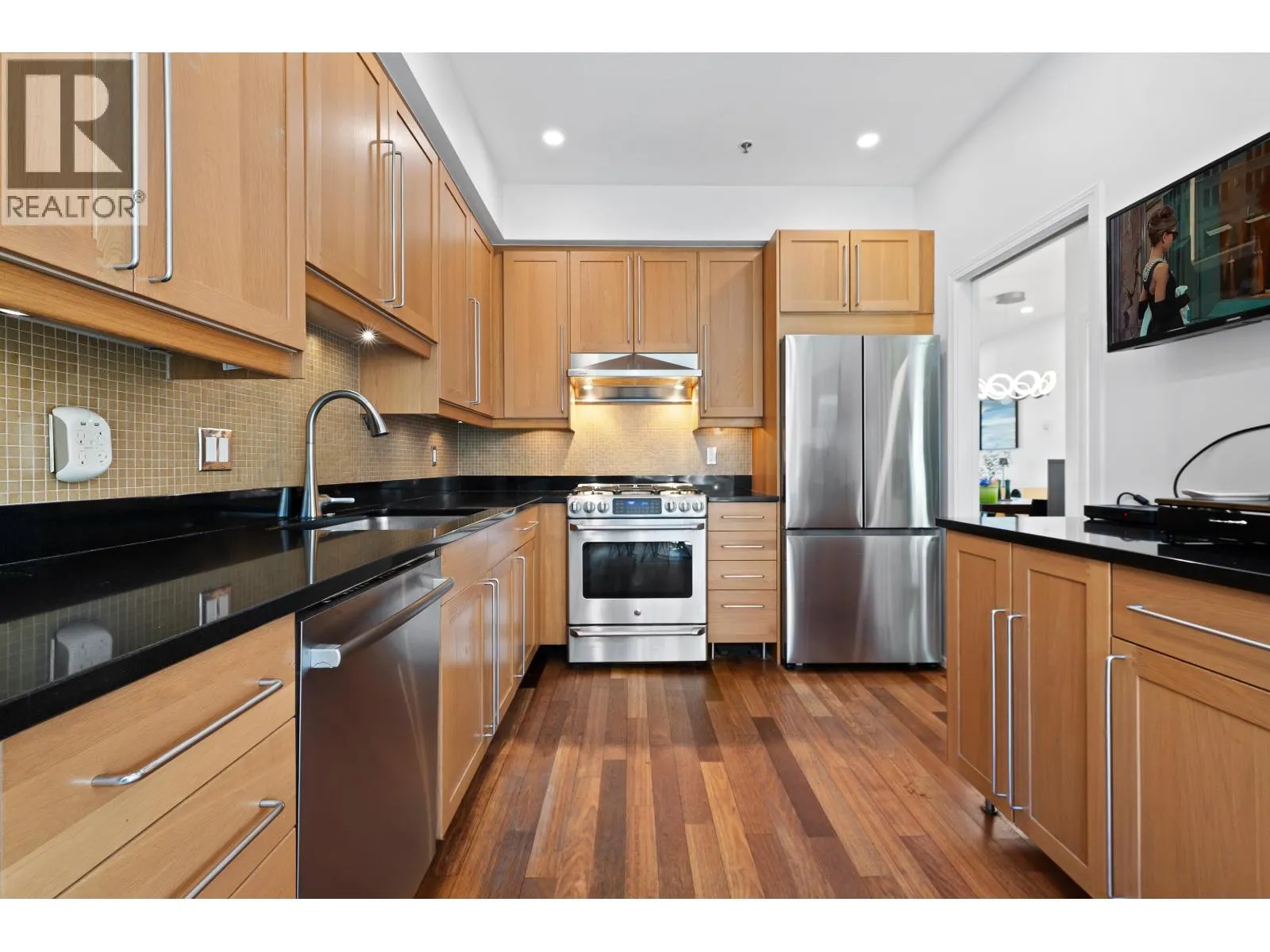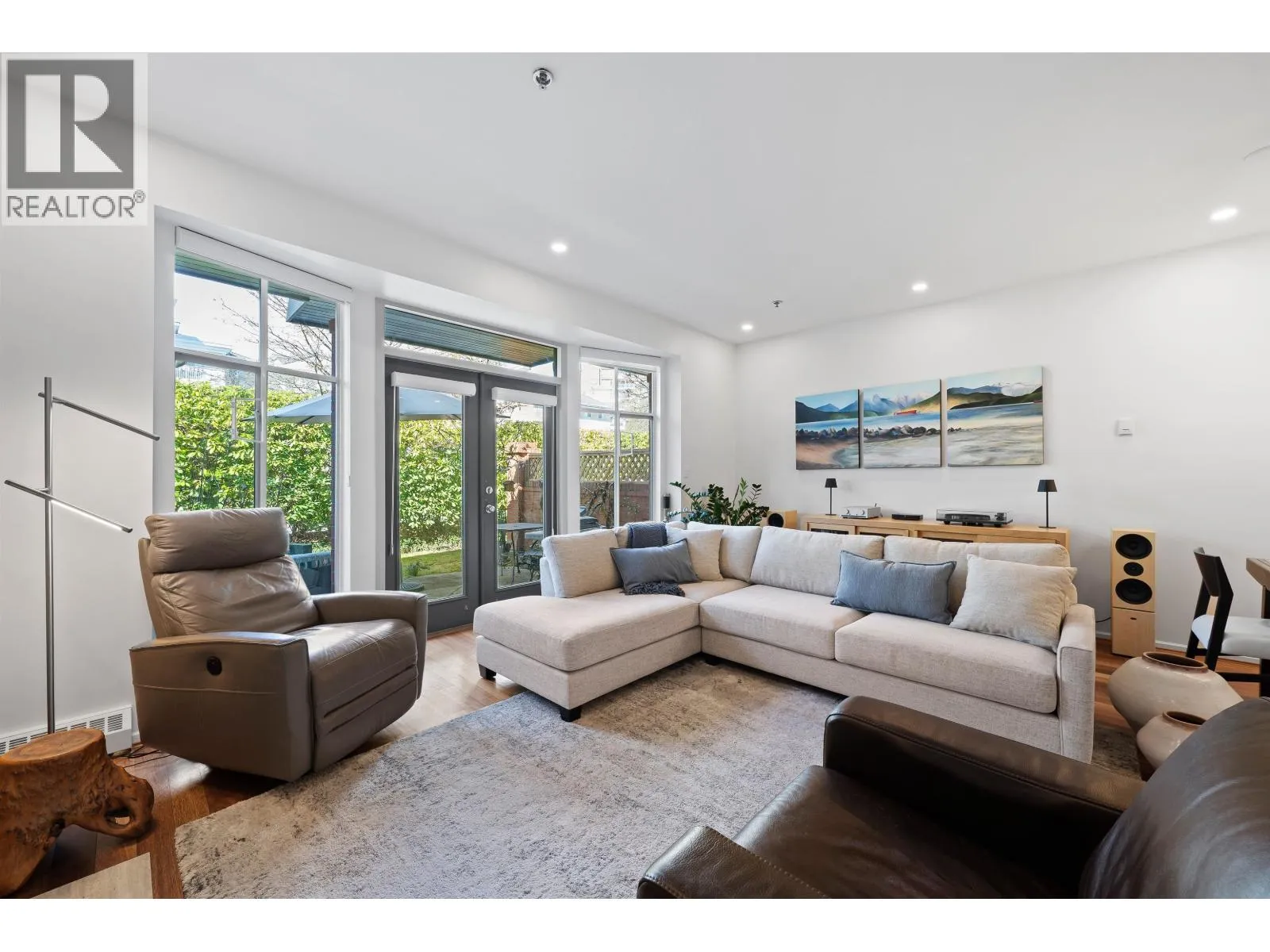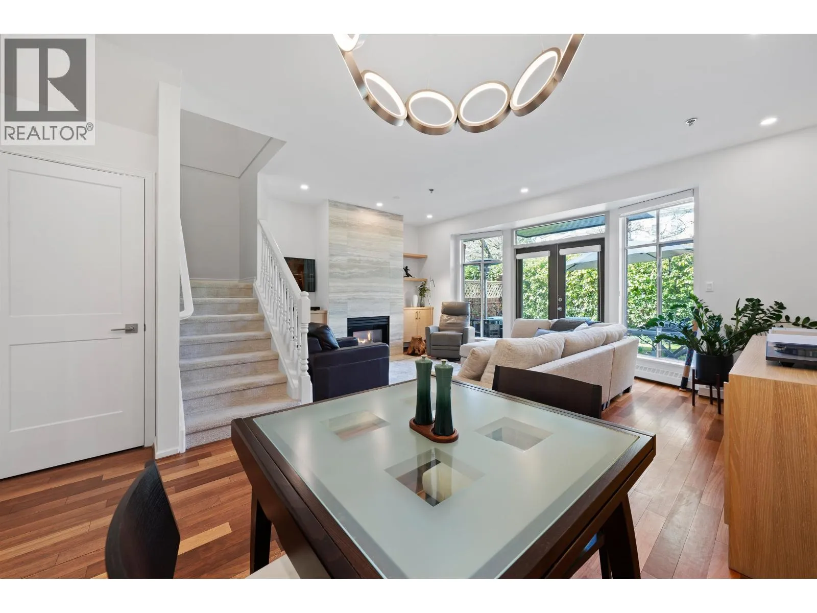 Welcome to this beautifully renovated townhouse at Thames Court in the heart of UBC. Offering approximately 1,700 sq. ft. of thoughtfully designed living space, this 3-level home features 2 spacious bedrooms and 2.5 bathrooms. The main floor showcases a stunning updated kitchen with sleek black stone countertops, new cabinetry, stainless steel appliances, and a gas stove-perfect for everyday living and entertaining. Rich hardwood flooring flows throughout, while the inviting living room is anchored by a cozy gas fireplace. Upstairs, both bedrooms are generously sized, with well-appointed bathrooms featuring modern finishes and quartz countertops. The lower level adds incredible versatility with a large recreation room ideal for a media space, home office, or guest area. This home is further enhanced by a rare combination of both front and back private yards, offering seamless indoor-outdoor living. Complete with a secure underground double garage, this home is set within a charming, family-friendly complex. (id:27476)
