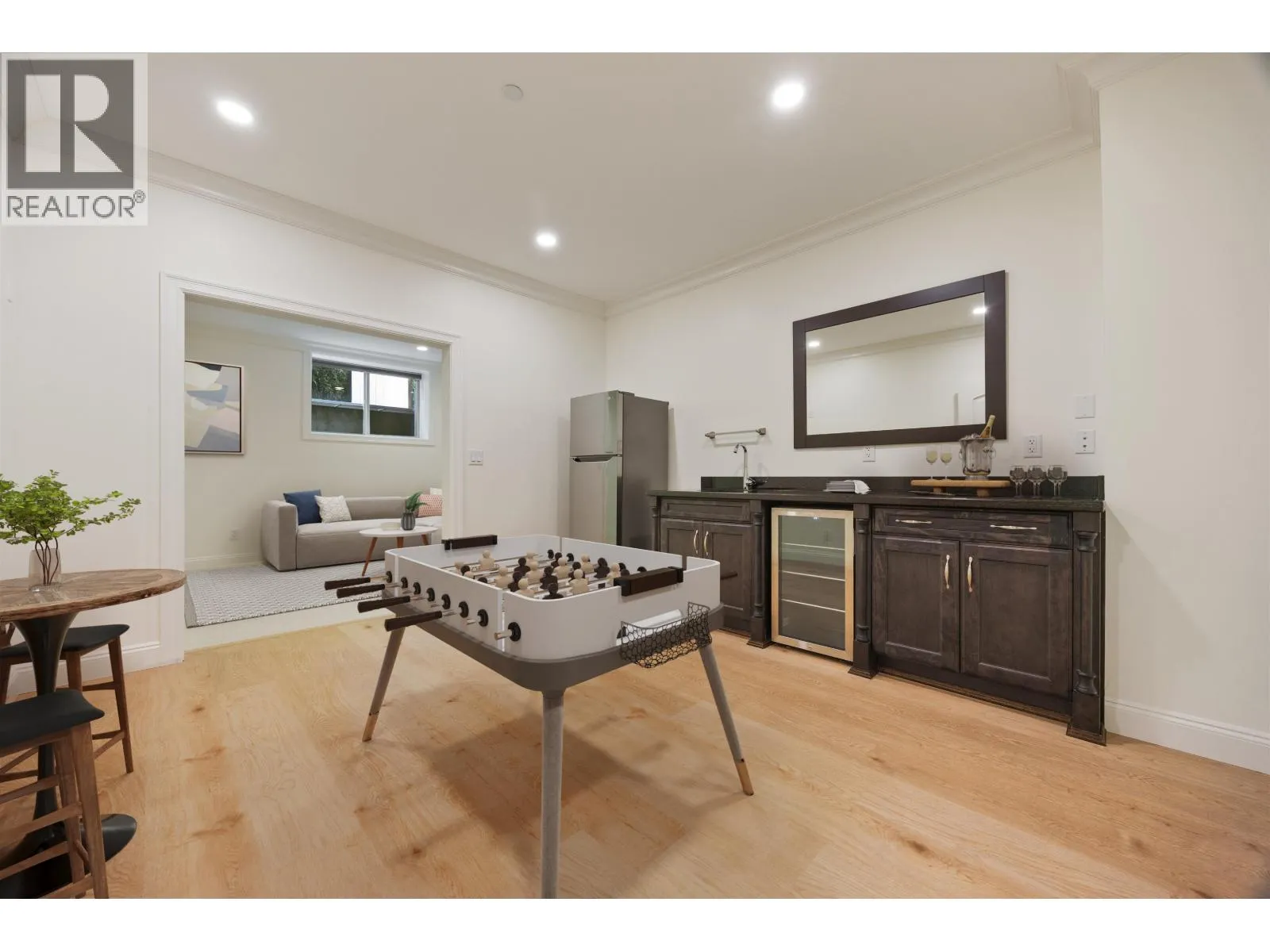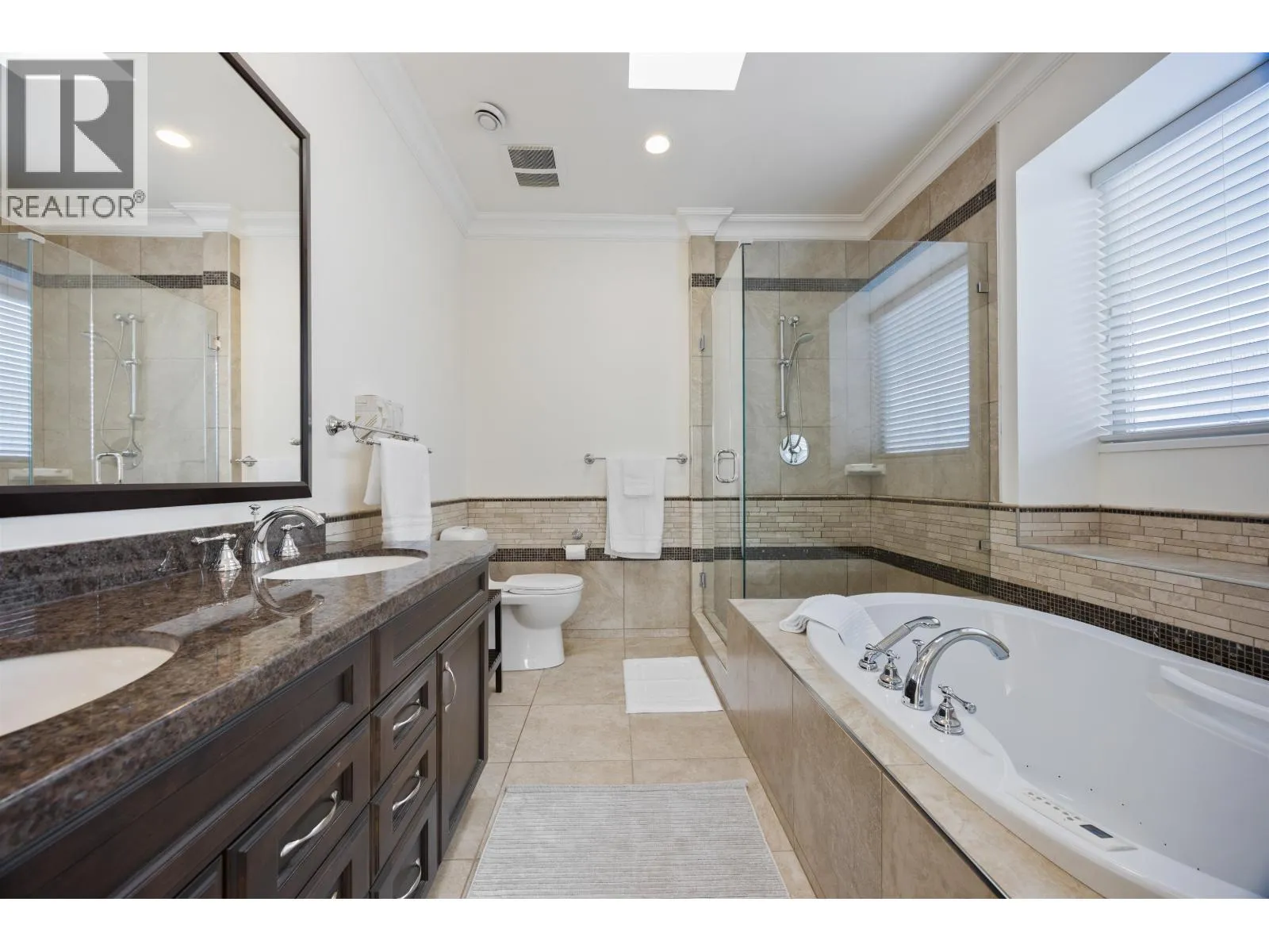 Set on a 51 by 121.5 ft lot in Point Grey this residence offers 4242 square ft of living space. The primary suite upstairs features a walk-in closet and ensuite. There are three secondary spacious bedrooms upstairs with two additional full bathrooms. The main floor has a spacious living room, dining room, large bright office, and an open kitchen/family room including a mudroom with a washer and dryer designed for daily family life. The lower level includes a media room, wet bar, full bathroom with steam shower, laundry room, and flex room for storage, gym or hobbies. The lower level also features a generous sized 2 bedroom suite which includes a kitchen, full bathroom and laundry. There is a private yard and detached three car garage. This house is in a neighbourhood with premier private and public schools. It is also within a couple of blocks to Jericho Beach and private clubs. (id:27476)
