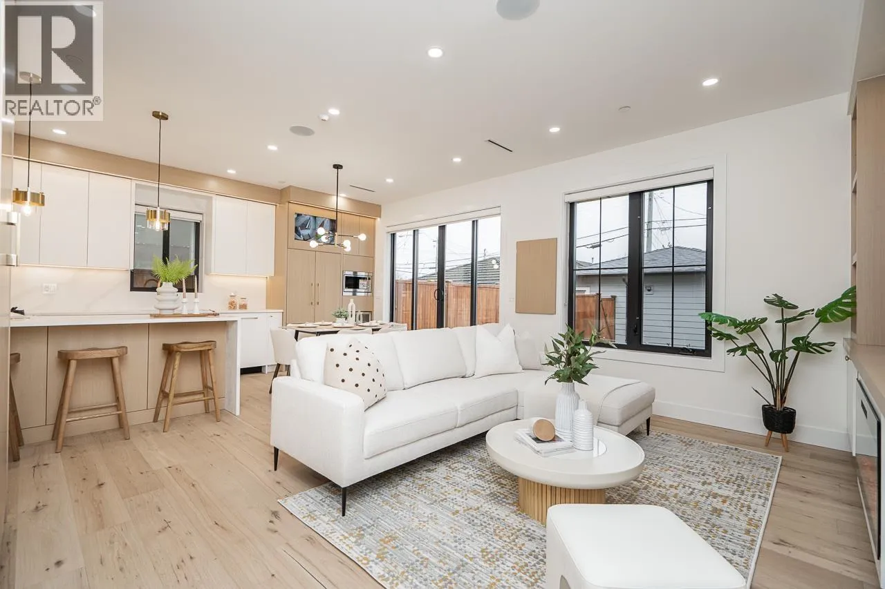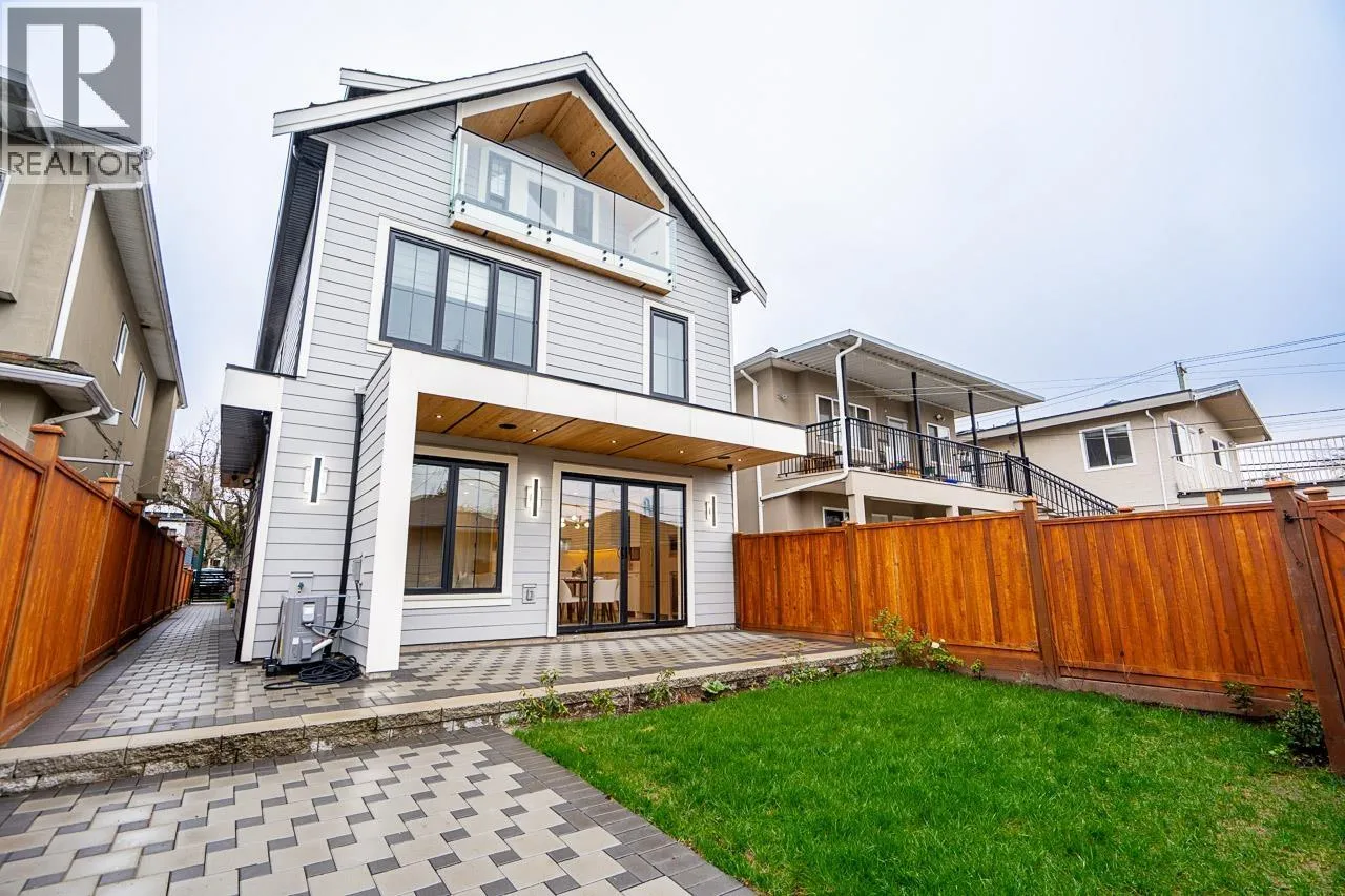 Brand new SOUTH FACING Vancouver home, ideal for young families upsizing or empty nesters downsizing without compromise. This beautifully finished south-facing home offers great natural lighting, 3 bedrooms, 3.5 baths, bright living spaces, generous storage, and exceptional outdoor space with a large patio and private back garden. Premium features include a high-end appliance package, A/C, wine cooler, custom wine rack, custom cabinetry, granite countertops, radiant in-floor heating, Google Nest Gen 3 thermostat, electric fireplace, built-in speakers, and security system with TV monitor. Close to J.W. Sexsmith Elementary, Sir Winston Churchill Secondary French Immersion, Queen Elizabeth Park, transit, shopping, and everyday amenities - bonus: 2 parking stalls. (id:27476)