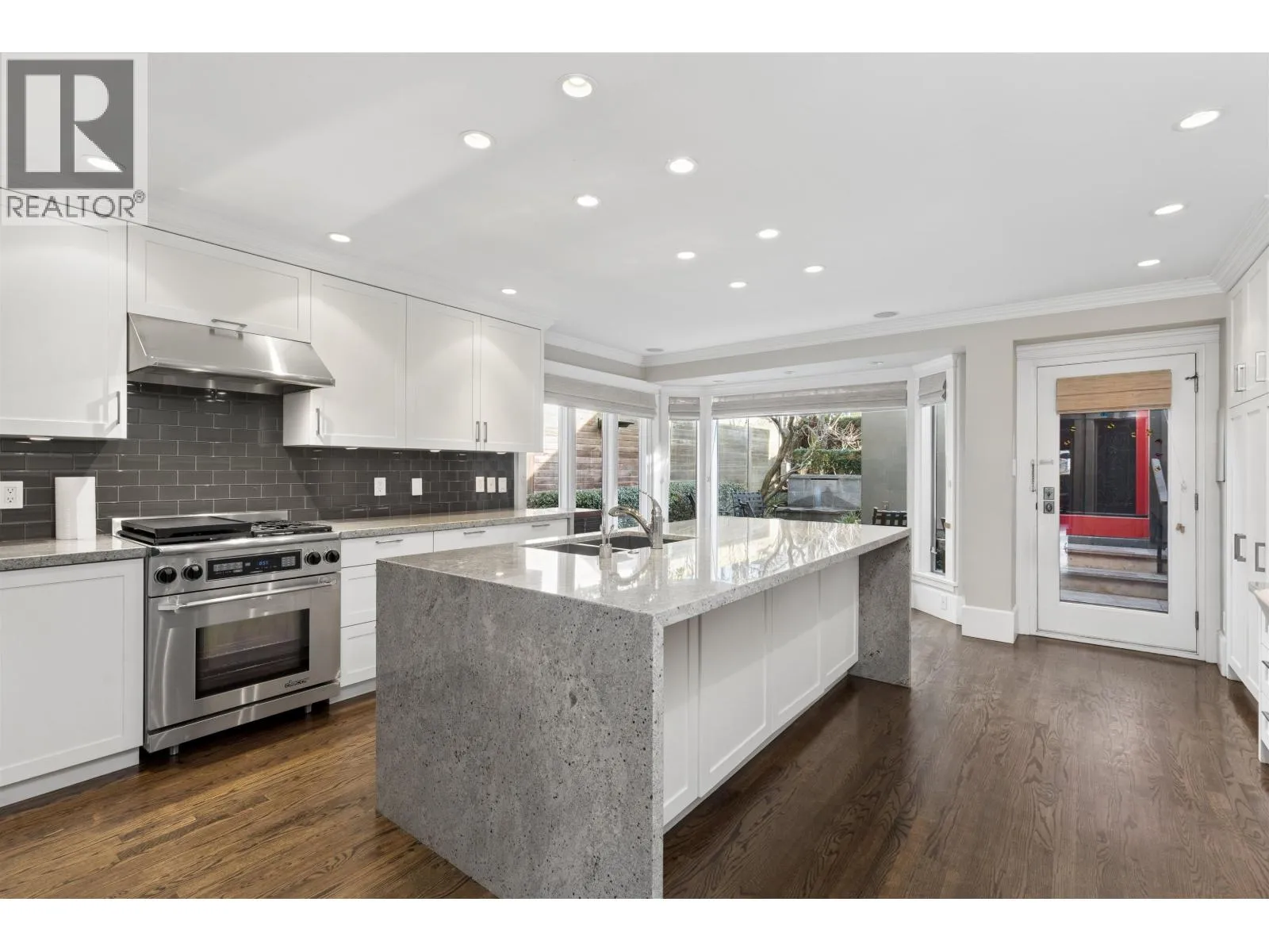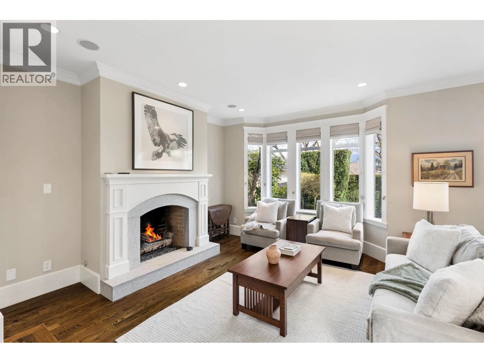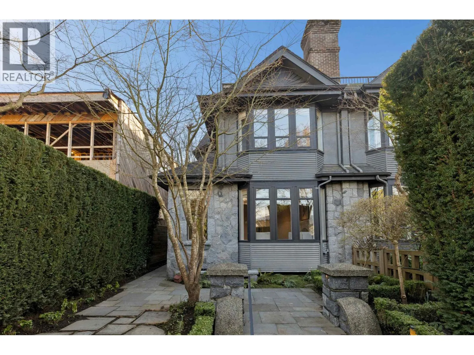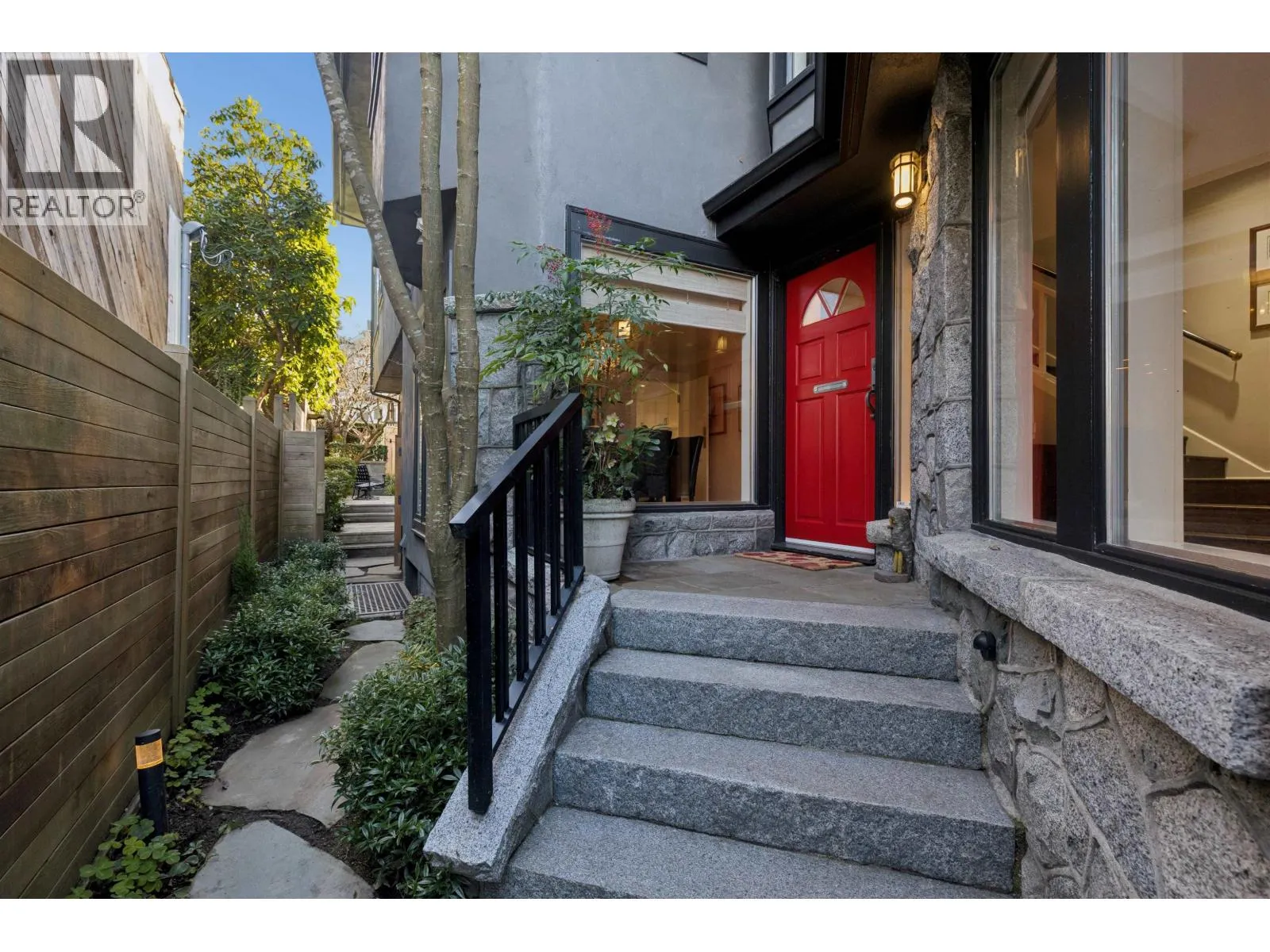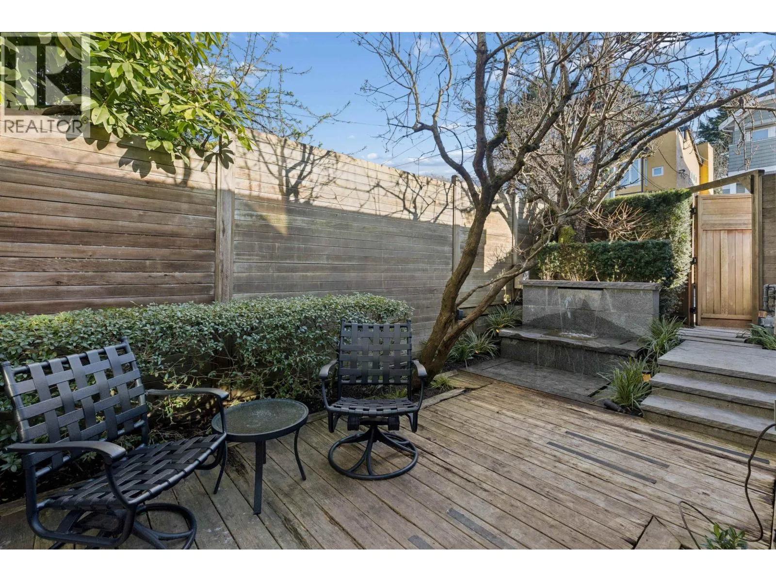 Exceptional opportunity to live on iconic Point Grey Road. Steps from the Seawall, Kits Beach, the Showboat, and the vibrant shops and cafés of West 4th. This elegant half-duplex offers over 3,500 sq. ft. across four levels of refined living. The main floor features expansive living and dining spaces and a beautifully updated kitchen with premium appliances, opening to a tranquil private garden with granite fountain. The top level boasts dramatic vaulted ceilings and an extraordinary rooftop deck with sweeping city, mountain, and water views. The 2nd/lower level very versatile! Complete with three gas fireplaces, abundant natural light, sauna, private garage, and flexible space offering four bedrooms with potential for five and four bathrooms - an exceptional Vancouver lifestyle. (id:27476)