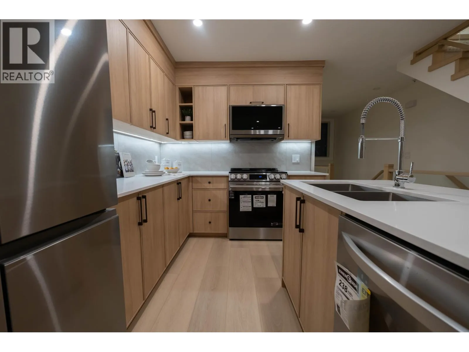 Rarely available Freehold Strata fully renovated 4-bedroom townhome with 3 full bathrooms at Marine Woods in sought-after Champlain Heights! This bright, spacious home has been completely transformed with brand-new renovation, featuring a stunning chef-inspired kitchen, luxury spa-like bathrooms, sleek modern finishes, updated lighting, premium flooring, and a fresh contemporary feel throughout. Enjoy a quiet greenbelt-facing setting with 2 golf courses nearby, plus just 2 minutes to River District shops, parks, trails and amenities, and only 10 minutes to Metrotown. School catchments include Champlain Heights Elementary and Killarney Secondary. Single garage with Level 2 EV charger. Extra parking stall available for rent at minimal fee. Open House April 4/5 from 2:00 to 4:00 (id:27476)