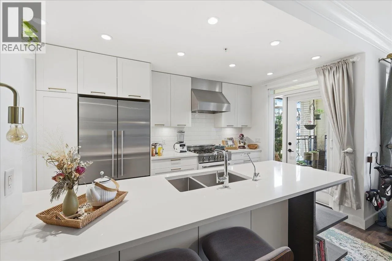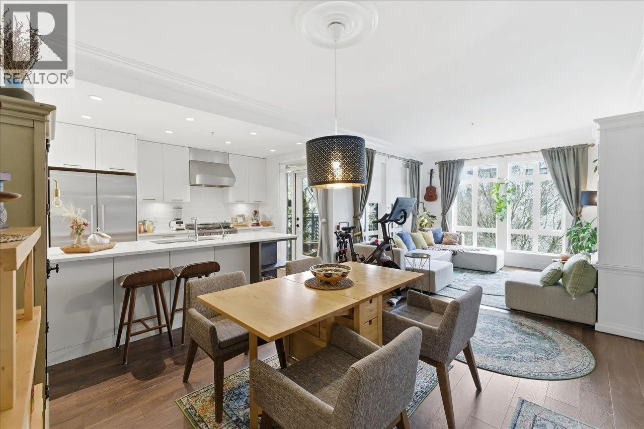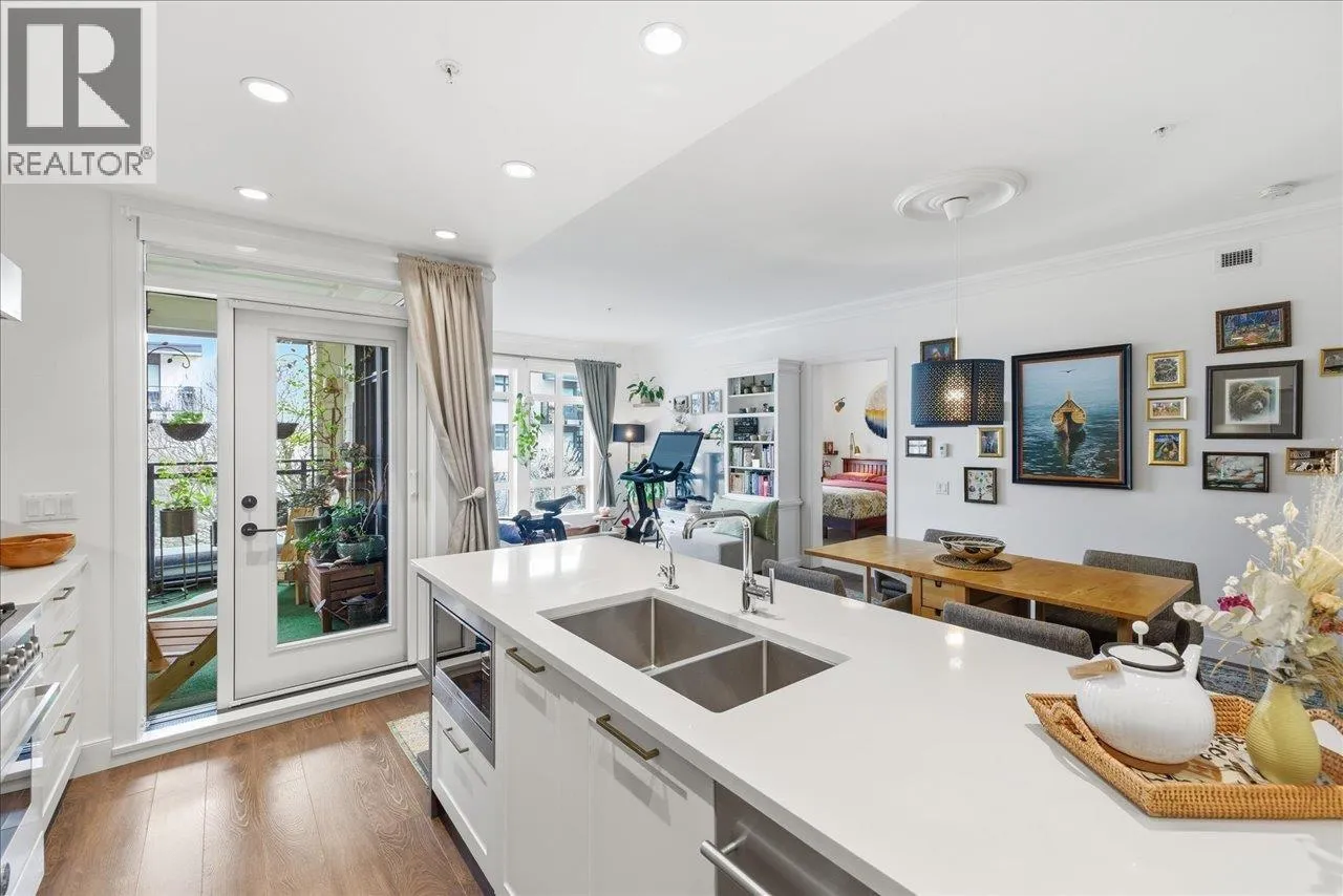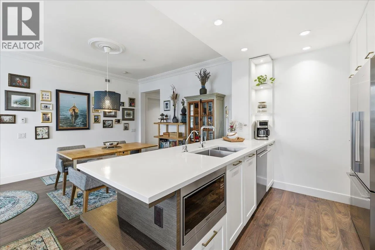 Experience elevated living at James Walk, a LEED Gold building by Mosaic Homes, designed by Ramsay Worden Architects and recipient of a 2019 Masonry Institute of British Columbia Design Award. This third-floor corner unit offers 2 bedrooms & den, 9´ ceilings with crown moulding, peekaboo North Shore mountain views, and an inset covered balcony. Comfort and convenience include in-floor radiant heating, HRV system, and a fully installed alarm system. Custom Murphy bed (Made in Italy), Phantom Screens on select windows and balcony door, Multipure under-counter water filtration, Bertazzoni stove. 1 parking (EV-ready parkade). BONUS - 3 storage lockers. Pet friendly. Steps from community centre, parks, and a weekly farmer's market. Open house Thursday 4-6, Friday/Saturday/Sunday 2-4. (id:27476)