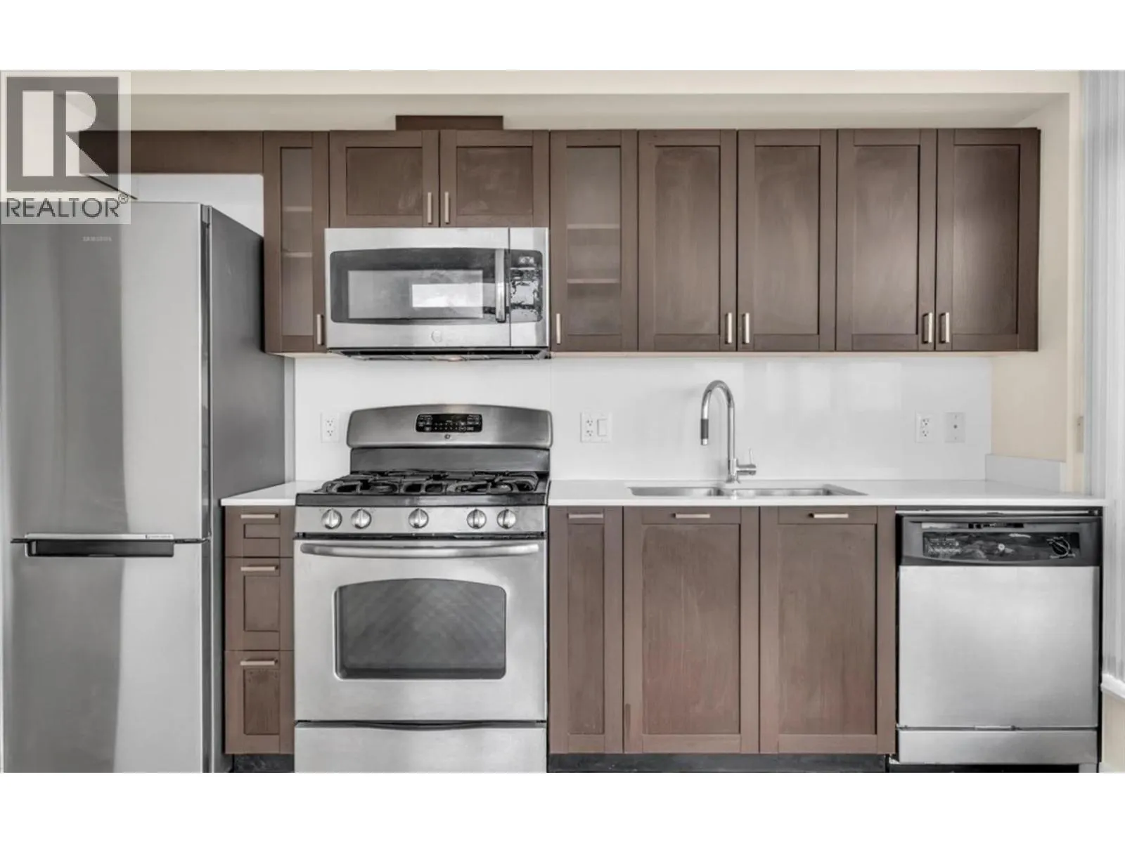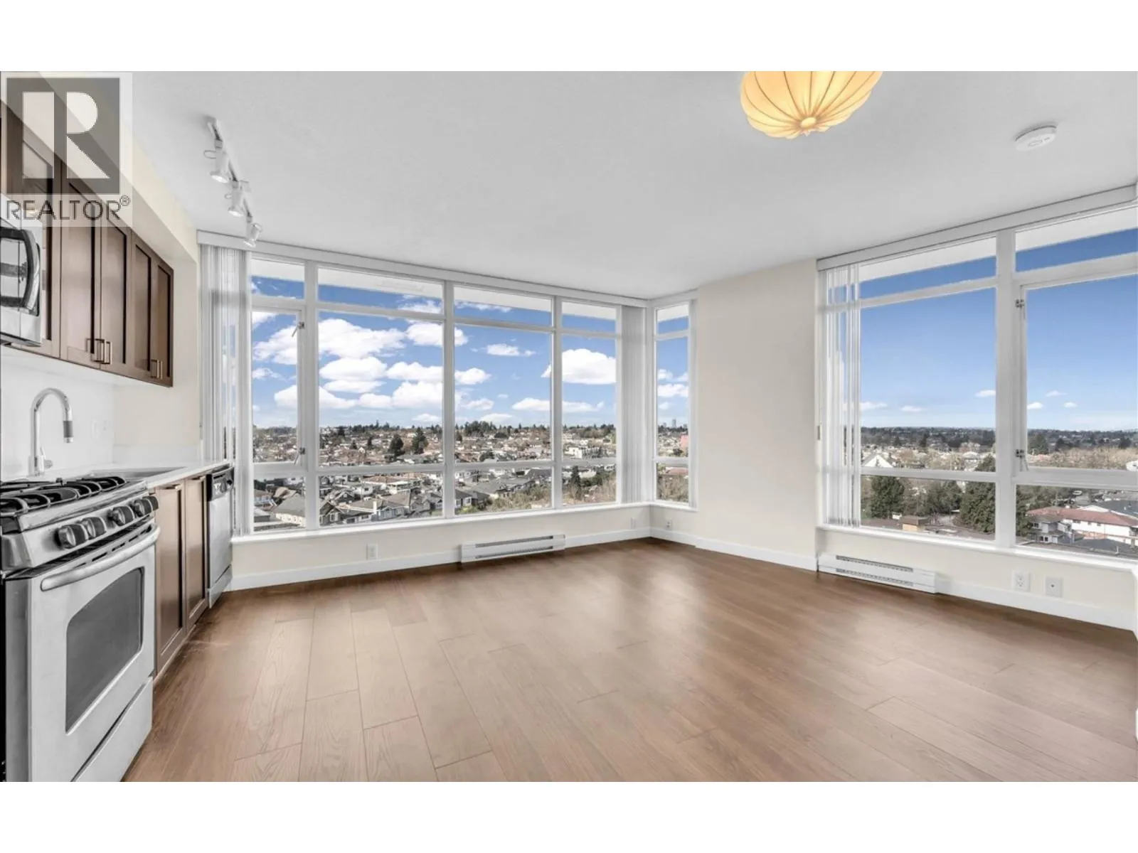 Move-in ready 1 Bed + 1 Bath corner unit with stunning North Shore Mountain & sunset views! This well-maintained home features a bright northwest exposure & floor-to-ceiling windows that fill the space with natural light. Well-maintained-Recent upgrades included new flooring & fresh paint throughout. The kitchen is equipped with quartz countertops & stainless steel appliances, including new fridge. Enjoy built-in storage in bedroom & direct balcony access. Includes in-suite laundry, parking & storage. Building features fully-equipped gym & on-site building manager. Pets welcome. Exceptionally convenient location, steps away from T&T, Shoppers, countless dining options & transit! Open House Saturday 1-3pm (id:27476)