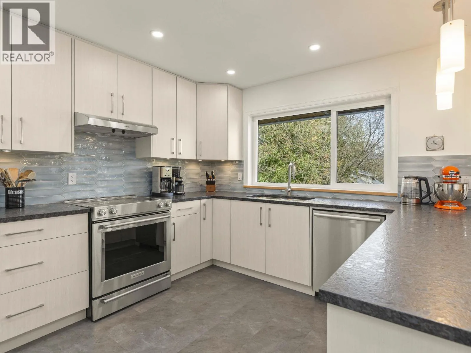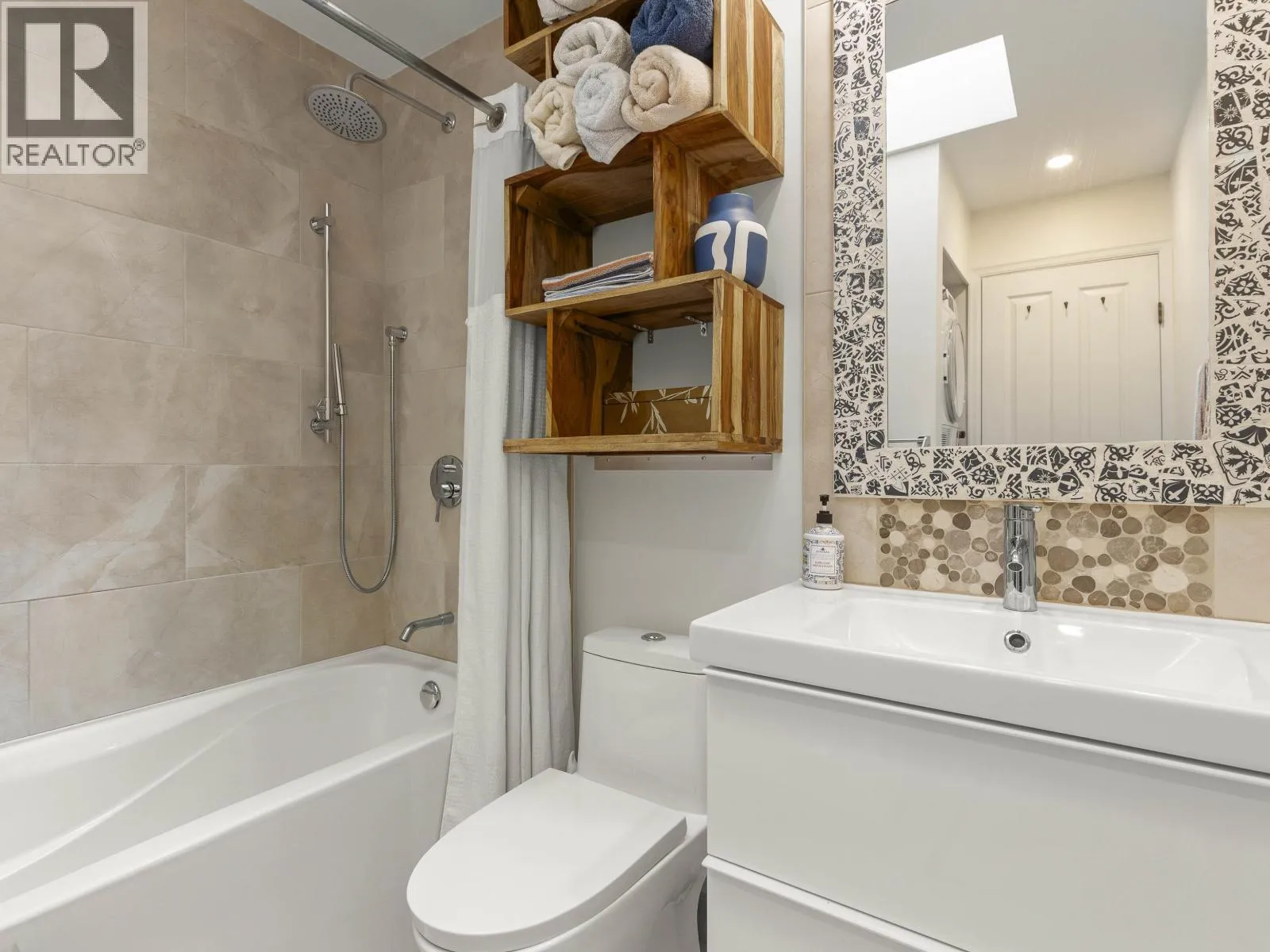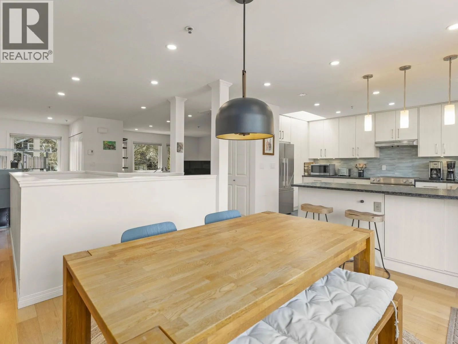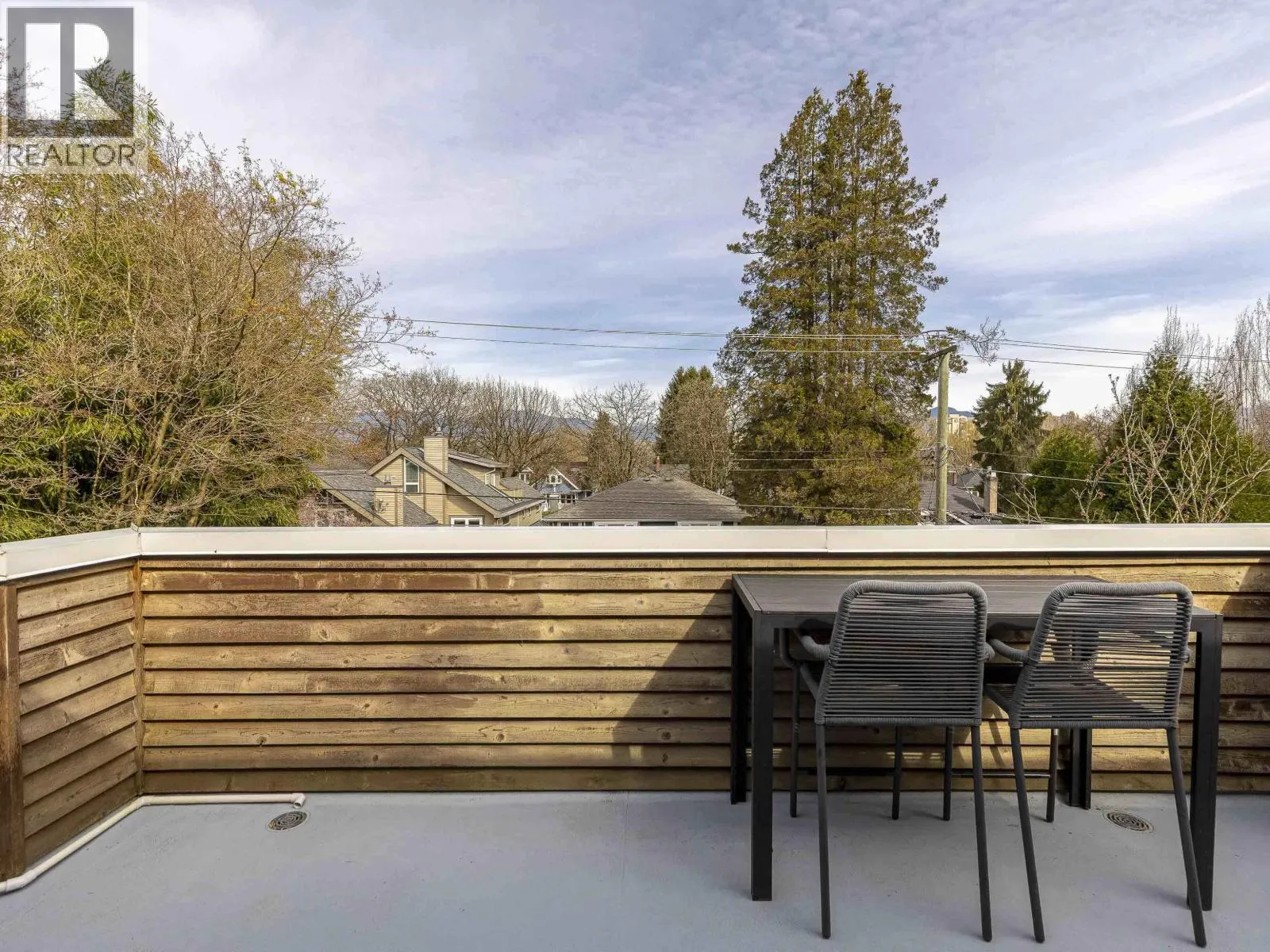Situated on a lovely tree-lined street in the heart of Kitsilano, this top-floor, spacious 2 bedroom and den townhome has been fully renovated ready for its new owners. With windows along both the north and south sides, plus three skylights, this home is drenched in natural light. The thoughtfully designed kitchen features stainless steel appliances, custom cabinetry, stylish tile backsplash a exceptional pantry & counter space. The generous living room has a cozy wood-burning fireplace, while the large dining area opens onto a private roof deck with mountain views. The principal bedroom easily fits a king-sized bed with ample closet space, along with a light-filled ensuite bathroom. Both bathrooms have been tastefully renovated & the home is finished with beautiful engineered flooring throughout. Additional features: heat pump air conditioning, new windows & a private garage. Located in one of Vancouver´s best neighbourhoods, you are just steps from all the amenities that Kitsilano is known for. (id:27476)