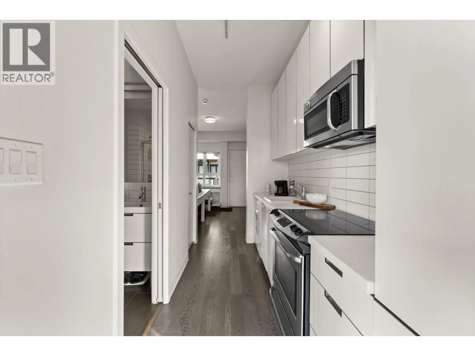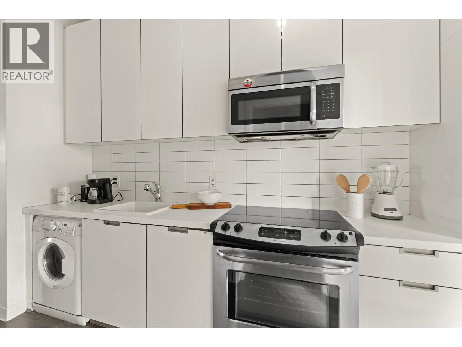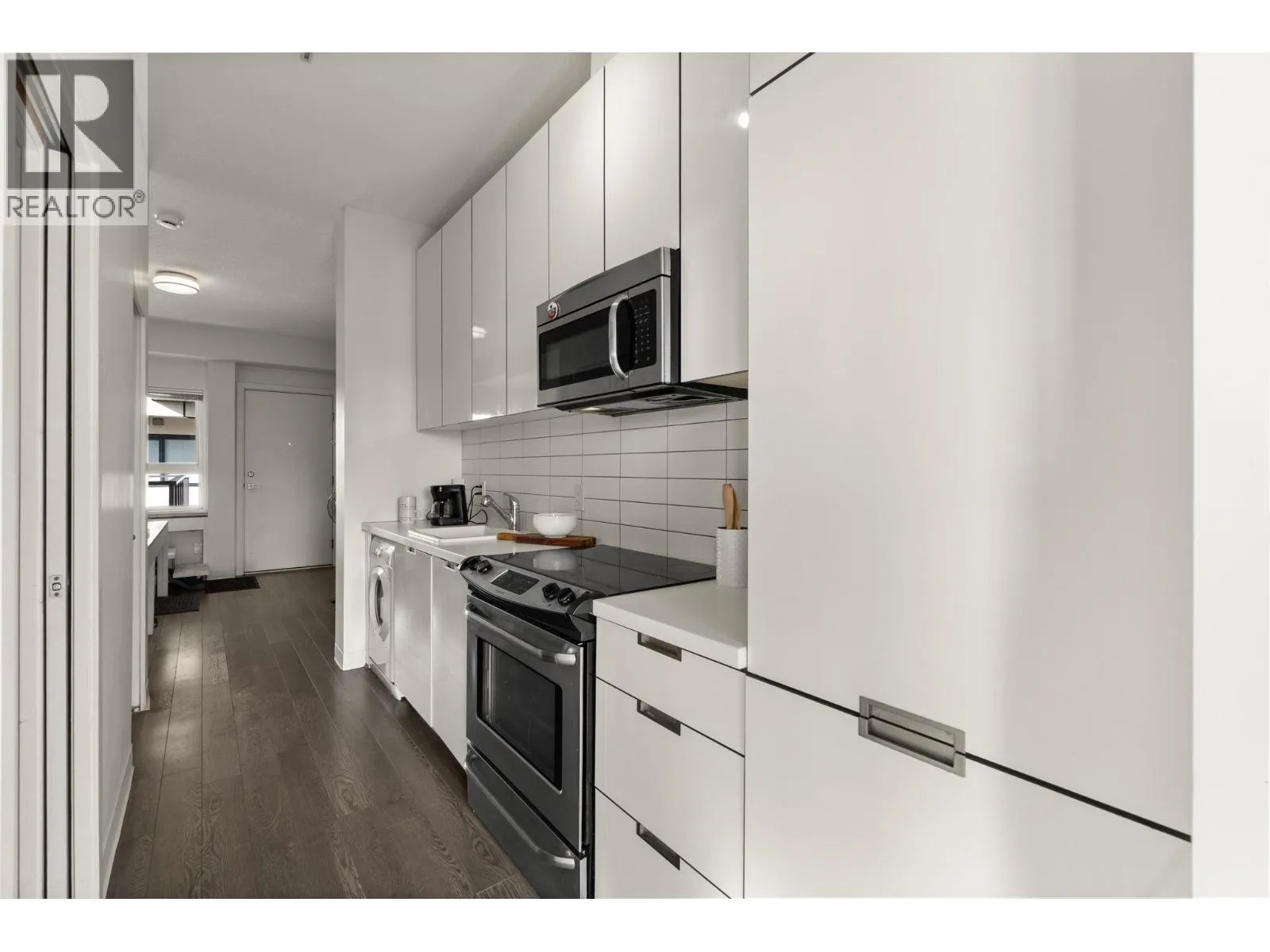 Discover unbeatable value at Sequel 138. This top-floor corner unit features an efficient layout with 9-ft ceilings, laminate floors, stainless steel appliances, and in-suite laundry. Built in 2015, this modern concrete building is pet-friendly and allows rentals-making it a versatile investment or perfect market entry. Building perks include a central courtyard with garden plots, and a bike room. With a Walk Score of 97, you're steps from the historic charm and acclaimed dining of Gastown and Chinatown. Enjoy quick walks to SFU´s Goldcorp Centre, Tinseltown, transit, and local cafes. Don't miss this rare chance to own affordable urban real estate right near the downtown core! (id:27476)