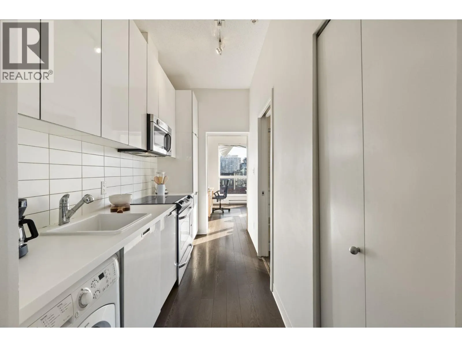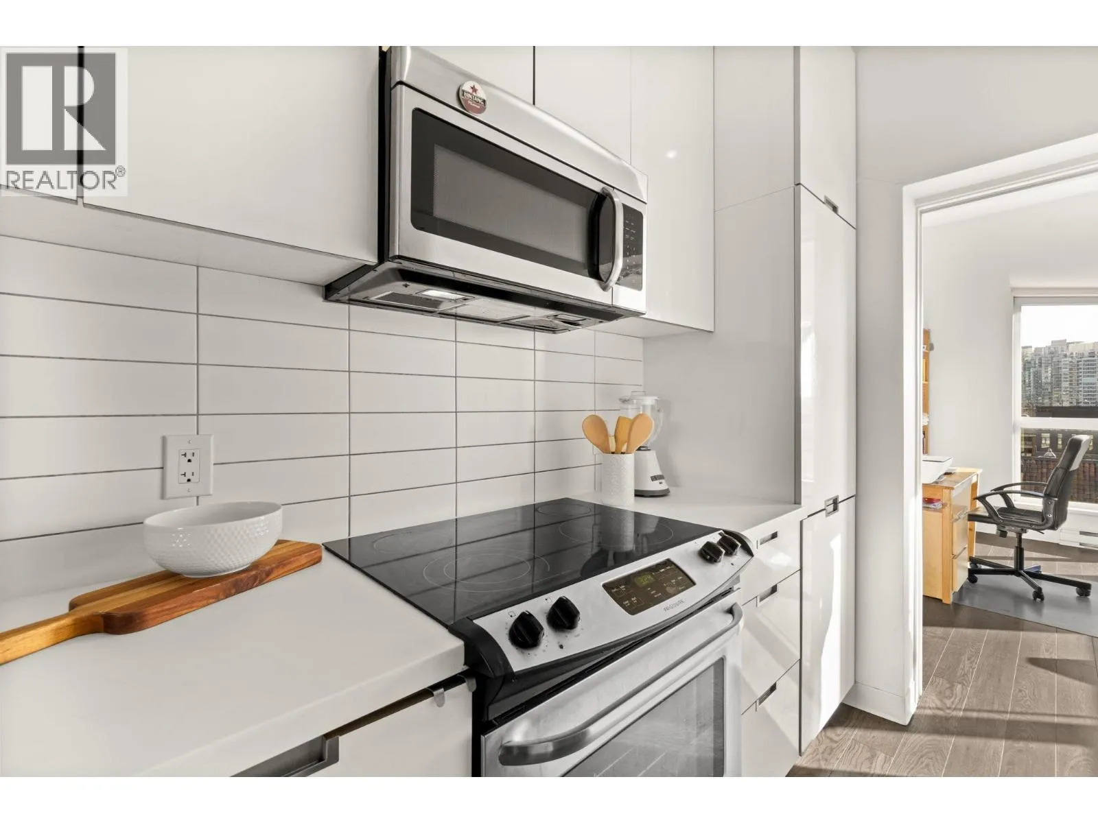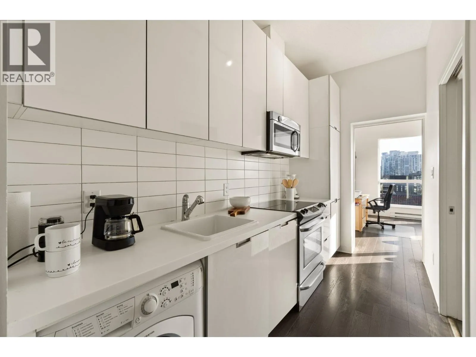 Discover unbeatable value at Sequel 138. This top-floor corner unit features an efficient layout with 9-ft ceilings, laminate floors, stainless steel appliances, and in-suite laundry. Built in 2015, this modern concrete building is pet-friendly and allows rentals-making it a versatile investment or perfect market entry. Building perks include a central courtyard with garden plots, and a bike room. With a Walk Score of 97, you're steps from the historic charm and acclaimed dining of Gastown and Chinatown. Enjoy quick walks to SFU´s Goldcorp Centre, Tinseltown, transit, and local cafes. Don't miss this rare chance to own affordable urban real estate right near the downtown core! (id:27476)