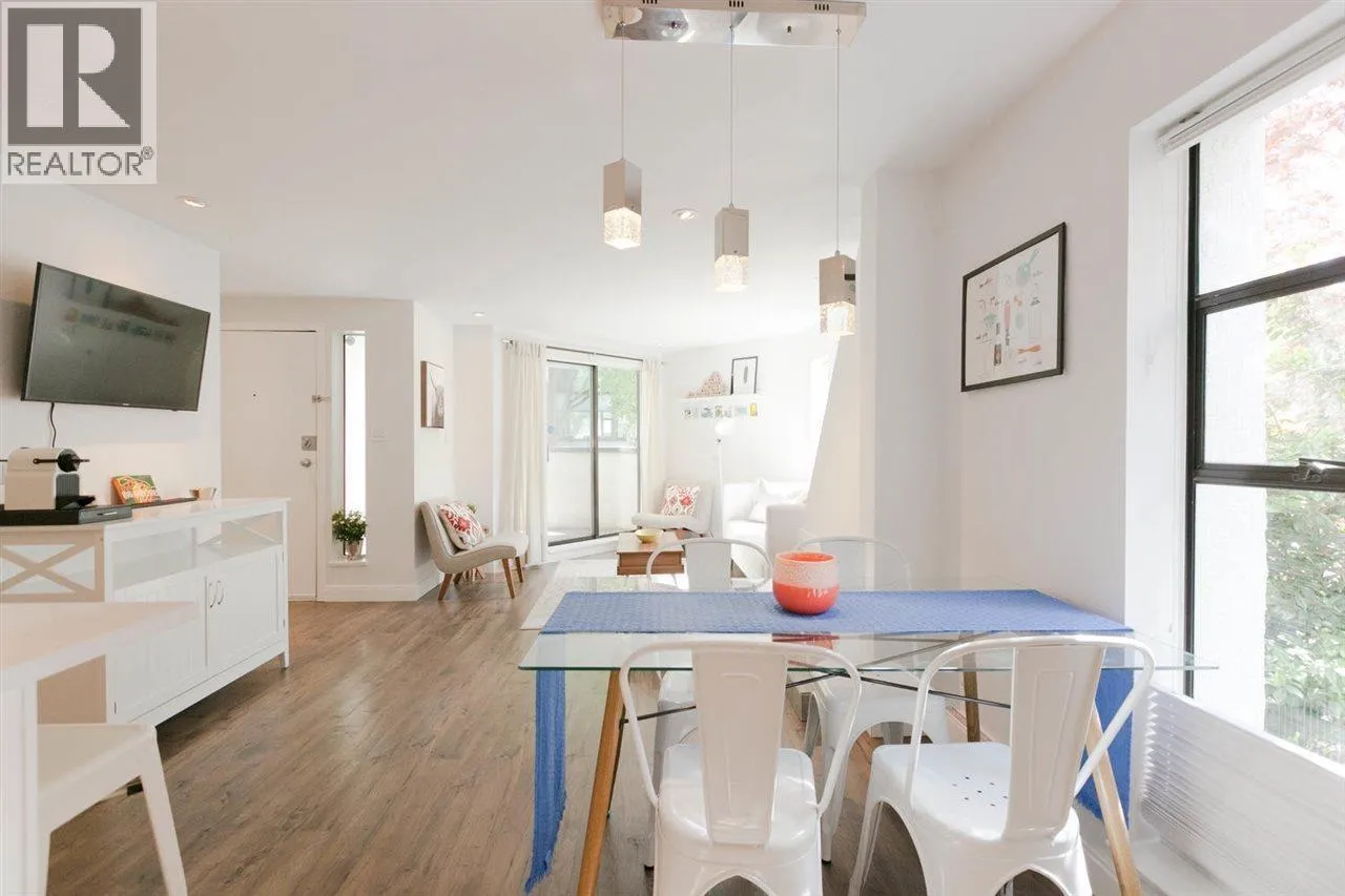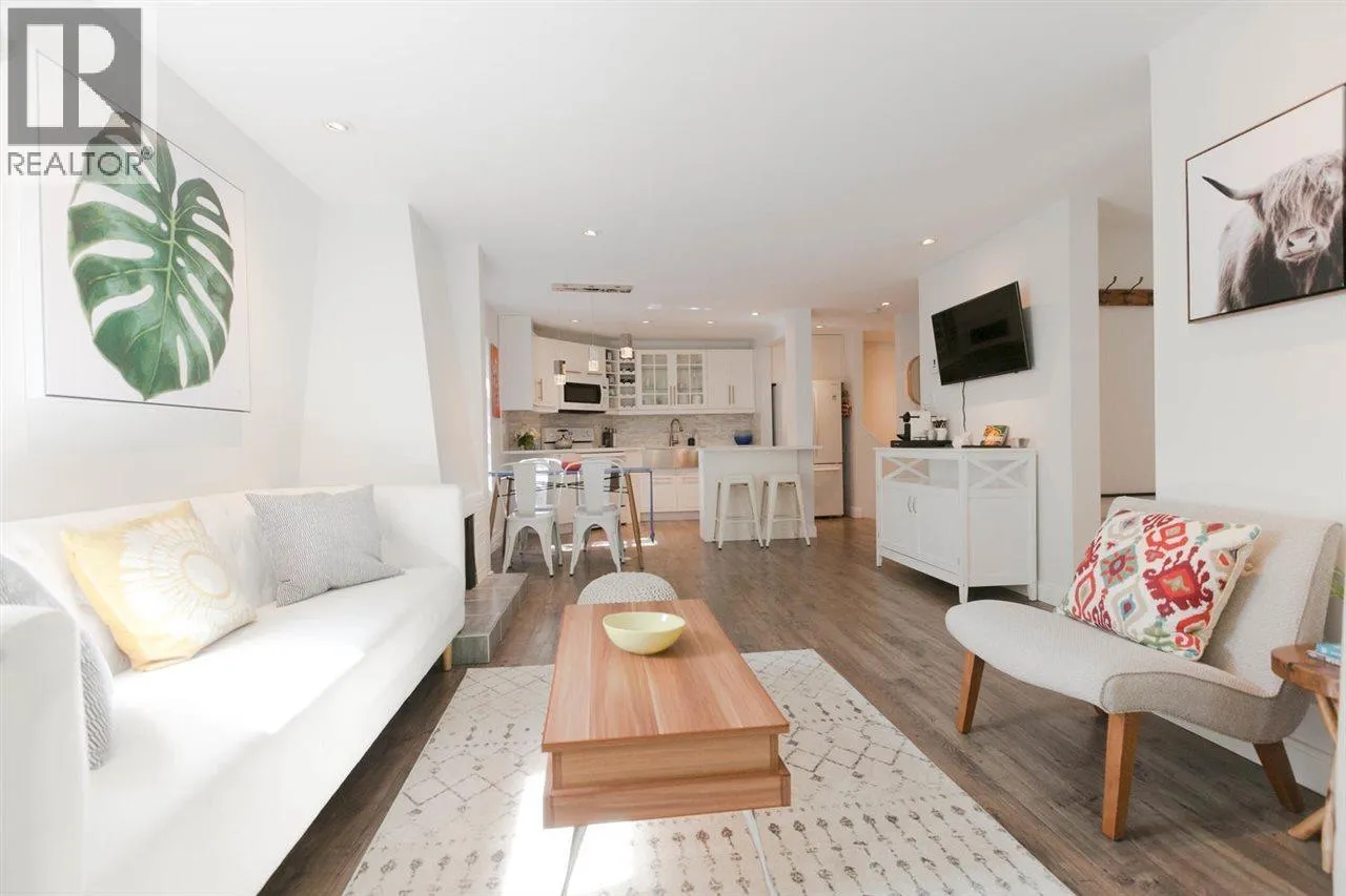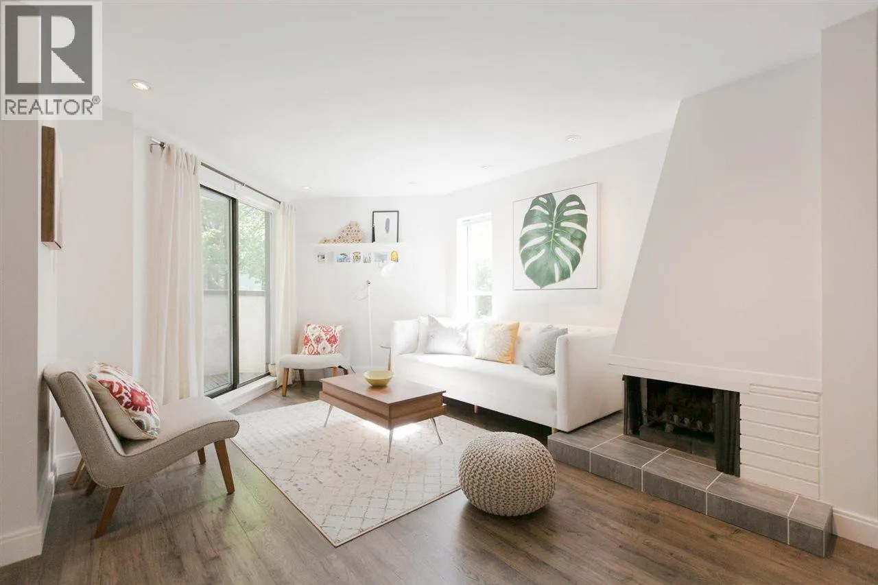 Enjoy the best of townhome living in the heart of the West End. Rarely available this bright NE corner open concept 2 bedroom, 2 bath 1172sqft home has been meticulously renovated and features the best of indoor outdoor living with private garden, terrace off the living room, private entry, in suite laundry, oversized bedrooms and an absolutely gorgeous mid century wood burning fireplace. Perfectly nestled on a quiet tree lined street, with Davie and Robson Streets at your doorstep, this sought after boutique building has even received offers from potential developers and enjoys a proactive strata. Pet and Rental friendly and includes 1 secured parking, plus ample street parking. Don't miss out on this gem.Open house Saturday , April 18th, 2-4pm. (id:27476)