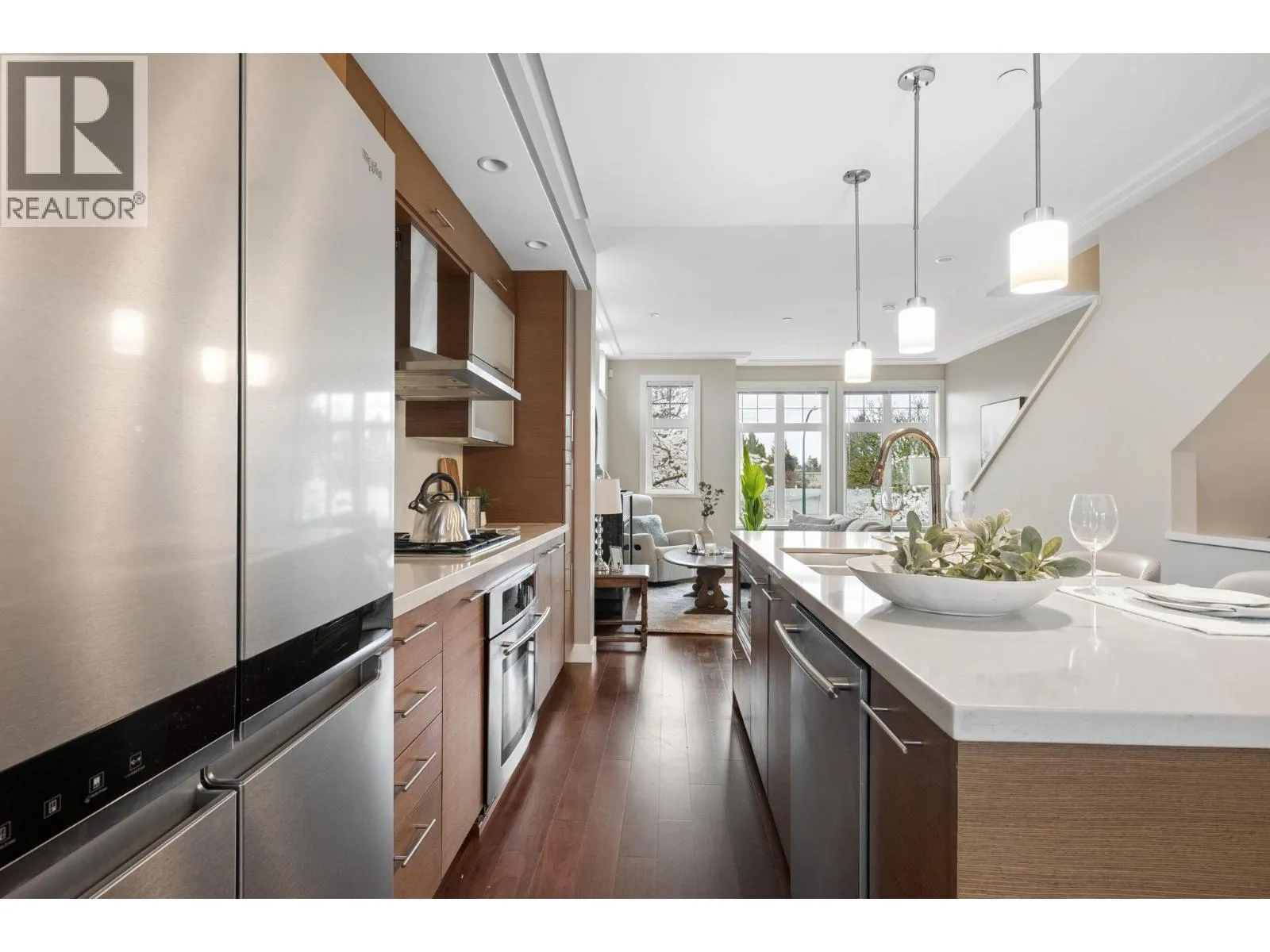 In the highly-coveted Cambie Corridor, a remarkable 2-bed, 2.5-bath + den end-unit townhouse awaits. This elegant residence is a testament to timeless design, boasting premium finishes and custom closets. With 9´ ceilings on the main level and windows on three sides, the home is bathed in natural light, creating a warm and inviting ambiance. Nestled on a tree-lined street near Oakridge Park, this property is perfectly positioned across from Ãcole Rose-des-Vents and within the esteemed Dr. Annie B. Jamieson & Eric Hamber catchments. Just a leisurely stroll away from Queen Elizabeth Park, Canada Line, shopping, and dining, this exceptional home offers a rare combination of quality, prime location, and everyday convenience. (id:27476)