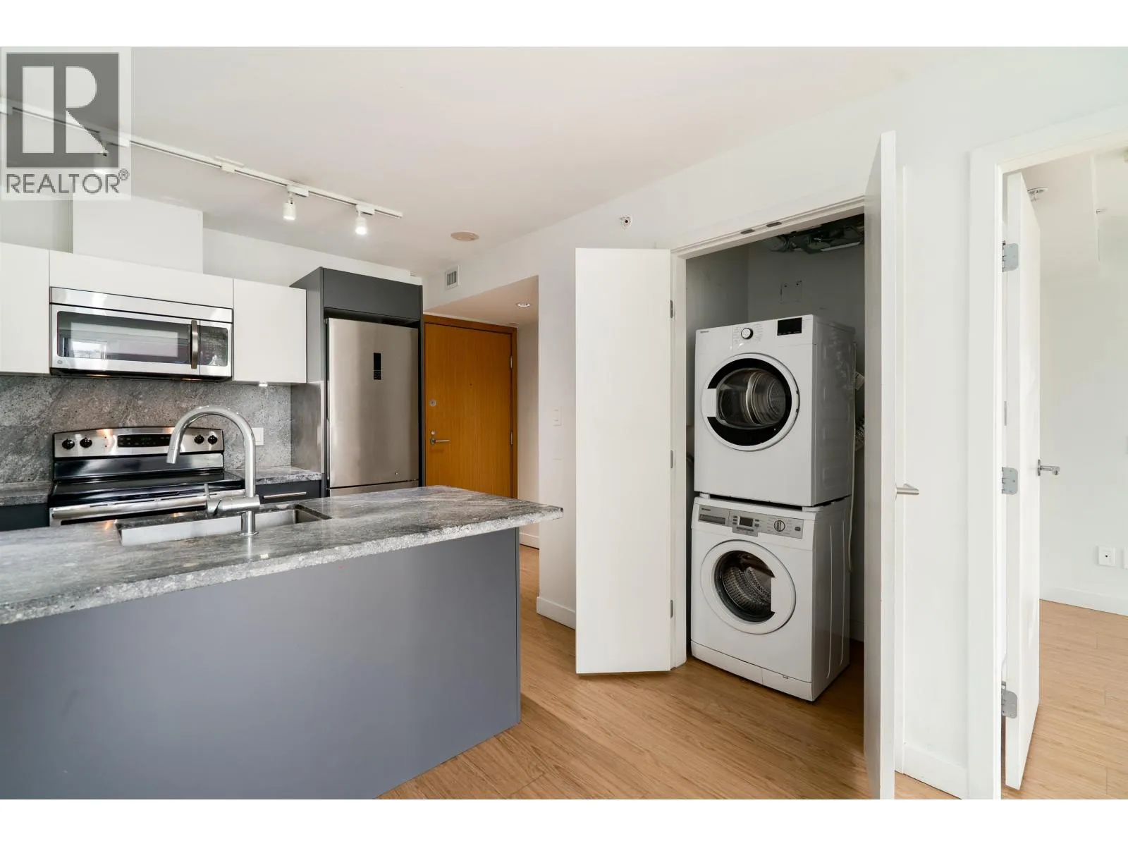 Experience elevated urban living in the heart of Chinatown at 188 Keefer Street, a concrete residence by Westbank. This bright east-facing one bedroom plus den offers a smart, functional layout with an open living and dining area designed for effortless entertaining. The sleek kitchen features stainless steel appliances and granite countertops, while the windowed den is ideal for a stylish work-from-home setup. Geothermal heat, and hot water are included in the strata fees. Home offers in-suite laundry and is accompanied by two storage lockers.Residents enjoy a rooftop BBQ and garden, lounge, gym, and play area. Steps to transit, SkyTrain, Costco, T&T, and some of the city´s best dining and culture. (id:27476)