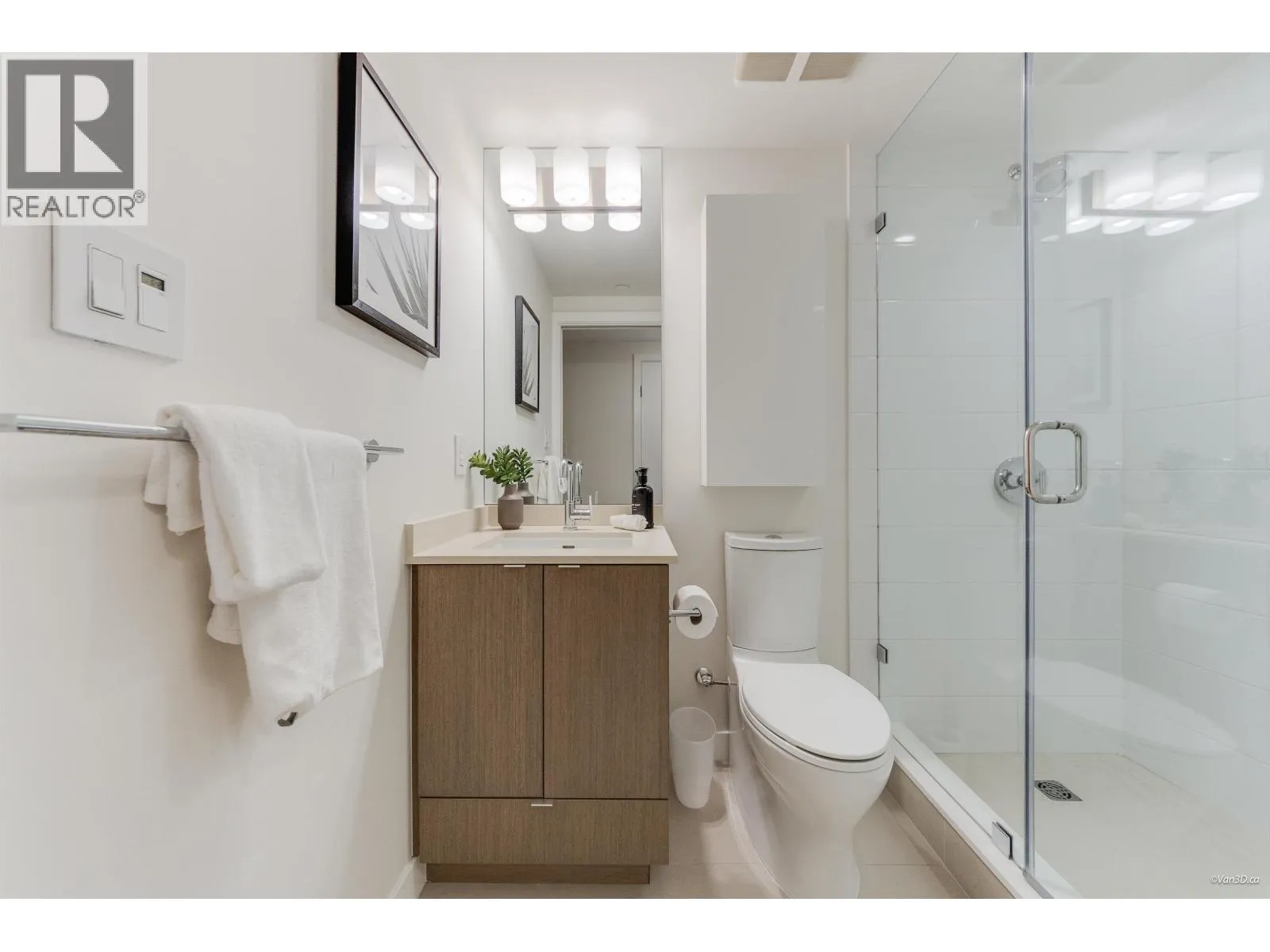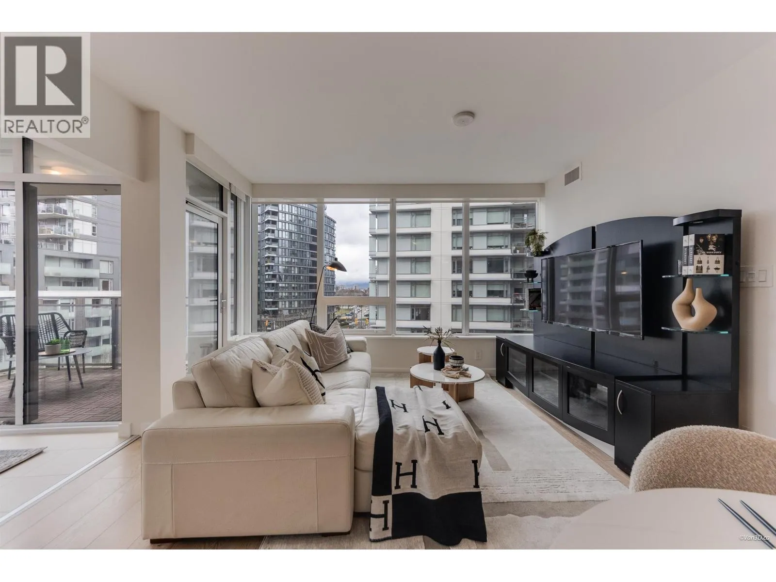 Stunning NW corner 2 bed + den at Block 100 with city and mountain views. This beautifully maintained home features over-height ceilings, central A/C and heating, and radiant NuHeat floors in the primary ensuite. Sleek built-in shower niches and elegant laminate flooring throughout. Chef-inspired kitchen with island, concealed spice cabinetry, full-size SS appliances, 5-burner gas cooktop, and in-suite storage/laundry. Bright solarium offers flexible space for a large home office. Amenities include concierge, full fitness centre, multi-purpose room, bike storage, and shared EV charging. Steps to the Seawall and SkyTrain. Includes 1 parking and 1 large locker. Easy to show. Call today! OPEN HOUSE APR 18, SAT 2-4pm (id:27476)