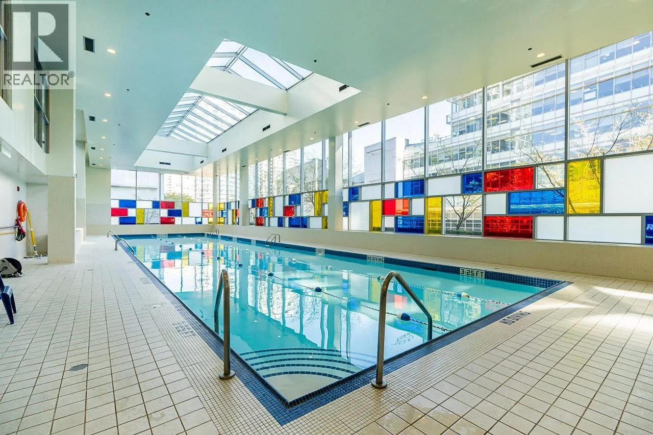Welcome to this stunning SW-facing 2 bed/2 bath & den home at Spectrum 1, refreshed with wide-plank flooring and beautiful paint tone- it is a gorgeous unit. This 893 sqft residence features floor-to-ceiling windows with expansive city views from all main living areas. The well-designed layout separates the primary bedroom with ensuite from the second bedroom for added privacy. An open-concept kitchen, living, and dining area is ideal for entertaining. Highlights include a generous in-suite storage/flex space and solarium perfect for a home office, a BBQ-friendly patio, &1 parking stall. Enjoy resort-style amenities including an indoor pool, fitness centre, party room, outdoor terrace, bike room, and 24-hour concierge. Steps to dining, transit, Costco, the seawall and entertainment. (id:27476)