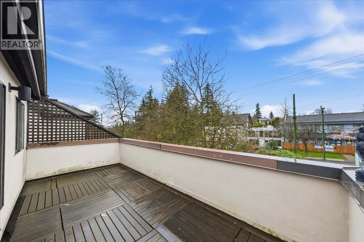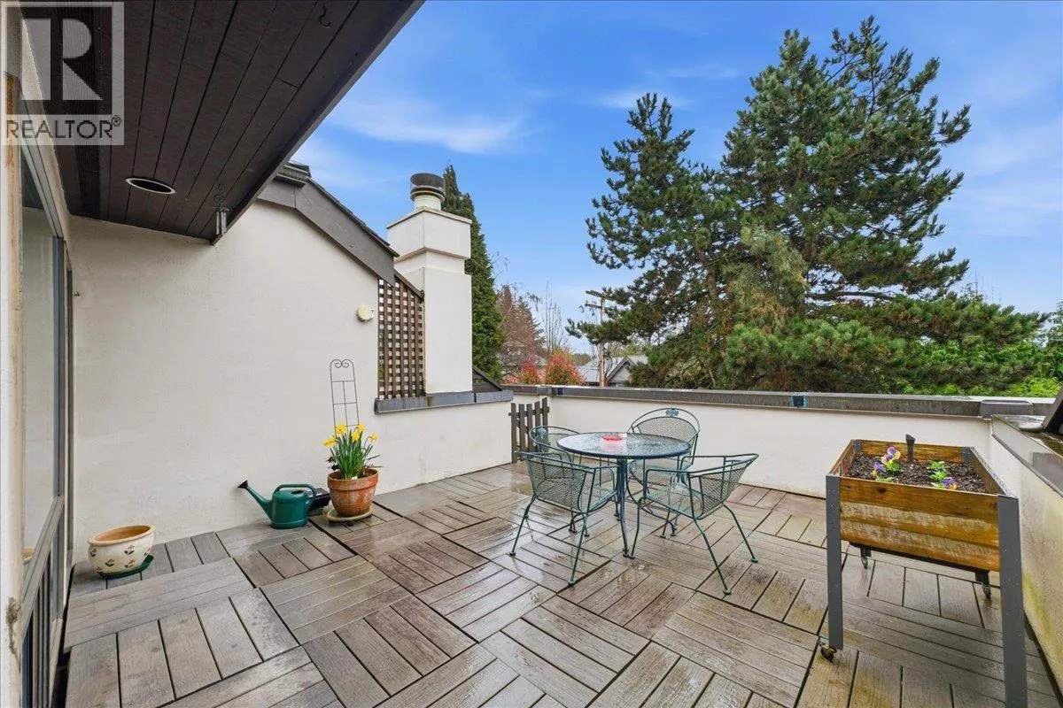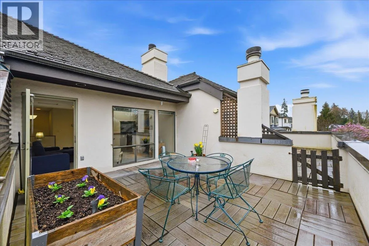 Bring your decorating ideas to this sun-filled two-bedroom plus den townhome situated in a highly convenient Kerrisdale location. This unique residence features a reverse floor plan, with an inviting bright, skylit living room, dining area, kitchen & powder room, creating an open and airy living space on the upper level. The first level offers two bedrooms, a den/solarium & a full bathroom. Enjoy beautiful southern views from the expansive patio off the living room. Ideally located within walking distance to the shops and amenities of Kerrisdale Village. Convenient access to public transit, including the express bus to UBC right out of the front door! Close proximity to Kerrisdale Elementary School and Crofton House School. Includes 1 parking stall & 1 storage locker. Open House April 18, 2-3pm. (id:27476)