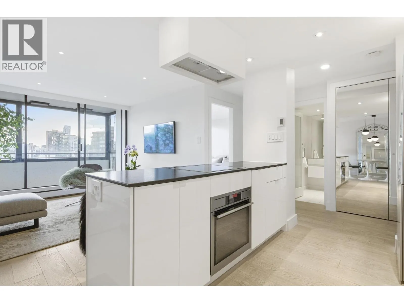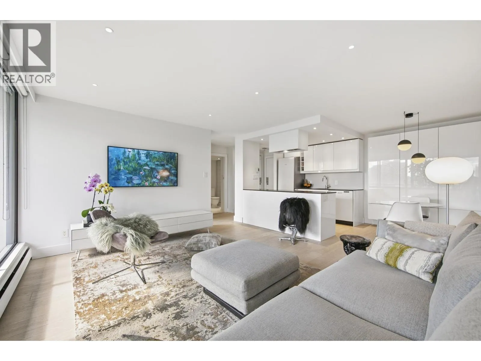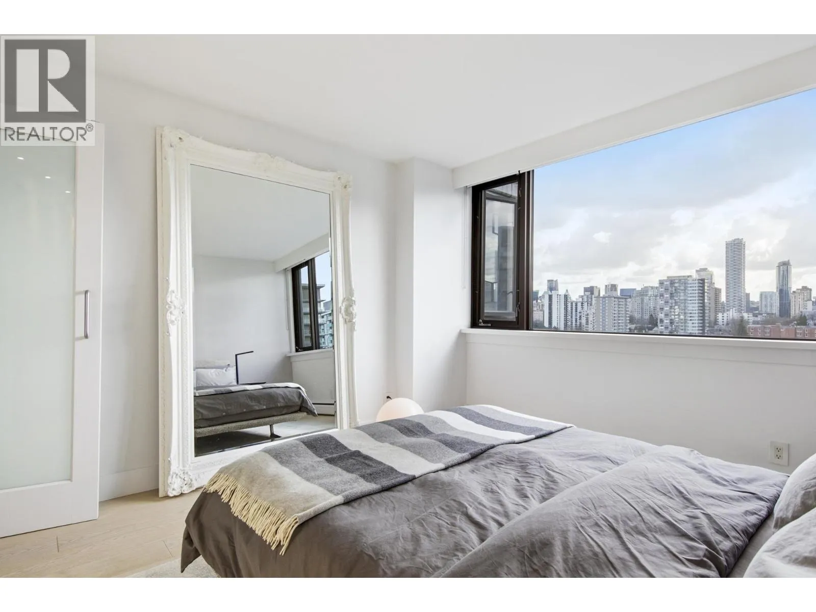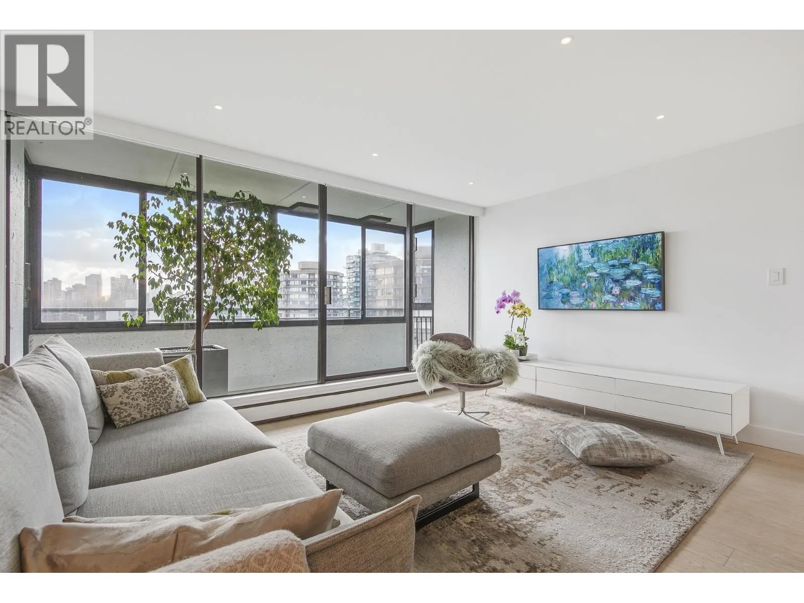 Bright + airy 1-bedroom + solarium on the 18th floor of sought-after Stratford Place in the West End. Thoughtfully designed + renovated in 2022 by Peter Wilds Design with exceptional attention to detail. Engineered white oak flooring throughout, custom-designed interiors, Duravit fixtures + Flos lighting, to mention a few details. Enjoy mountain + peekaboo ocean views from the solarium. Beautiful private gardens, outdoor pool+ sauna plus a meticulously maintained building. Enjoy North America´s largest urban park, Stanley Park + ocean beaches just outside your door. A building where community truly comes to life. Pets: Two cats or one dog. (id:27476)