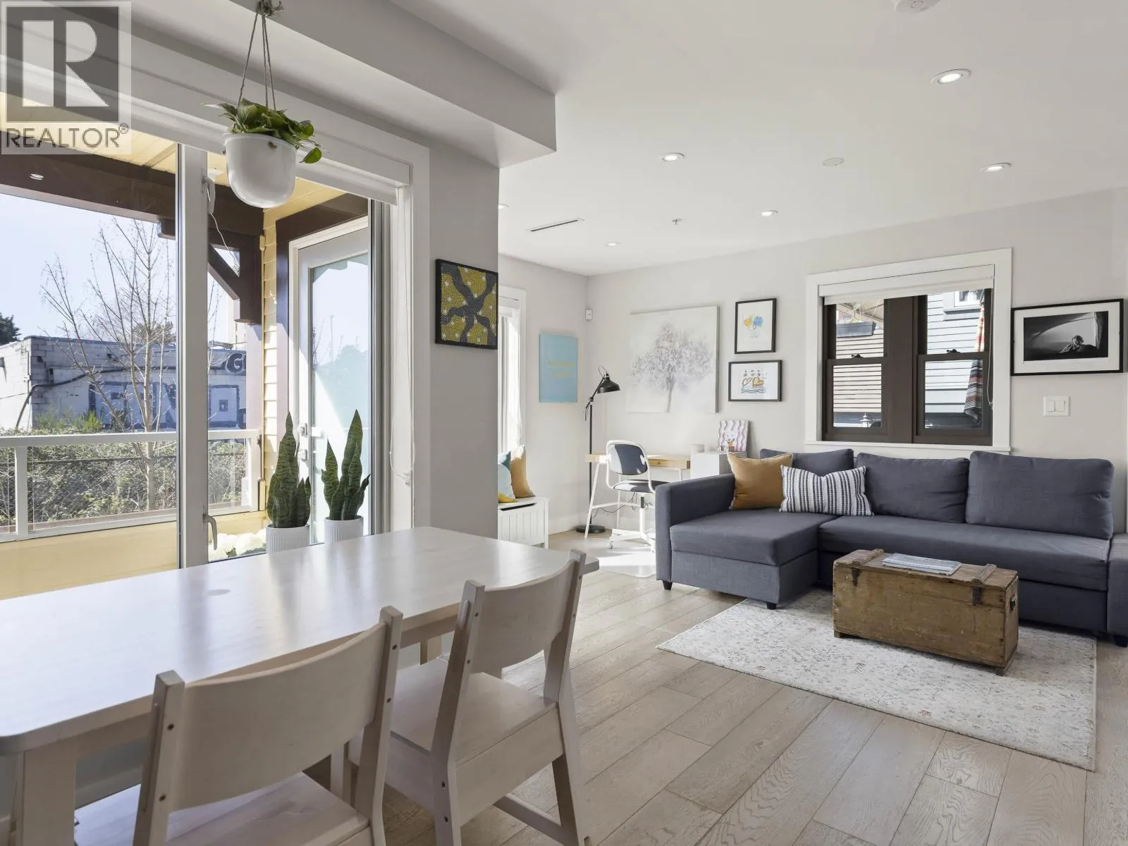 Keefer Station in Strathcona. Situated in a cul-de-sac, this bright 3-bed, 1/2-bath duplex offers a smart layout on 3 levels. Open main floor with HW floors, S/S appliances & a sinkside kitchen window. Flexible plan in the living room with deck access. Upper floor has 2 bdrms with skylights & a full bath. The primary suite below provides privacy and separation. Enjoy a NW-facing patio perfect for evening sunsets & outdoor living. Part of a 5-unit strata, this home is filled with natural light and designed for comfortable & efficient living. Secure open parking pad with easy access to the unit. Bike storage & crawl space for your outdoor equipment. Pet owners will enjoy this style of home. A blend of community and thoughtful design in one of the city´s most vibrant neighbourhoods. Schools: Admiral Seymour Elem, Britannia Community Elem, Britannia Secondary. (id:27476)