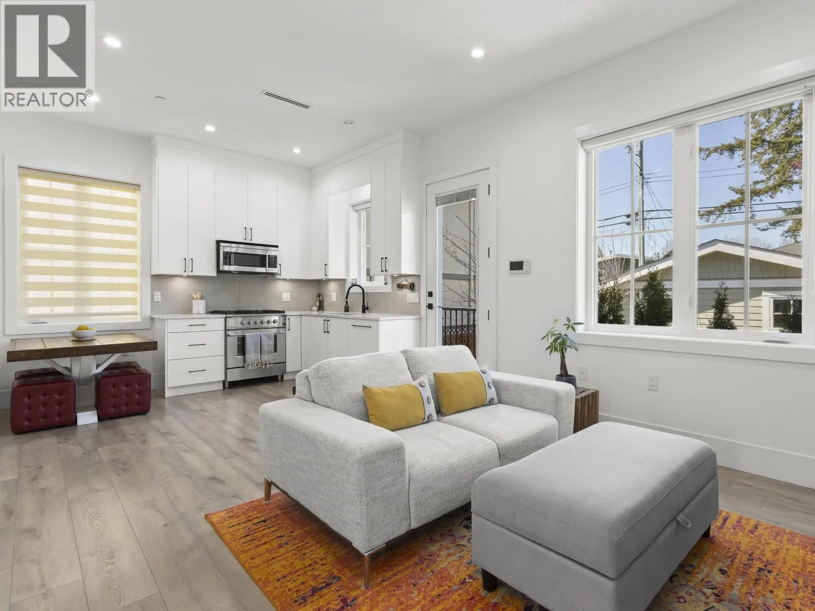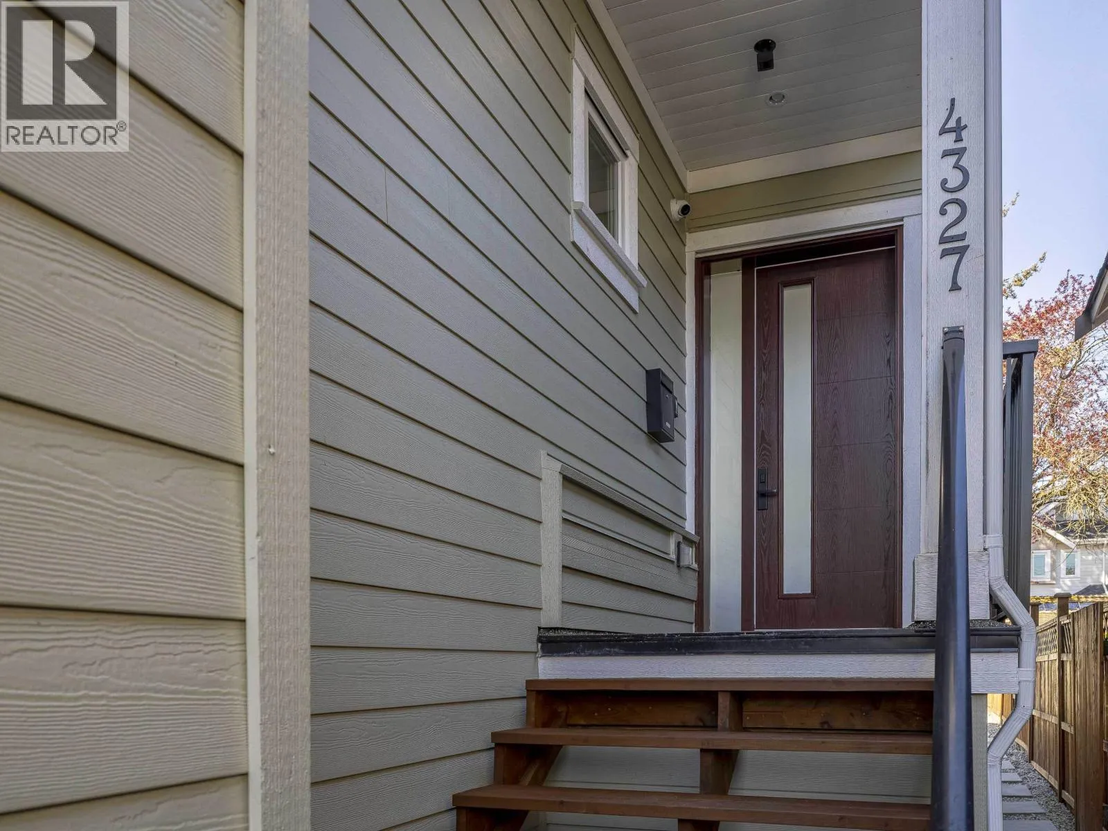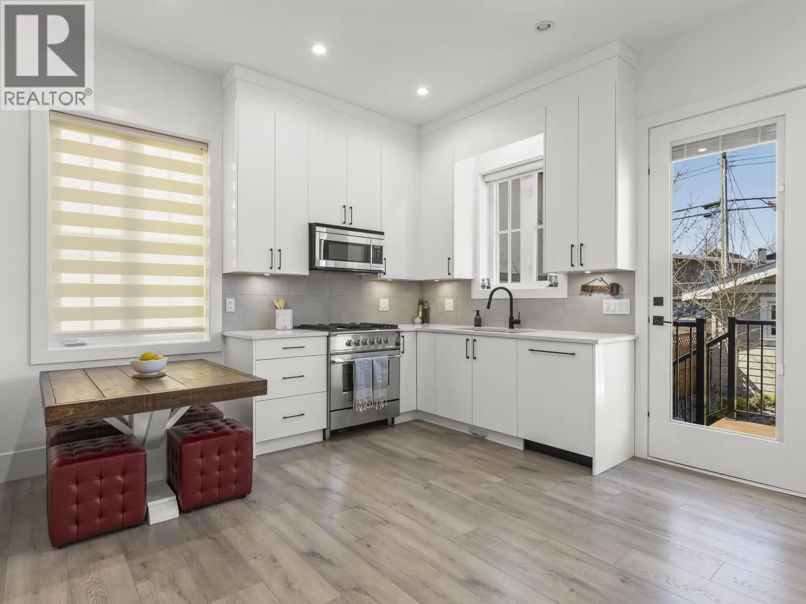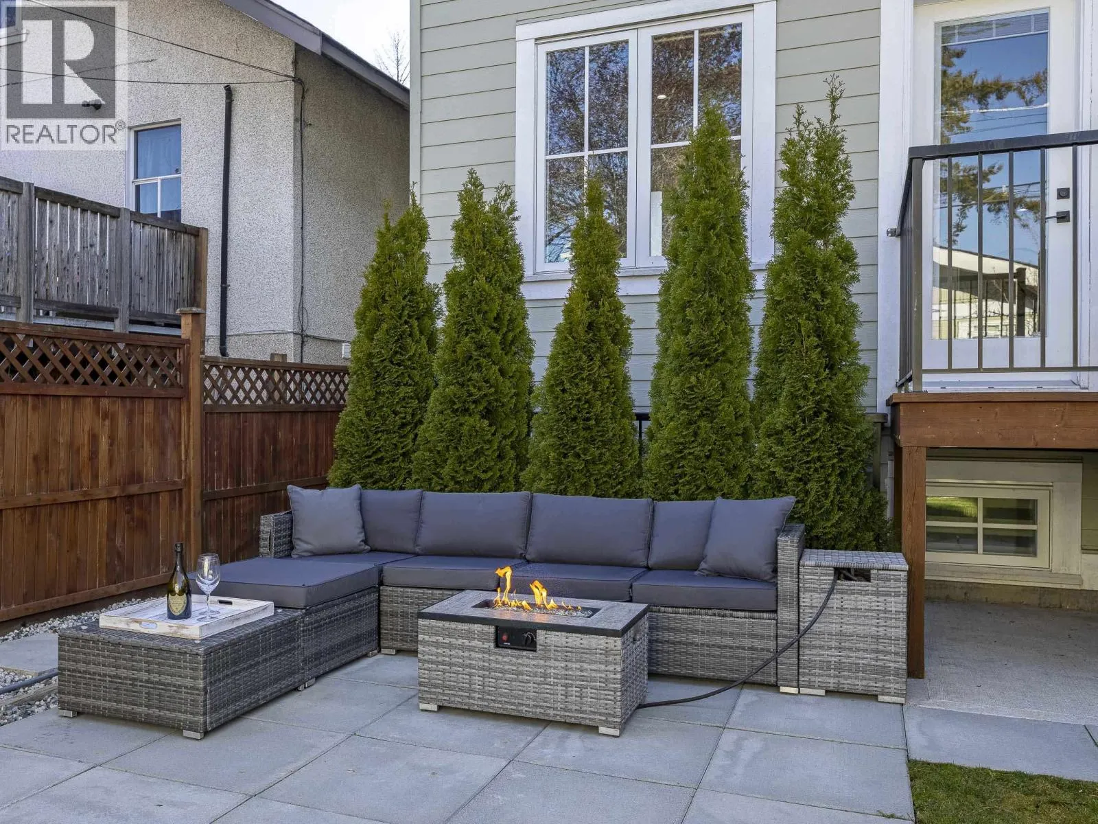 Welcome to this sparkling, 4-year-old half-duplex in the heart of the highly sought-after Cedar Cottage neighborhood. Designed for maximum light and luxury, this incredibly bright residence offers a perfect balance of contemporary style and family comfort. The main floor features airy ten-foot ceilings and a chef-inspired kitchen with sleek cabinetry and a premium Fisher & Paykel appliance package with a fully integrated fridge and dishwasher for a seamless look. The layout spans three levels to maximize privacy. The upper floor features two well-appointed bedrooms and a versatile den. The lower level offers a third bedroom or recreation room with a private ensuite, plus a massive 300-sq-ft crawl space for storage. Experience West Coast living in your sunny, west-facing backyard, complete with a patio and private garage. Upgraded with air-conditioning, this home is close to parks, transit, and diverse local eateries. This property offers the perfect blend of modern luxury and community charm. (id:27476)