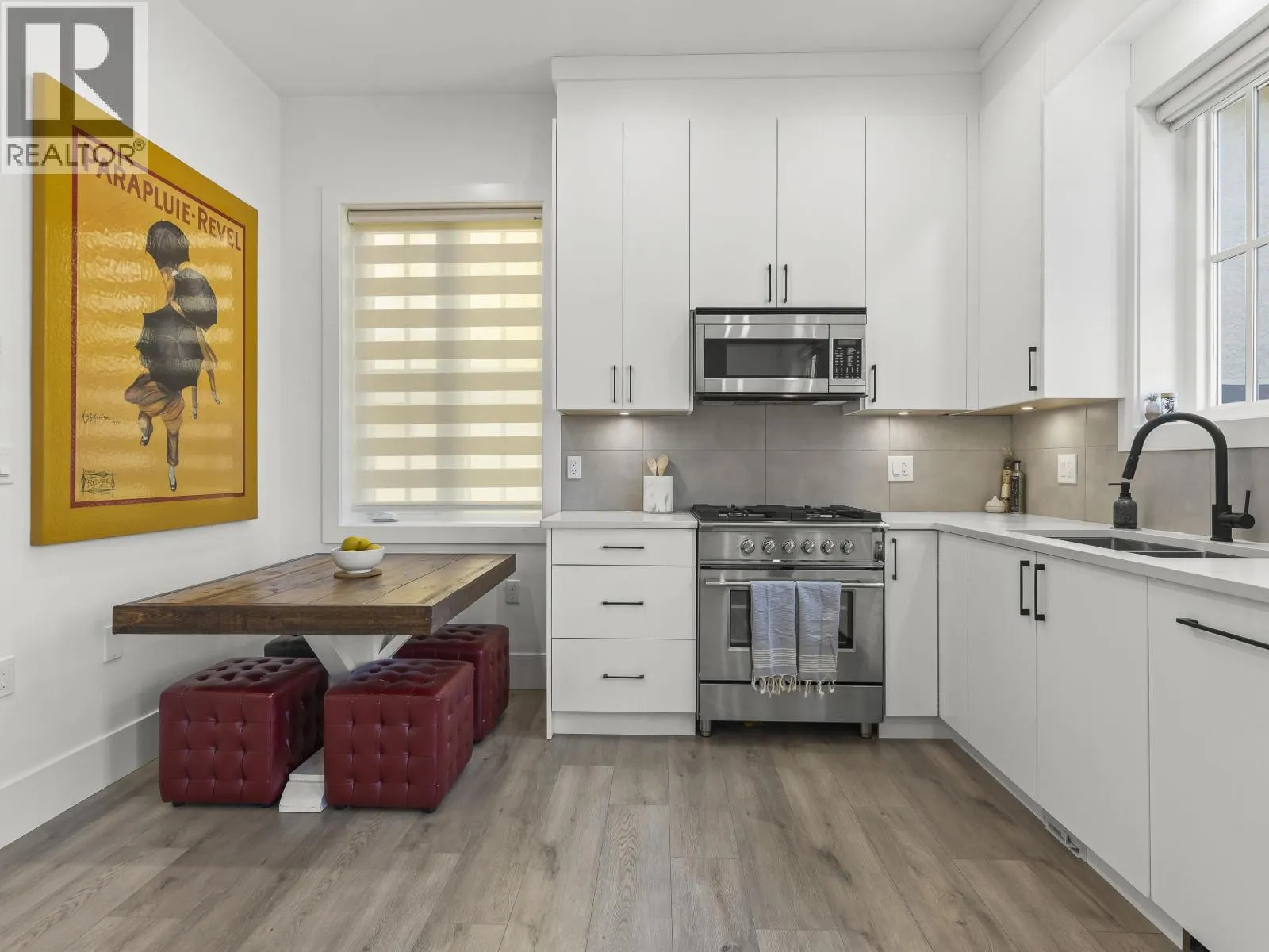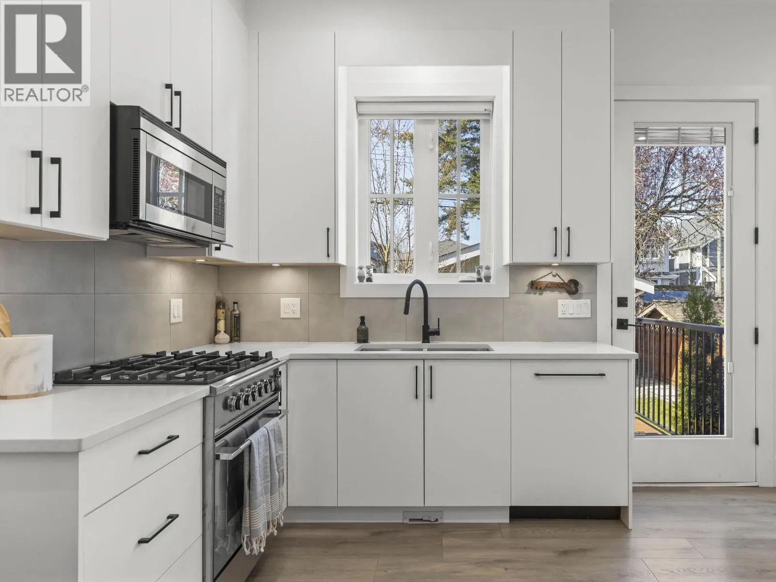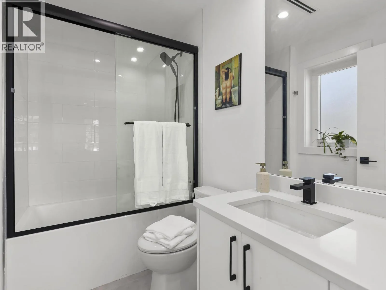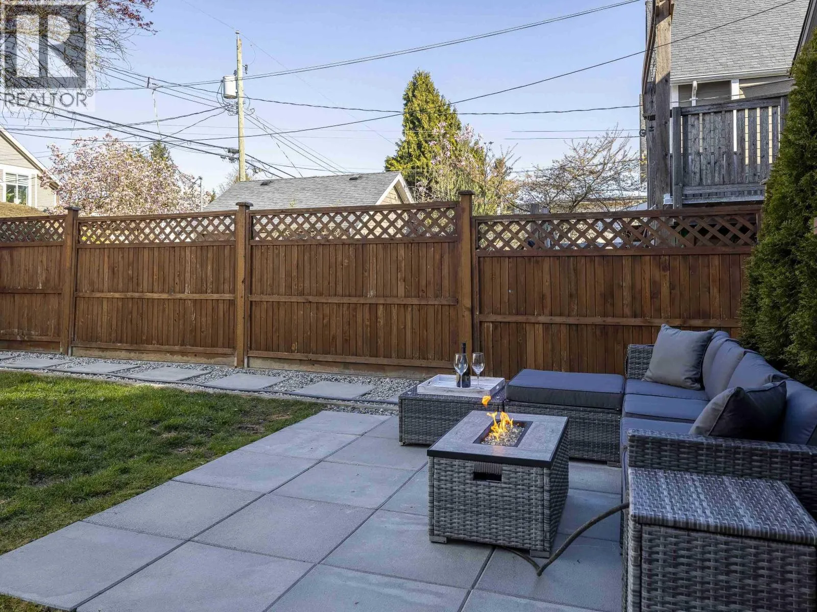 Welcome to this sparkling, 4-year-old half-duplex in the heart of the highly sought-after Cedar Cottage neighborhood. Designed for maximum light and luxury, this incredibly bright residence offers a perfect balance of contemporary style and family comfort. The main floor features airy ten-foot ceilings and a chef-inspired kitchen with sleek cabinetry and a premium Fisher & Paykel appliance package with a fully integrated fridge and dishwasher for a seamless look. The layout spans three levels to maximize privacy. The upper floor features two well-appointed bedrooms and a versatile den. The lower level offers a third bedroom or recreation room with a private ensuite, plus a massive 300-sq-ft crawl space for storage. Experience West Coast living in your sunny, west-facing backyard, complete with a patio and private garage. Upgraded with air-conditioning, this home is close to parks, transit, and diverse local eateries. This property offers the perfect blend of modern luxury and community charm. (id:27476)