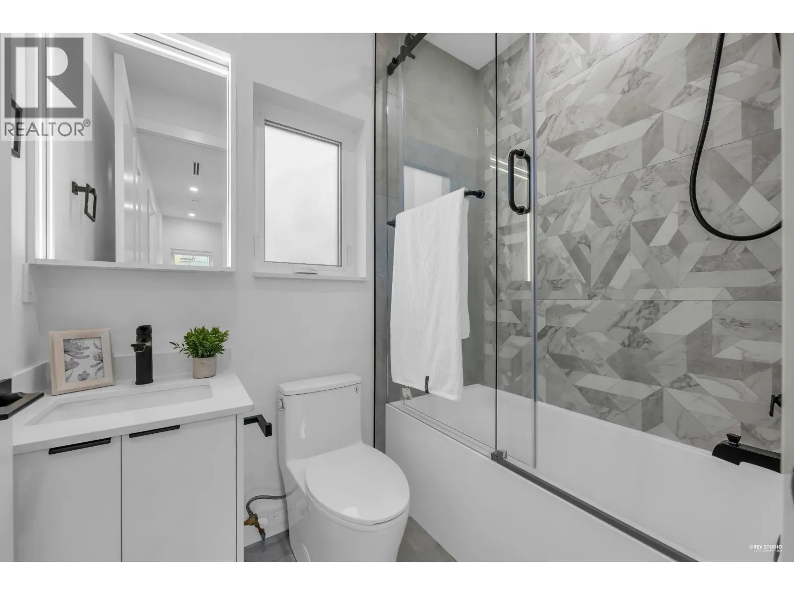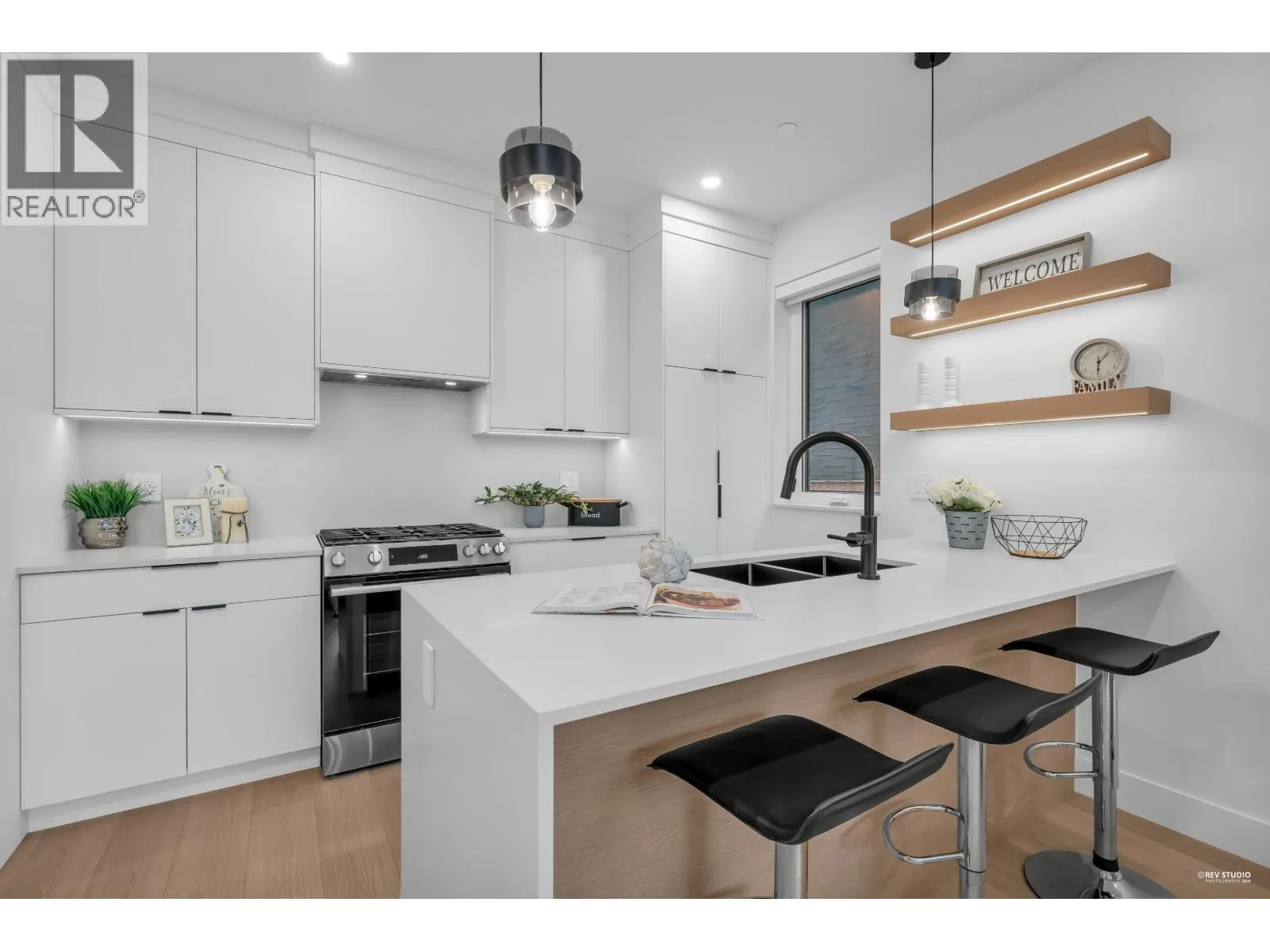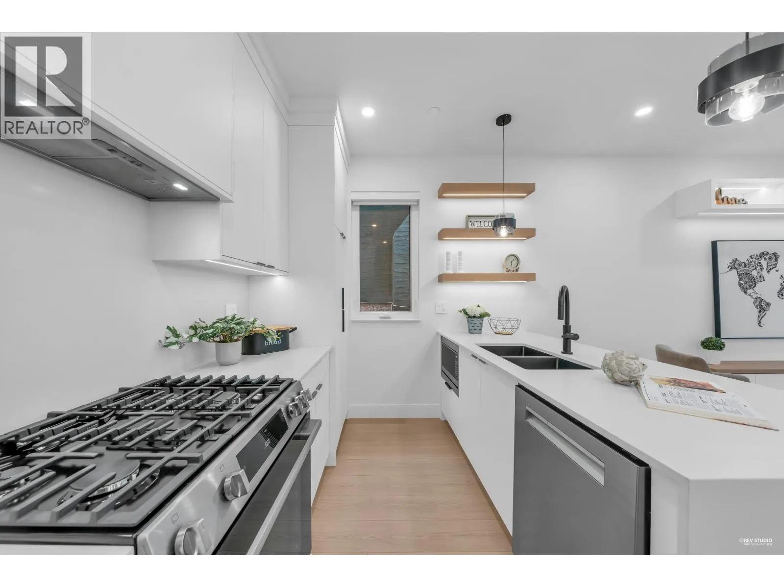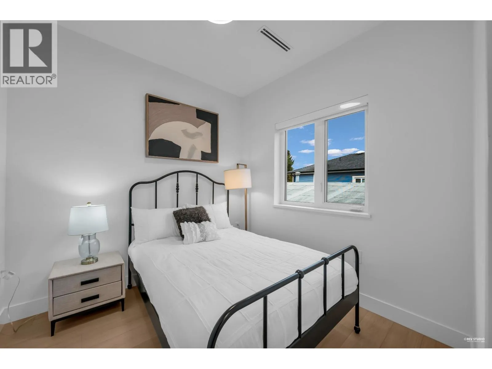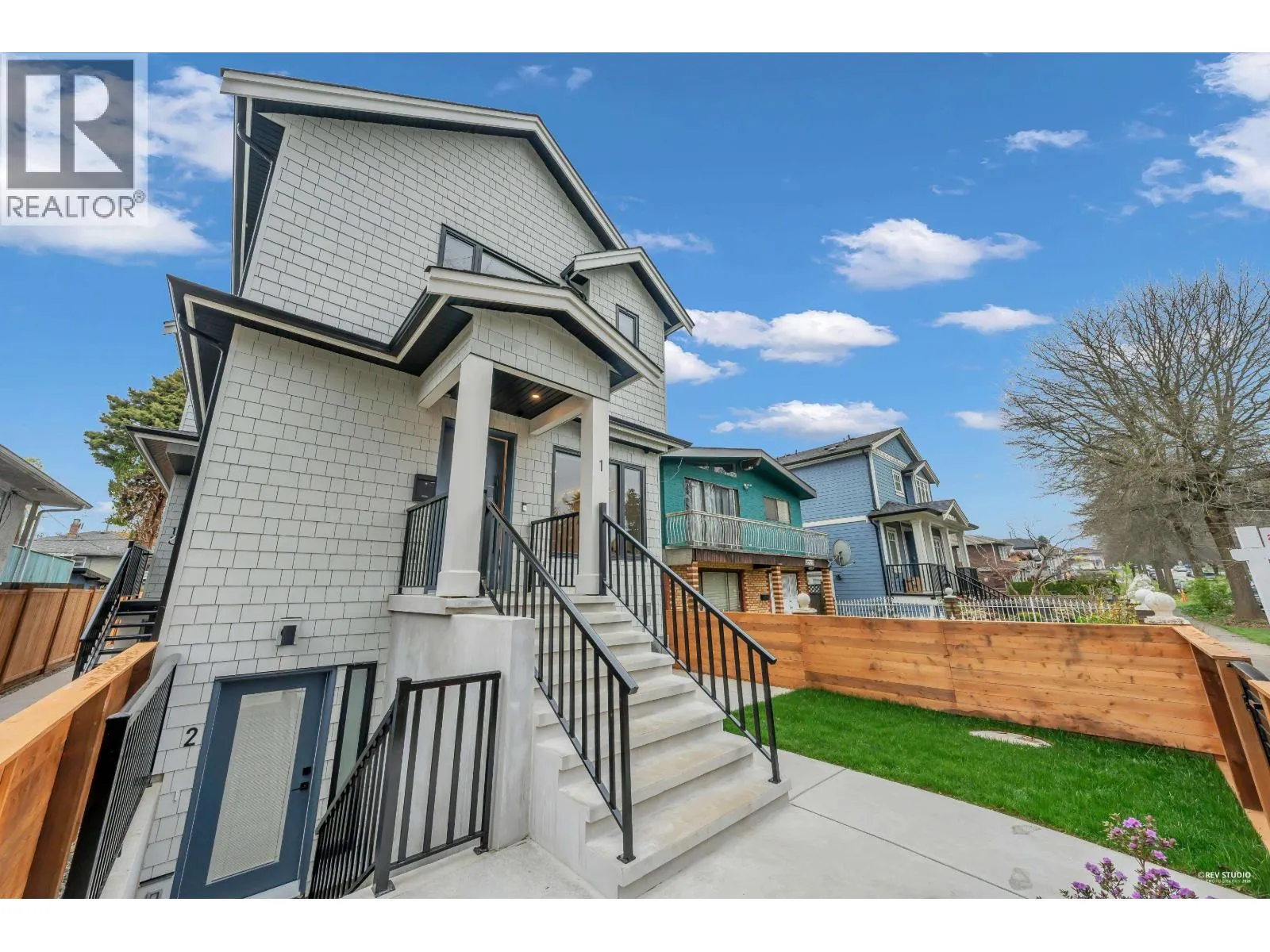 Brand-new southwest-facing FRONT duplex offering 1,548 sqft of modern living w/a functional layout and quality craftsmanship. This well-built home features 3 spacious bdrms upstairs, 2.5 baths, and a legal 2-bdrm basement suite-perfect as a mortgage helper or for extended family. The open-concept main floor boasts a bright living and dining area that flows seamlessly into a stylish kitchen w/top-brand S/S appliances. All bedrooms are conveniently located on the same level. Enjoy year-round comfort with a heat pump, HVAC and air conditioning. Includes single garage with EV and a front fenced yard-great for kids or pets. Conveniently located just minutes to 29th Ave SkyTrain, parks, schools, and the vibrant shops, cafes, and restaurants along Kingsway. OH Apr. 18th 2-3pm & Apr. 19 2-4pm (id:27476)