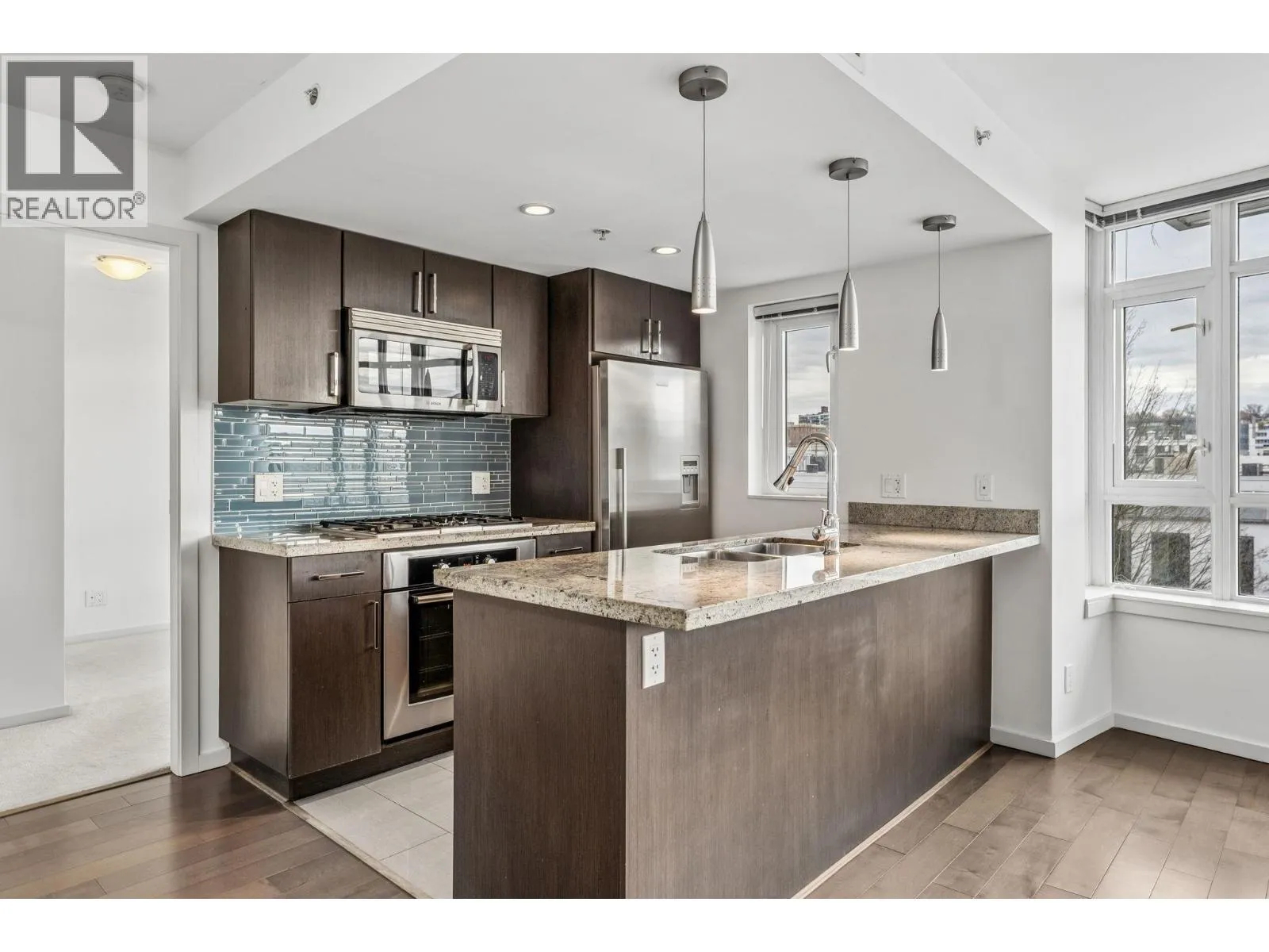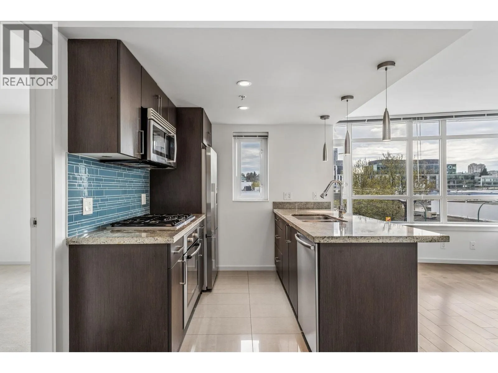 Modern city living in the heart of Olympic Village. This thoughtfully designed two bedroom and den residence offers nearly 1,000 sqft of bright, open living. A well-appointed kitchen anchors the space with stone counters, stainless appliances, gas cooktop, and an oversized island - ideal for gathering and entertaining. Expansive windows draw in natural light with a seamless transition to a covered balcony for year-round enjoyment. A functional layout separates the bedrooms, with a spacious primary bedroom featuring a walk-through closet and ensuite with separated shower and tub. The second bedroom and flexible solarium/den adapt easily to a home office or guest space. Clean lines, generous storage, and move-in ready condition. Positioned in one of Vancouver´s most walkable neighbourhoods - steps to the Seawall, transit, coffee shops, restaurants, bars, grocery, banking, spas, and all other everyday amenities. A refined home for those who value both design and lifestyle. (id:27476)