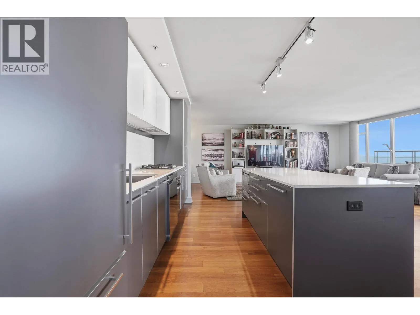 This exceptional penthouse residence at the O2 Building offers refined West End living with sweeping, unobstructed views over English Bay. This 2 bed + den, 2 bath home features a generous, open-concept layout with an expansive living and dining area framed by floor-to-ceiling windows, creating a bright and airy atmosphere throughout. The oversized primary suite offers a true retreat with a spa-inspired ensuite and ample closet space. A sleek, open kitchen with premium appliances is ideal for entertaining. Enjoy a private patio with front row seats to the fireworks and sunsets, all in a boutique building with private roof deck steps to the seawall, beaches, and vibrant West End amenities. 2 Parking & 1 Storage Locker. OPEN: Sat Apr 18th 2-4PM (id:27476)
