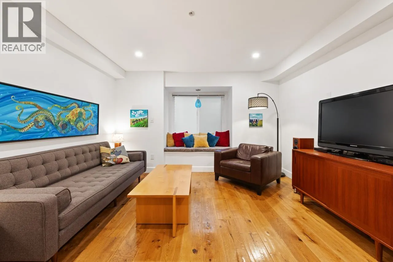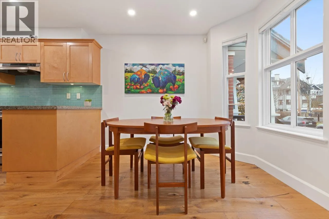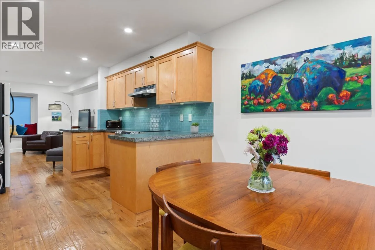 Perfectly located just off The Drive, welcome to this quaint 4 level townhome! Open concept dining room, kitchen & living area span the main level, complete with beautiful Kahrs wide-plank oak engineered hardwood floors. Kitchen equipped with induction stove (gas line leaves option for gas stove), S/S & black appliances, granite countertops, undermounted sink & undermounted lighting. Upstairs features a bedroom, large open den (3rd bdrm) and bathroom w/soaker tub. The loft-style primary suite is located on the top level, boasting vaulted ceilings, a balcony, ensuite & crawlspace. Bsmt has single garage with outlet, laundry & flex space. A community-oriented complex steps to Britannia Community Elementary & Secondary, Britannia Community Center, parks, shopping & dining. OH SAT 2-4 SUN 1-2:30. (id:27476)