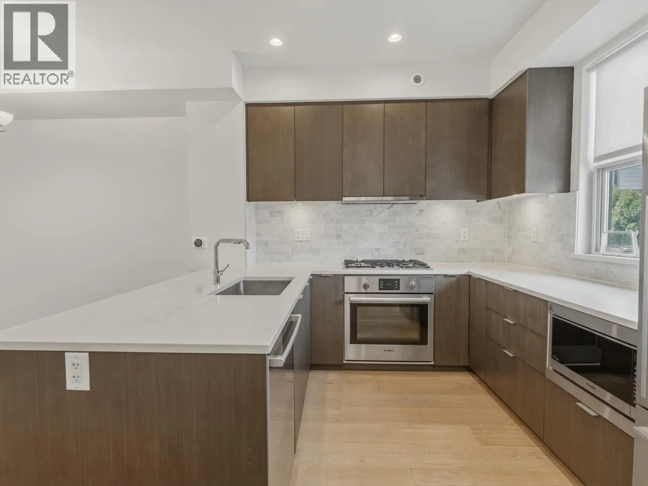 Outstanding 3-bedroom, 2.5-bath contemporary townhome in pristine condition. Quietly positioned in a courtyard setting, this home showcases quality finishes throughout. A sleek, modern kitchen features wood cabinetry, stone countertops, and a gas cooktop-thoughtfully designed for both style and function. Highlights include 9´ ceilings, neutral wood flooring, air conditioning for year-round comfort, plus 3 outdoor spaces, including a private rooftop deck. A spacious lower-level flex room offers versatility for a home office, gym, or added bedroom with direct access to 2 secure parking stalls, including one EV. Ideally located in Marpole with easy access to downtown Vancouver, Richmond, and YVR. Close to excellent schools, parks, shopping, and transit. Move-in ready and shows beautifully. (id:27476)