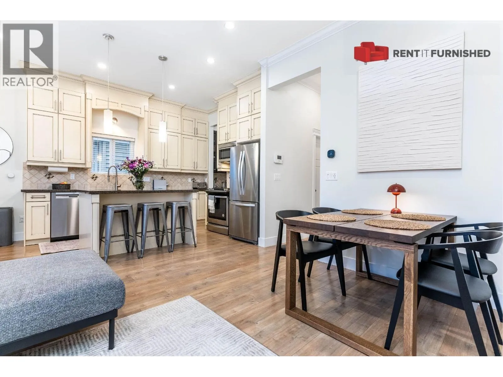 Experience modern living in this 1536 Sqft, 3-bedroom plus den, 2.5-bathroom furnished house for rent in Surrey, nestled in the East Clayton neighbourhood and Langley. Designed with a focus on convenience and comfort, this residence is ideal for corporate relocations, traveling healthcare professionals, and academics seeking a seamless transition to their new home. As you step into this modern abode, you'll be greeted by a welcoming porch and a backyard deck, creating inviting outdoor spaces for relaxation and entertainment. The chef-friendly kitchen is equipped to meet your culinary needs, ensuring both functionality and style. (id:27476)