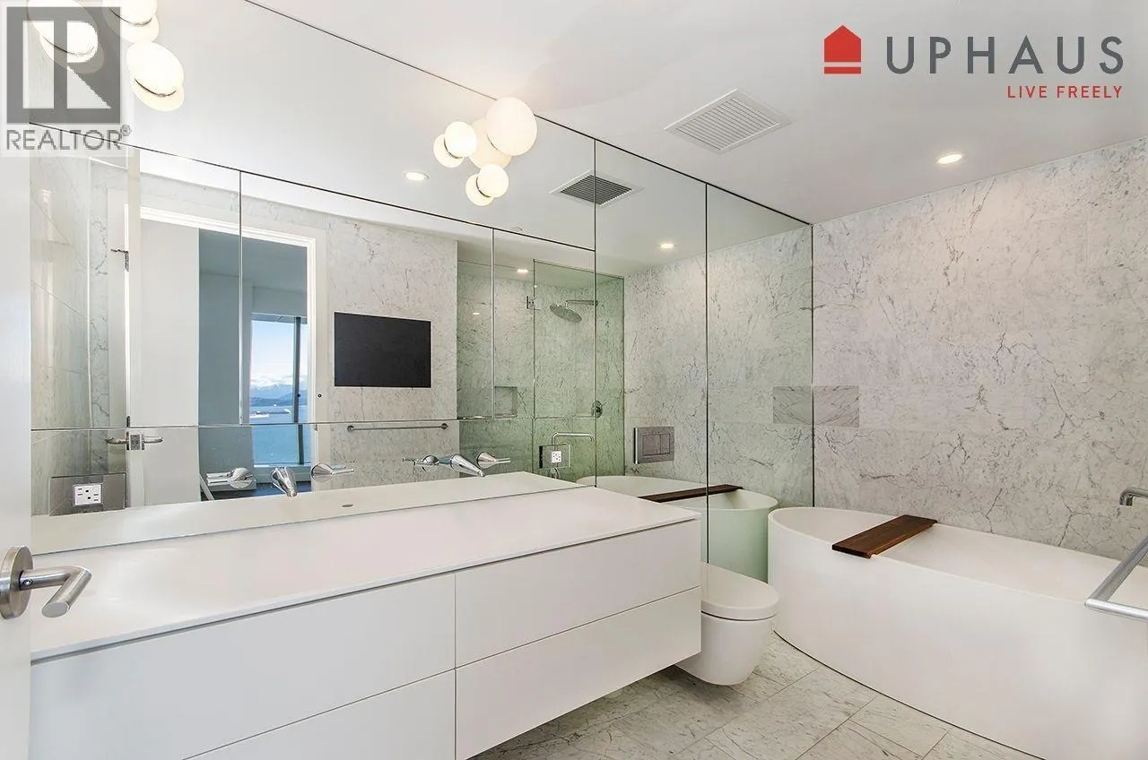Positioned within the iconic Vancouver House, this remarkable 2,005-square-foot, unfurnished condo epitomizes luxury urban living. As a three-bedroom, three-bathroom corner suite, it affords residents the freedom to curate their own living space in one of the city's most distinguished buildings. The interior is a testament to modern sophistication, with a kitchen adorned with marble, granite, and stone/quartz countertops waiting to be customized by your personal touch. Air conditioning offers a respite from the summer heat, while in-suite laundry and a storage pantry provide practical solutions to everyday needs. (id:27476)