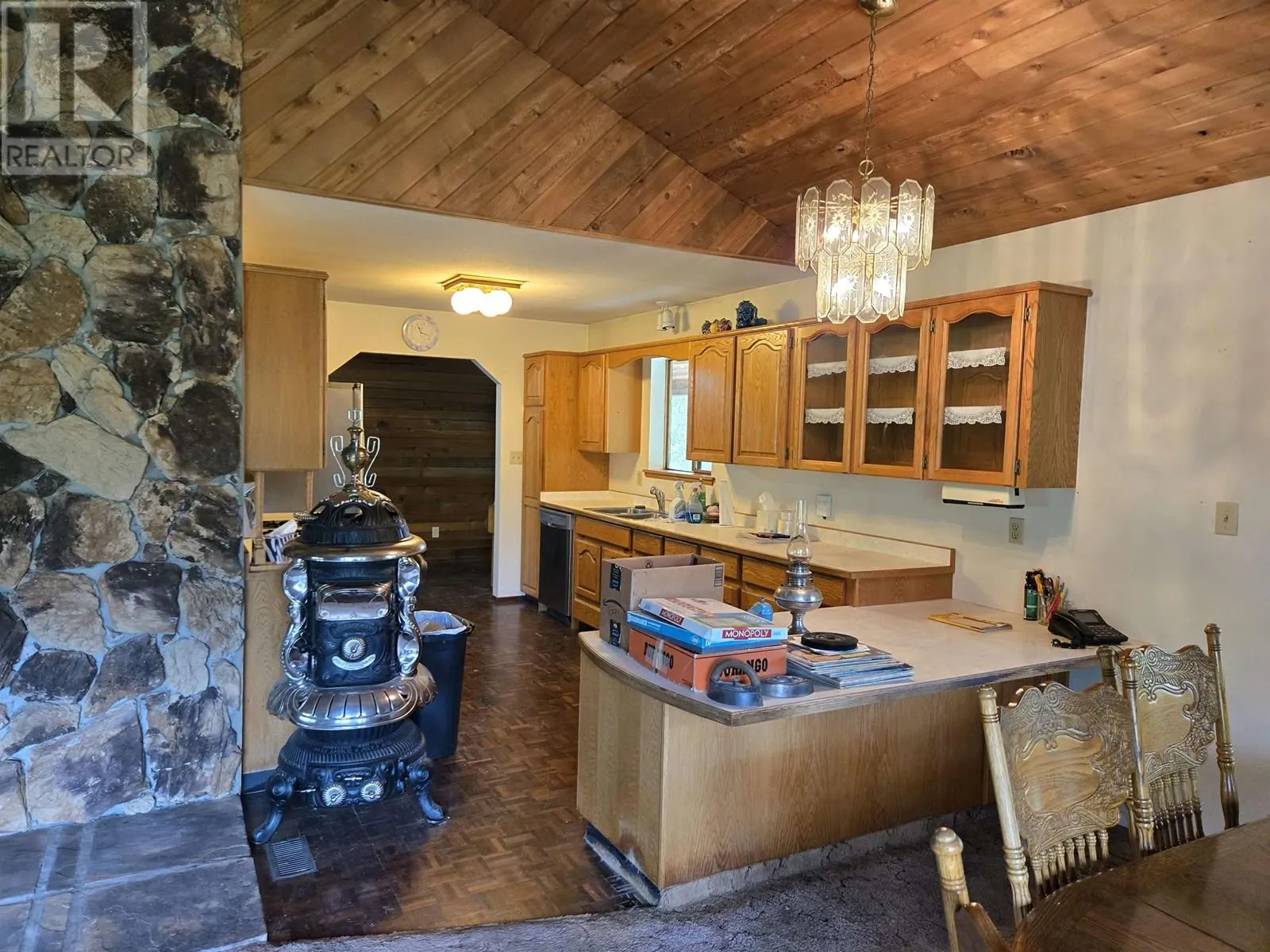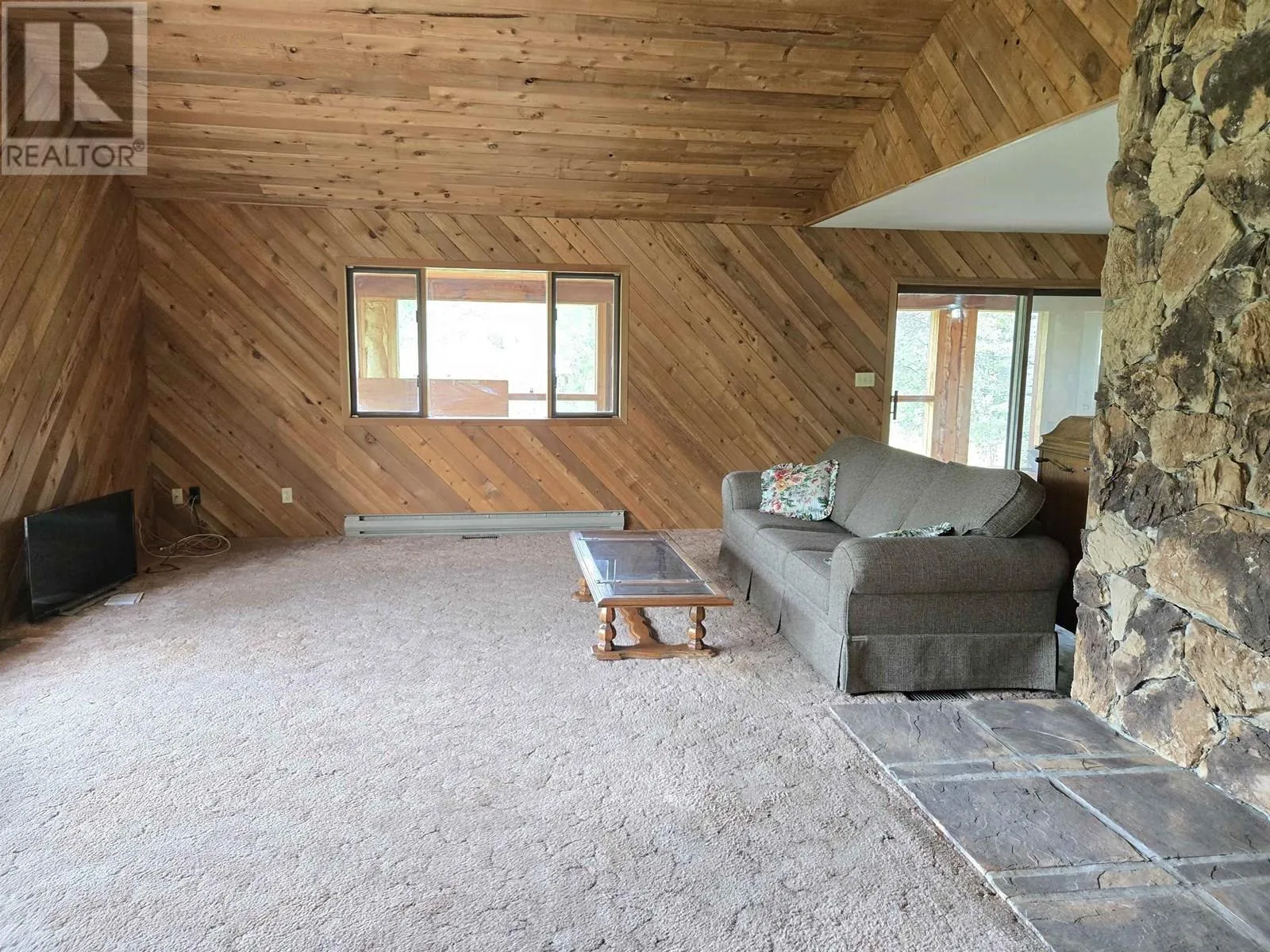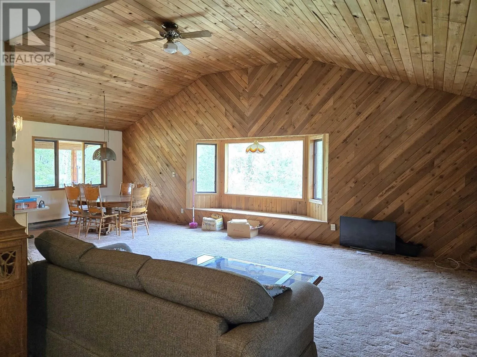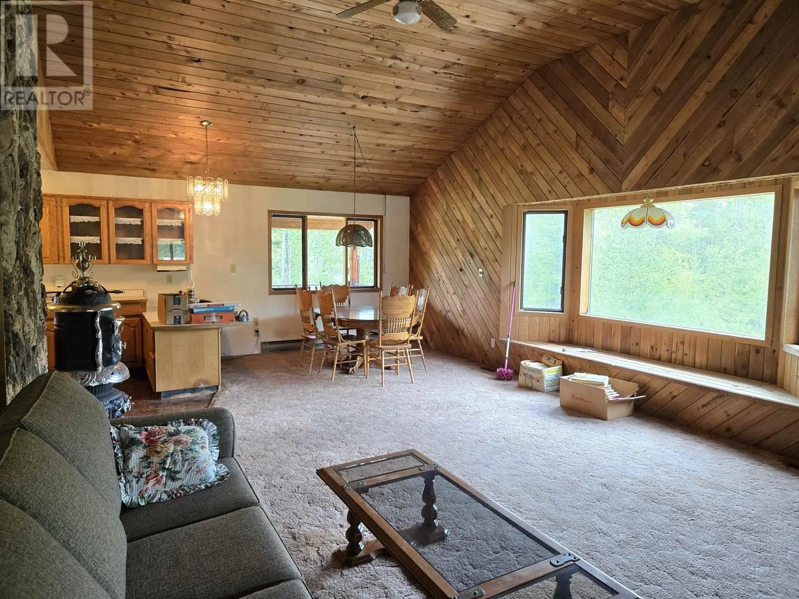 Very well-built home on 37 treed acres 20 min drive on paved road from Vanderhoof with suite-potential is waiting for someone to make it shine again. Cedar and natural rockwork, 2 covered porches (1 enclosed), walkout basement, circular driveway, multi-bay carport as well as the possibility of adding another dwelling (hydro & lagoon connection & separate address already exist) will be your first impression. Inside you will find an open concept living, dining and kitchen area, huge primary bedroom with ensuite and large walk-in closet, another bedroom and large pantry. The partially finished basement has another two bedrooms, bathroom/laundry combo and huge space that is plumbed for a kitchen with outside entry and efficient Blaze King wood stove. So much potential here! Motivated seller! (id:27476)