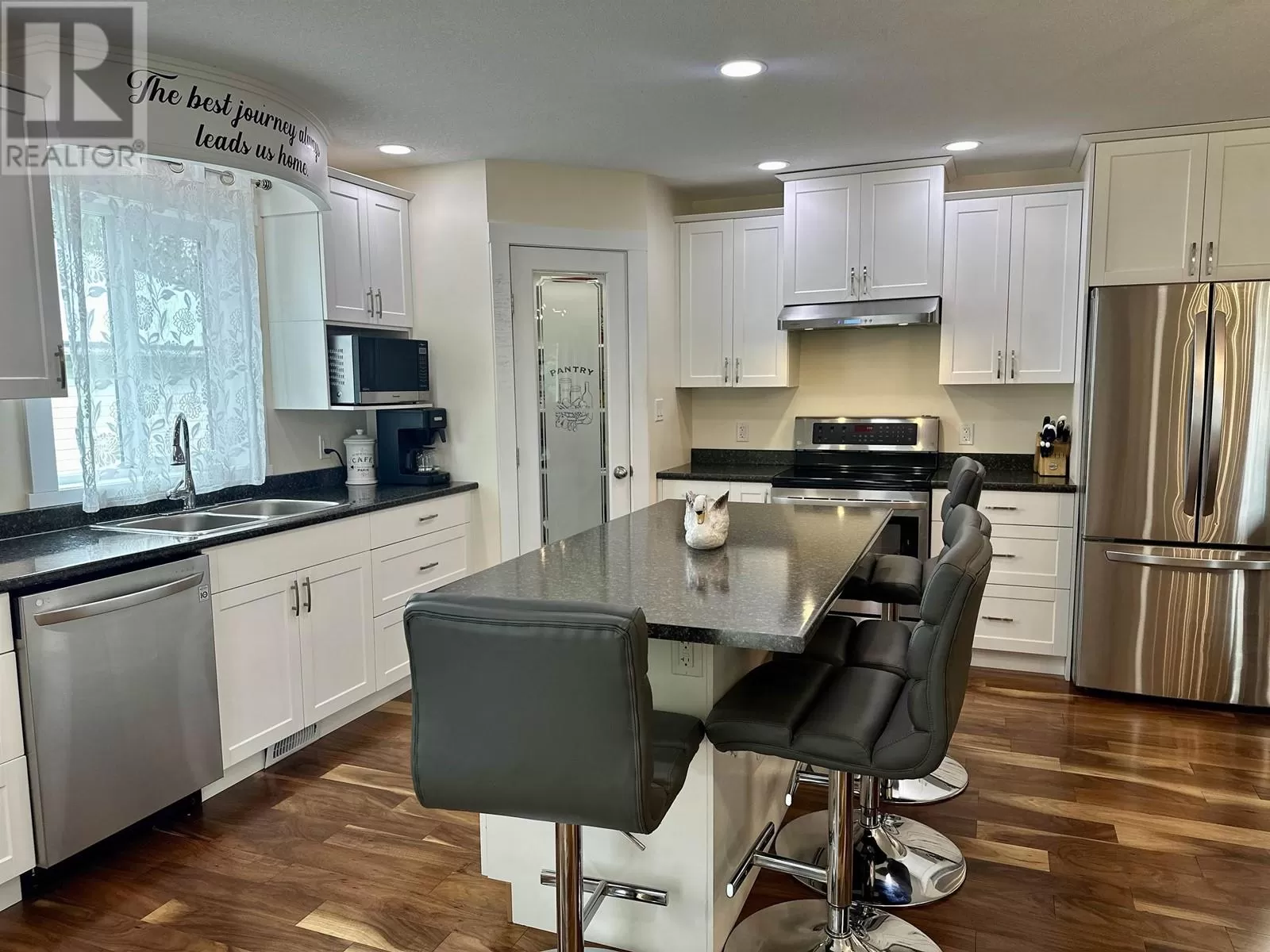 2017 custom built home located close to downtown, near two parks, and only steps away from Riverside Park! This energy efficient and well built home faces South and features three bedrooms, two bathrooms, vaulted ceilings, an attached garage, and a bright open concept design. The main floor boasts a lovely front entry or sun room, a sundeck off the kitchen, and a spacious primary bedroom. The kitchen is very roomy, with acacia hardwood floors, a large island and ample space for entertaining. The dining room and living room are open from the kitchen and also have plenty of room to spread out in. Downstairs are two more bedrooms, the second bathroom, and a large rec room area. This newer home has low utility costs, is move-in ready, and low maintenance for years to come. (id:27476)