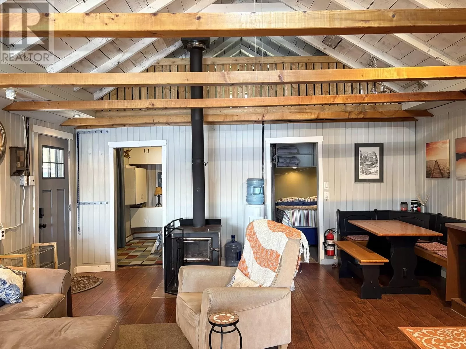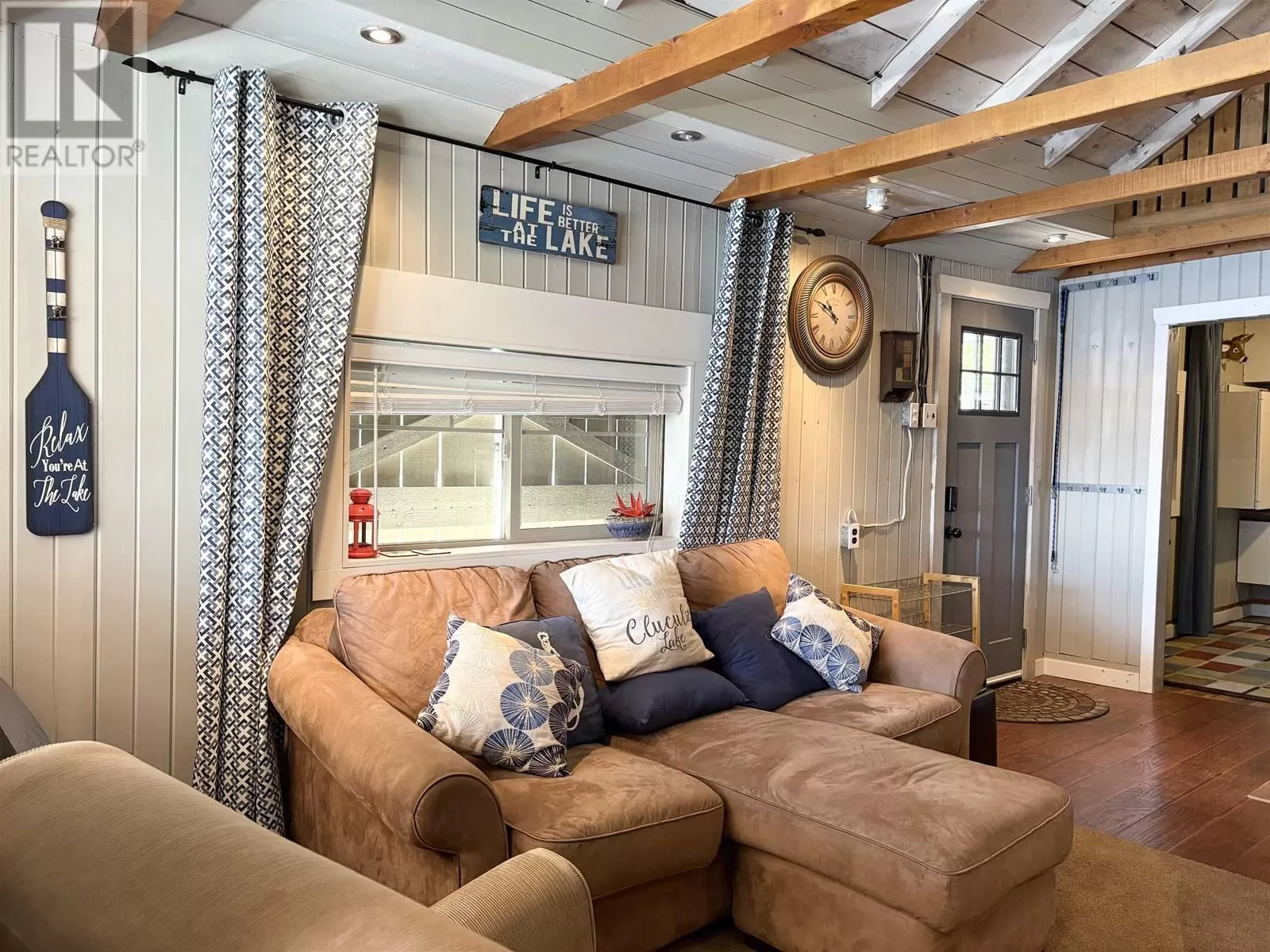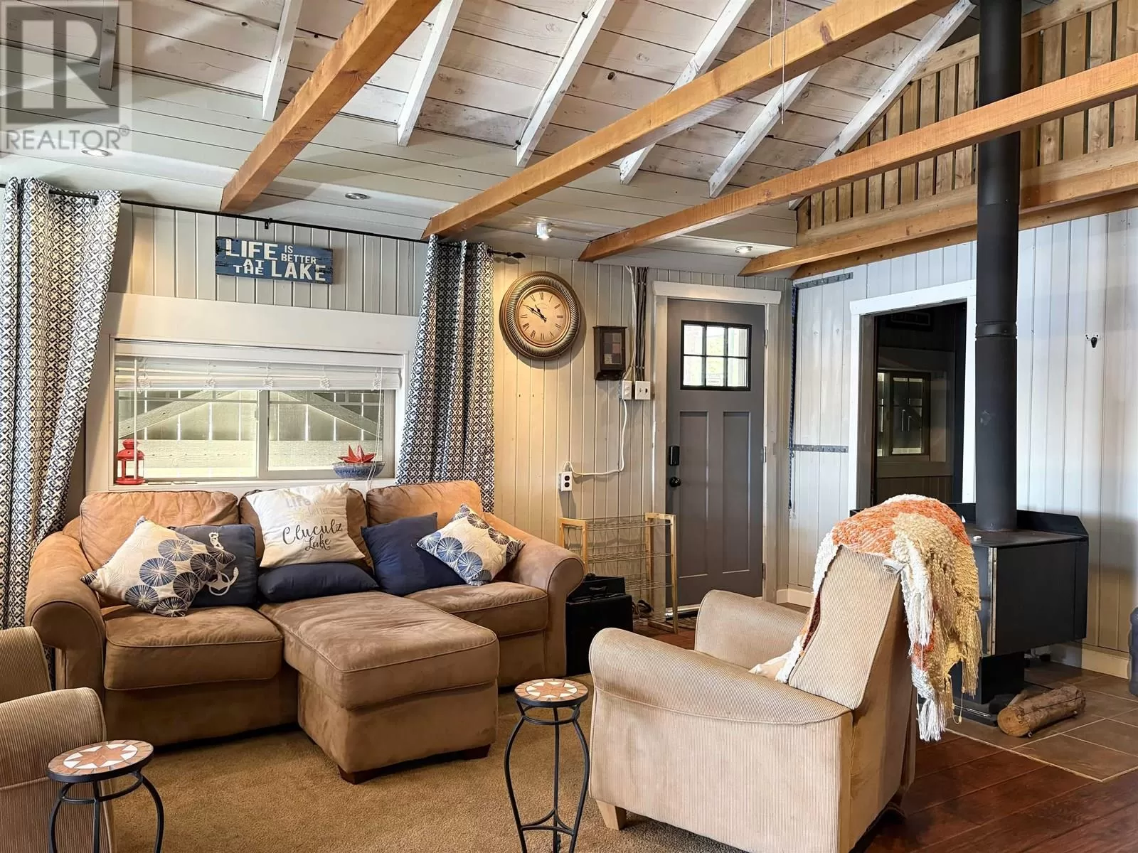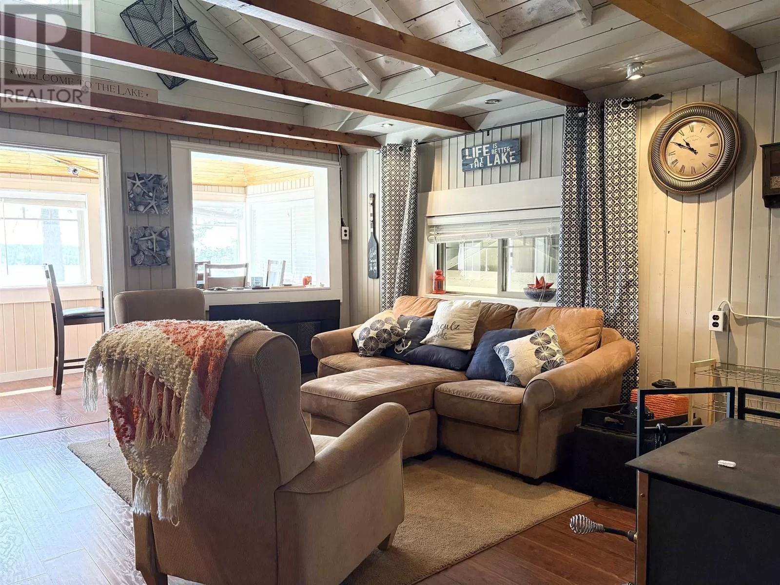 Check out this adorable, truly turn key lakefront property. Nicely developed lot overlooking the lake, with plenty of room to enjoy all aspects of lake life. From the large upper area with fire pit, space for yard games and room for friends RVs, down to the spacious grassy area at the waterfront, complete with new docks and a handy storage shed, this property has it all. The cabin itself is adorably finished with a spacious main living area, handy flex room at the front with expansive views!(extra bedroom, sunroom, or whatever you want to make it) Newer 3 piece bathroom, 2 well appointed bedrooms and a bonus loft area. Plenty of well situated decks round out this great lakefront package. Option to airbnb and subsidize the lake life for times you cant use it yourself! Great opportunity! (id:27476)
