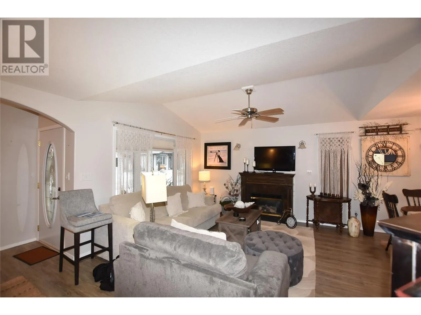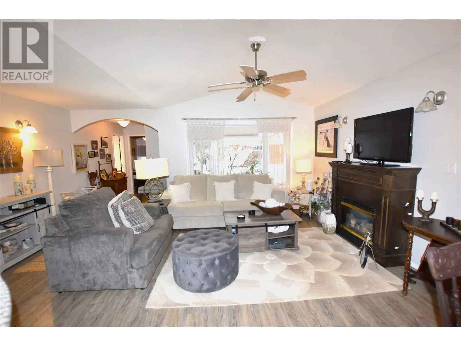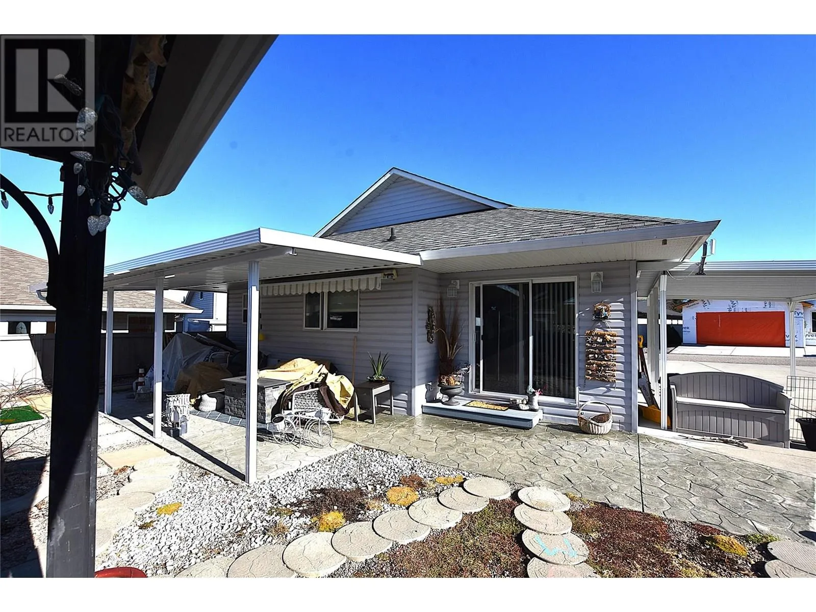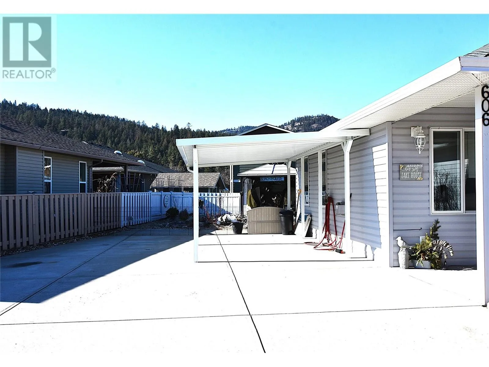 Welcome to 606 Nighthawk Avenue in Parker Cove! This beautifully maintained 2-bedroom, 2.5-bathroom rancher is nestled on a spacious lot just minutes from the beach. It's an ideal choice for those seeking an affordable retirement spot in the stunning Okanagan. Custom-built for comfort, this modern level-entry home features a kitchen full of cupboards and ample counter space, a living room with a cozy gas fireplace and vaulted ceilings, and a large master bedroom with a walk-in closet and a 4-piece en-suite. Enjoy added conveniences like central air, built-in vacuum, and a 4-foot crawl space for extra storage. Some upgrades include vinyl plank flooring, fresh paint, new backsplash, and countertops. The fabulous, landscaped backyard is mostly fenced and includes a patio with an awning and a gazebo for summer dining. The driveway can accommodate your boat or RV and features a sani dump. When standing in front of the home you can see Lake Okanagan that is how close it is and on a dark evening one can even see sparkling hills resorts twinkling lights. The registered lease extends until 2043, with an annual payment of $4488.74 ($388.83/month). (id:27476)